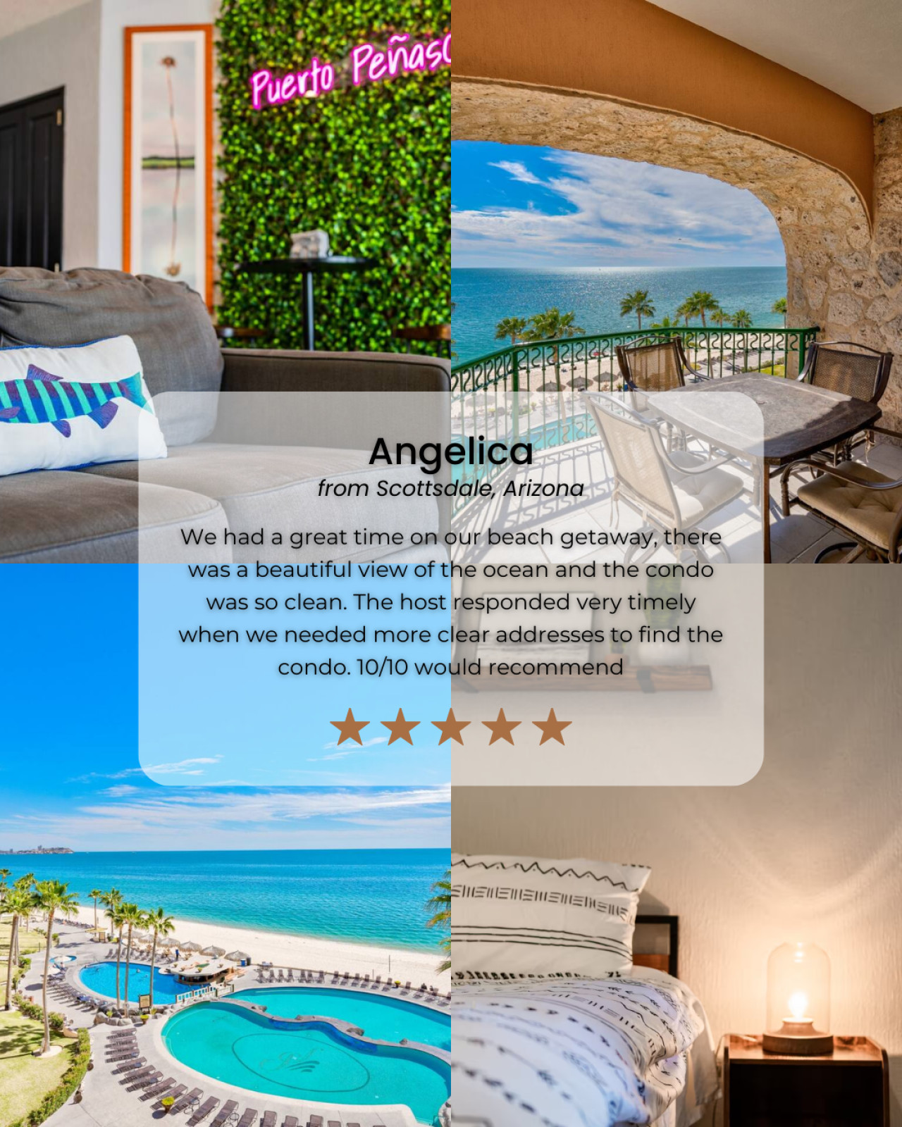 Have a relaxing stay at a 1 BR and 1 bath unit at Sonoran Sea Resort. Enjoy the resort, pool, and beach view from the balcony's unit! Take in the breathtaking views from your expanded balcony or visit delicious cuisine at nearby top-rated restaurant...s all within walking distance. Experience the ultimate vacation in Puerto Peñasco & book your stay today! Guests love staying here as all the condos are beachfront condos. Plus there are great places walking distance away. You can see the resort, pool, and beach view from the balcony's unit! Enjoy the sunset! Guests can use all the amenities at the resort: - Pools - Hot tubs - Gym - Restaurants Please attempt to contact via airbnb chat as the first option but you can also communicate via , call , text. Great atmosphere with amazing staff. We absolutely love the condos at Sonoran Sea Resort as they are true beach front condos. We can hear the waves from the balcony and the tranquility that comes along with it. You cannot beat the location. Walk to some of our favorite restaurants and bars Taxis or your own car. Atv and Rhino rentals are close by as well :) Check-In Information: Please note that check-in is always at 4:00 PM. Due to a system glitch on Airbnb, you may see an option to select a different check-in time, but please disregard this. We kindly ask that you assume and expect check-in to be at 4:00 PM, as this is the earliest the property will be ready for your stay. Resort Policies: Age Requirement: The primary guest making the reservation must be at least 25 years old. If you are under 25, please have someone 25 or older from your group complete the booking. The primary guest (25+) must be present and staying at the property for the full duration of the reservation. Registered Guests Only: All guests staying at the property must be registered, and the total number of guests cannot exceed the maximum occupancy. Occupancy Limit: This 2-bedroom unit accommodates a maximum of 6 guests. The resort does not allow extra guests, even for an additional fee. For groups of 7 or more, please book a larger condo to comply with resort regulations. Instructions: If you have any questions or need clarifications, please feel free to call us before confirming your booking. Border Hours: The border opens at 6:00 AM and closes at 8:00 PM. Please plan your arrival accordingly. Self Check-In: The condo has a keypad for self check-in. Check-In Instructions: You will receive detailed check-in instructions at 8:00 AM on the day of your arrival. Guest Confirmation: Please confirm the number of adults and children in your party, as the resort requires this information. Resort Fee: The resort collects a one-time fee of $15 for the resort bracelet for your entire group at check-in (not per guest) for the entire stay. Check-Out Instructions Late Check-Out Fee: This ensures our cleaners have the necessary time to prepare the property for the next guest. Setting the AC Temperature: Before you leave, please set the thermostat to 80 degrees Fahrenheit. HVAC professionals recommend this to help prevent the AC unit from freezing or experiencing other issues. We've had multiple urgent repairs in the past that could have been avoided by following this guideline. We want your stay (and future guests’ stays) to be as comfortable and issue-free as possible. While we do our best to maintain a comfortable environment, guests may occasionally encounter animals during their stay. This note is simply to help manage expectations, and we appreciate your understanding. Thank you.
