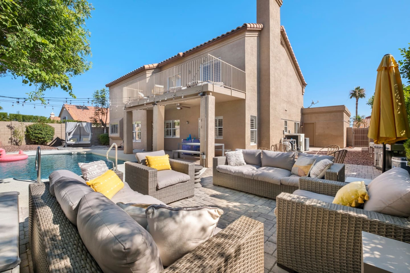 Welcome to Sunny Retreat in Shadow Mountain Sanctuary, a tranquil escape in Phoenix. This beautiful home features 4 bed and 3 bath, making it perfect for families or groups. The interior is decorated with a fully equipped kitchen and cozy living area...s. Outside, you can relax by the pool or enjoy al fresco dining in the landscaped backyard. Located close to hiking trails and local attractions, this property offers a perfect mix of relaxation and adventure. Book your Phoenix experience today! - Located near Shadow Mountain Sanctuary w/ pool and Tesla charger in the garage. - This is a 4 BR with a loft house. - Living room 2 in the photos is the loft and it has queen pull out sofa bed. - Very spacious for your family and friends! - Entire house - Entire pool - Garage with Tesla Charger Best and quickest way for responses is to communicate via the Airbnb app. ************************************** NOTICE TO POTENTIAL GUEST/S ************************************** - We are committed to abiding by all state, county and city rules and regulations as well as protecting our properties. We've partnered with "Know Your Guest" (Superhog) the leading vacation rental guest-screening provider. - Please note that before your booking begins, you will need to verify your details through Truvi / Know Your Guest and you will be receiving a message and/or email from Truvi / Know Your Guest. - In compliance to City and State regulations and to maintain the integrity of the neighborhood we do NOT allow any large gatherings or Parties. (Any unauthorized/unregistered vehicles or guests equates to immediate eviction with no refund of stay and complete banning from booking channel where they completed reservation. - Use of Security Cameras, Noise aware sensors and valid neighbor noise complaints can be used against the booking individual and will lead to immediate eviction with NO REFUND and would be banned from Channel where booking was made. (We ask a lot of our cleaners. So, we ask that you respect the 11:00 AM check-out as they are on a time crunch and usually have other homes to clean). - Guest MUST answer all pre-booking questions (even on instant booking) to make sure it's a good fit as well as to help us prepare for your stay. - Guest MUST provide a matching driver license ID (if profile has zero reviews, bad reviews, is local, and/or one night stay). - Maximum occupancy is 12. If there are more than 12 people at any time, a valid & verified noise complaint or more than 4 vehicles at any time, you agree to forfeit the reservation (no refund) along with immediate eviction. - Only registered guests are allowed on the property at all times. We have a ZERO TOLERANCE Party & Event Policy. We follow and abide by all rules by the city of Phoenix, state of Arizona and Booking Channel and do NOT allow any Large Gatherings or Parties to maintain the integrity of the neighborhood and respect the families around us. The city takes noise disturbances very seriously and can result in fines & the removal of this listing in different platforms, we request your cooperation. - Quiet hours start at 9:00 PM. We don't want to disturb the families nearby. - All # of guests staying and visiting must be approved as we abide by city occupancy rules. We must obtain a DL or ID from the person making the reservation. This person is in charge of the entire group and is its representation. - If you're local to the area, we require a message stating this to the host. - We would love to accommodate all early and late check-out requests, but this isn't possible unfortunately. We ask that you please respect set check-in and check-out times. There's a good chance that someone left the day of your arrival as well as will be checking in on the day of your departure. We need the full amount of time for turnover. - If any House Rules are BROKEN, you agree to forfeit the entire reservation amount + additional fees (most notably quiet hours, disturbed neighbors, reported party, more than max occupancy of guests at property, unauthorized guests, additional vehicles that were communicated prior). - NO smoking inside the home or within 15 feet of any windows or doors. If you plan on smoking outside, please dispose of any butts in the trash. - The city is very strict on this and if you have any other unauthorized persons, over max occupancy or more than 4 cars, you are subject to forfeit your entire reservation. - There are surveillance cameras covering entrance and exit ways to the property. They are not actively monitored but may be used to detect unauthorized parties or broken house rules to abide by city & state laws for short term rentals. - There's a TV in the living room that has YouTube TV (cable with live TV and on-demand) as well as some TV apps. Feel free to log in to any of your personal apps if you wish to. - Feel free to use the air fryer for cooking. Clean it after use, use it carefully, and let us know if there are any issues. - A propane grill and tank are provided, and we refill the tank periodically; however, if a guest encounters the propane tank empty and wants to use the grill, the guest will have to refill or exchange it at Circle K or Walmart, and we will reimburse it. - USE OF POOL: The property is not staffed. The guest is responsible for their own safety. Owners and management are not responsible for any accidents or injuries. - Please do NOT remove the vacuum from the pool as it will damage the pool pump, and if replacement is needed, it will fall on guest. - Optional Pool Heating Pricing (remember this is not a spa it will not be steaming): 85 degrees. - MUST let us know 72 hours prior to your stay if you'd like to heat the pool (on 81- 85 degrees MUST cover all of the days.). - You must leave the solar cover on the pool at all times while you're not swimming. (Overnight and during the day). This helps take in the best from the sun's rays and keeps the pool warm. - We cannot refund any amount of the reservation cost du