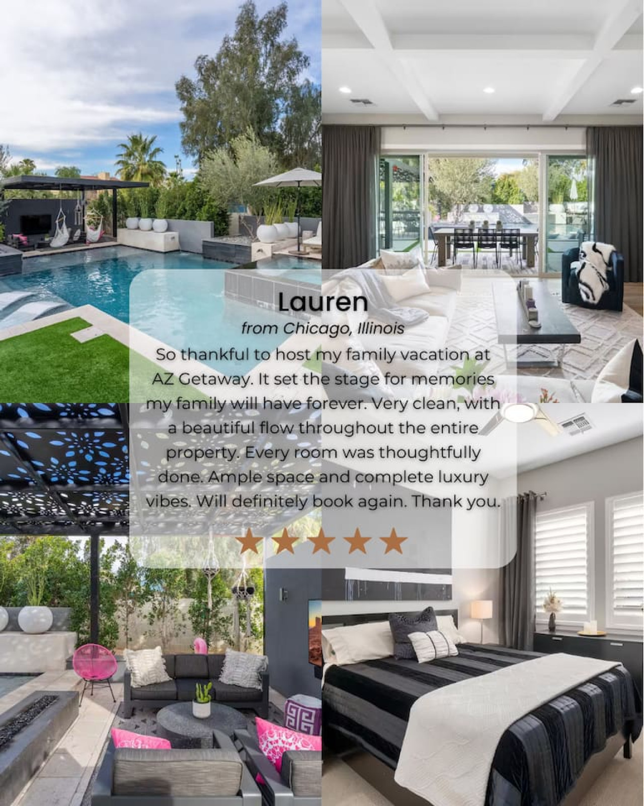 Experience luxury living in Phoenix with this elegant escape. This 3 bedroom, 2 bathroom home boasts stunning outdoor living space with a beautiful pool and large negative edge jacuzzi, perfect for relaxing and entertaining with friends and family. D...on't miss out on this luxurious opportunity to book this home Spacious one of a kind property on the Phoenix/ Scottsdale border. Resort style living and beautiful decorated home. A unique and spacious property located on the Phoenix/Scottsdale boundary offering resort-style living and a beautifully and thoughtfully designed 3 bedroom home. - Pool and spa heating are not available from the months of June to September. However, they are available from October to May. - When you pay for pool heating and/or spa heating, the temperature of both will reach up to 70-85 degrees. - Please note that it will take 12 hours to heat the pool so please pay and notify us ahead of time. - Spa heating will turn on automatically from 7 pm to 11 pm once paid. - We kindly request to notify us within 72 hours prior to arrival, if last minute and will need heating please keep in mind that it may take some time for both to warm up and reach the desired temperature. - Pool and spa lights will automatically turn on from 6:00 PM to 9:00 PM. - Neon lights on the patio will also automatically turn on from 5:00 PM to 8:00 PM. - If you need any clarification please feel free to ask. This is how the pool system is set up. Quickest way to reach us is through the Airbnb app. *************************************** NOTICE TO POTENTIAL GUEST/S *************************************** We’ve partnered with Truvi / Know Your Guest to ensure a safe experience for you and all our guests. Rest assured, your data is secure with them. Before your stay, kindly complete a quick verification and choose one of these options: We recommend the damage waiver for worry-free protection. Note: Fireplace is not available for use as per the insurance policy.