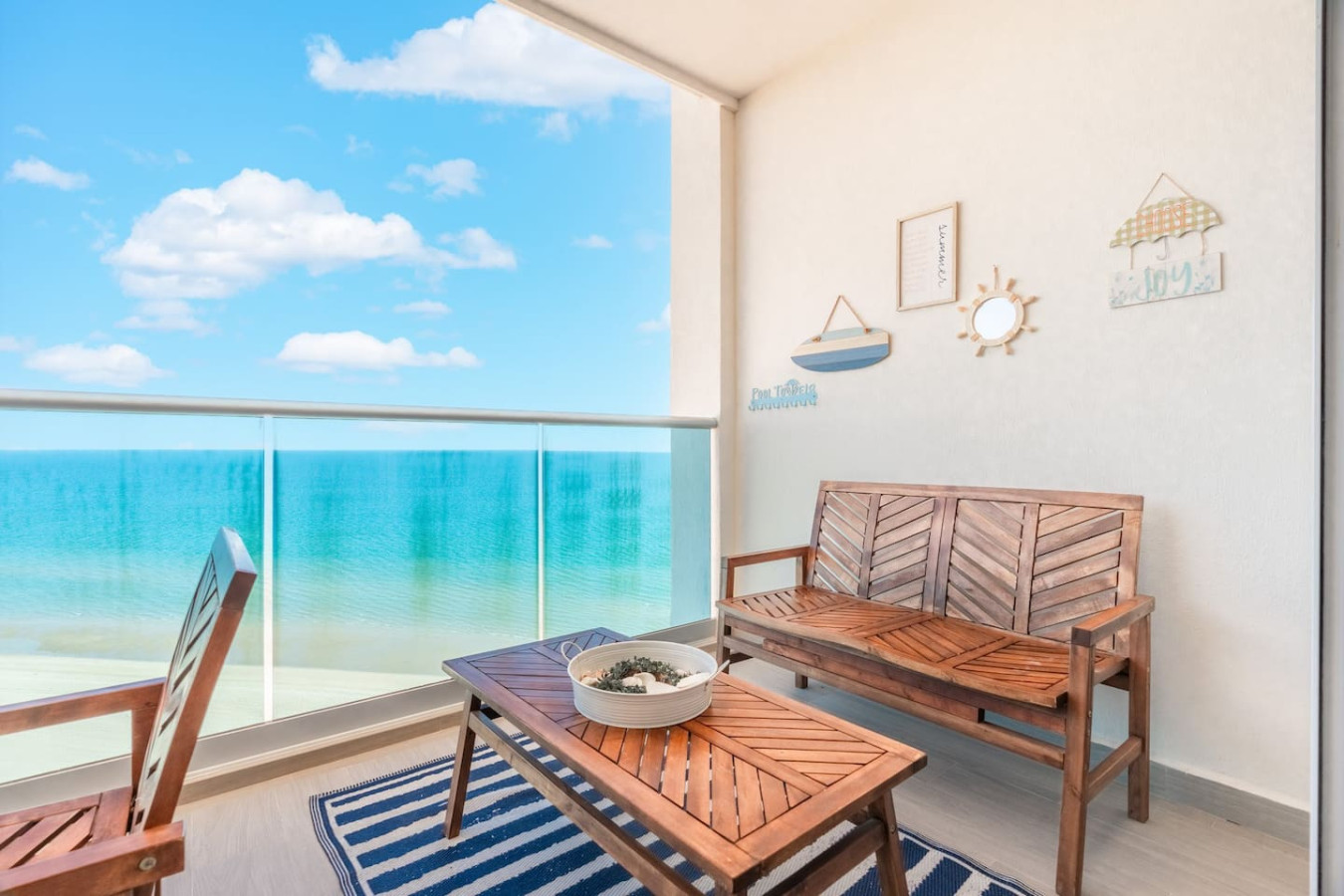 Indulge in the luxurious amenities that Encantame Towers has to offer, including access to our pristine swimming pool, state-of-the-art fitness center, and fine dining restaurants, this place will surely enchant you. In addition to the modern design... and vibrant colors that this 1 BR 1BA offers this unit also features a unique and fun element - a light-up grass wall! This is the perfect spot to take pictures and capture memories during your stay. Our fully equipped 1BR condo offers breathtaking views of the ocean and Playa Encanto Beach, making it the perfect retreat for a romantic getaway or a solo adventure. Step inside this unit and be captivated by its modern design and vibrant color scheme. The kitchen boasts a stunning veined countertop with ample space for preparing delicious meals. Take a seat on one of the three brightly upholstered bar stools and enjoy a refreshing glass of wine while chatting about your day's adventures. The vacation rental is equipped with new high-end appliances and complete cookware to make your stay as comfortable as possible. Relax in the cozy living room with sliding glass doors that open up to reveal breathtaking views of the ocean from the patio. The patio features a woven dining table, perfect for enjoying meals in the sunshine while listening to the sound of the waves. The bedroom suite offers direct access to the patio and is adorned with a king-sized bed, wall-mounted TV, spacious walk-through closet, and a marbled bathroom with a double sink vanity. The intimate setting provides a comfortable retreat to unwind and rejuvenate. Experience the ultimate vacation getaway in this stylish unit that combines modern design with unparalleled comfort. Please note that there is ongoing construction for a new building at Encantame. You may hear some construction noise, especially while on the balcony, during business hours. If you prefer a quieter experience, staying inside the unit will significantly reduce the noise. This situation is beyond our control, so we kindly ask guests to manage their expectations when booking. Thank you for your understanding!