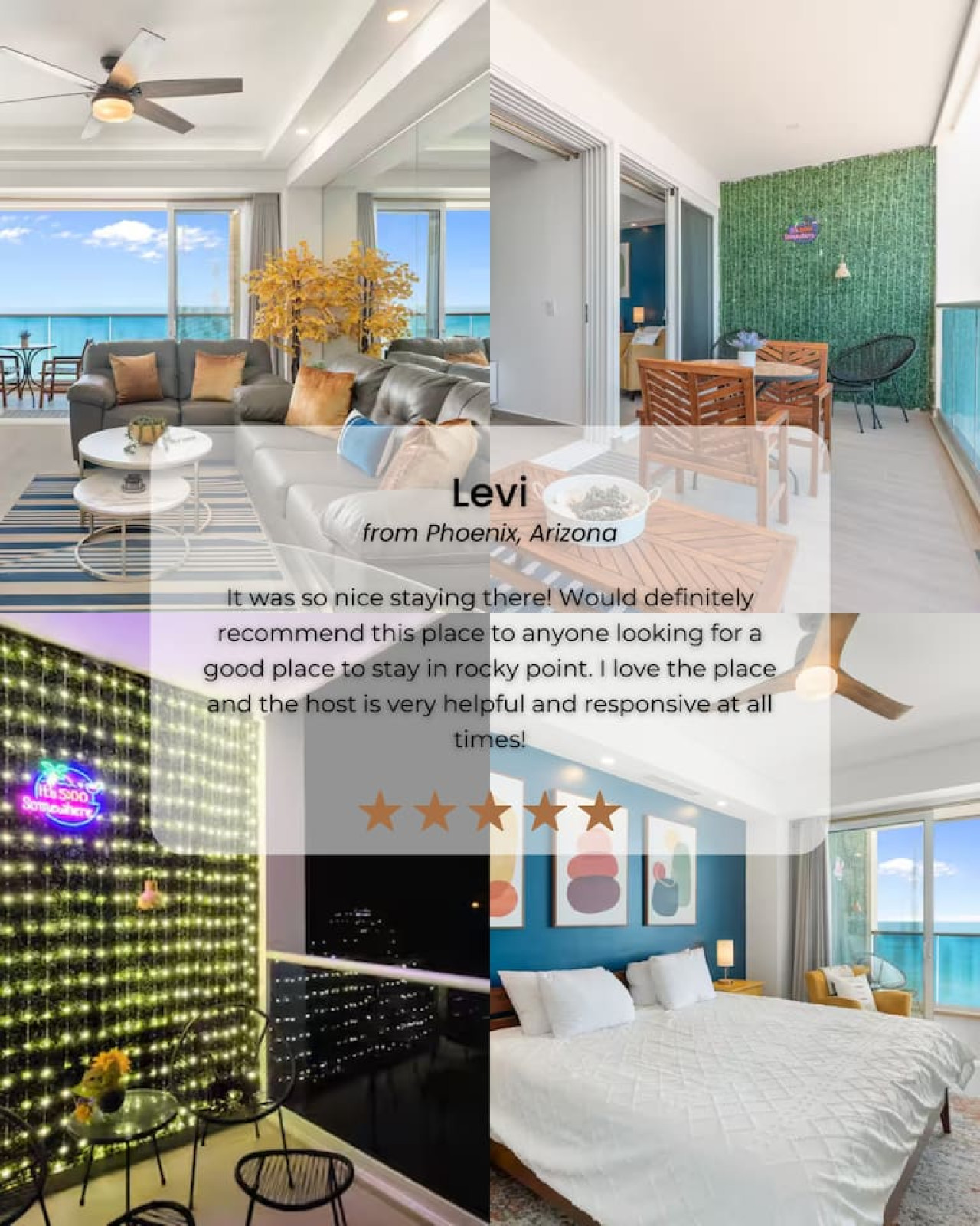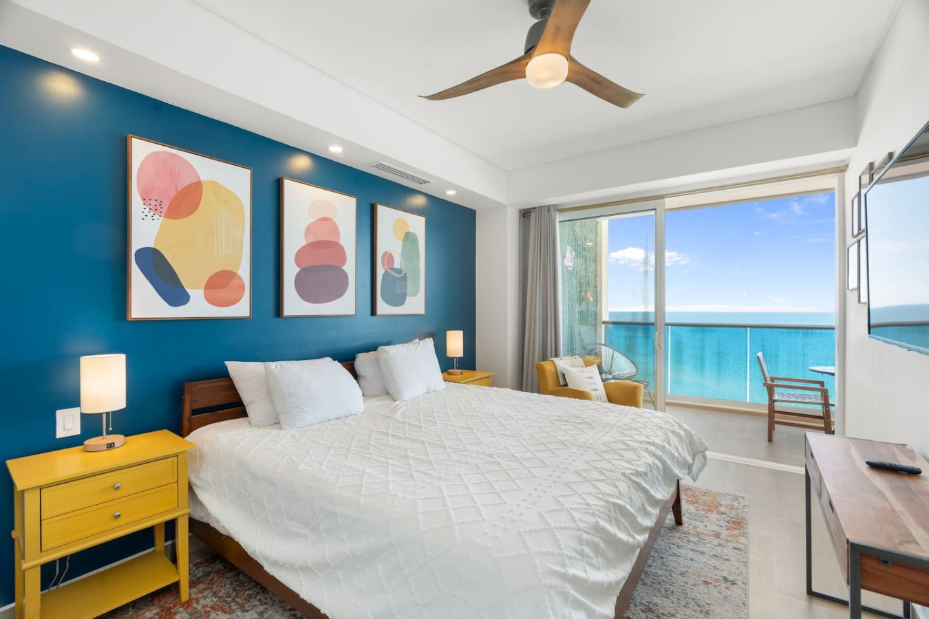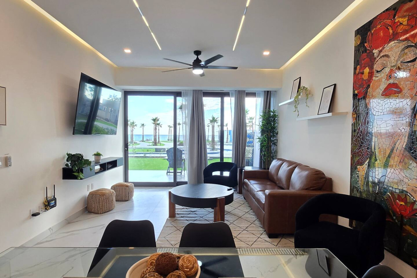 Indulge in the luxurious amenities that Encantame Towers has to offer, including access to our pristine swimming pool, state-of-the-art fitness center, and fine dining restaurants, this place will surely enchant you. In addition to the modern design... and vibrant colors that this 1 BR 1BA offers this unit also features a unique and fun element - a light-up grass wall! This is the perfect spot to take pictures and capture memories during your stay. Our fully equipped 1BR condo offers breathtaking views of the ocean and Playa Encanto Beach, making it the perfect retreat for a romantic getaway or a solo adventure. Step inside this unit and be captivated by its modern design and vibrant color scheme. The kitchen boasts a stunning veined countertop with ample space for preparing delicious meals. Take a seat on one of the three brightly upholstered bar stools and enjoy a refreshing glass of wine while chatting about your day's adventures. The vacation rental is equipped with new high-end appliances and complete cookware to make your stay as comfortable as possible. Relax in the cozy living room with sliding glass doors that open up to reveal breathtaking views of the ocean from the patio. The patio features a woven dining table, perfect for enjoying meals in the sunshine while listening to the sound of the waves. The bedroom suite offers direct access to the patio and is adorned with a king-sized bed, wall-mounted TV, spacious walk-through closet, and a marbled bathroom with a double sink vanity. The intimate setting provides a comfortable retreat to unwind and rejuvenate. Experience the ultimate vacation getaway in this stylish unit that combines modern design with unparalleled comfort. Encantame Towers will be heating the main pool with the swim-up bar through Thanksgiving weekend. Starting December 1, we’ll switch to heating the Viento West corner pool for the slower season, then switch back on March 1, 2026. The main pool jacuzzi, both rooftop jacuzzis, and the West rooftop pool will remain heated throughout. No pets are allowed. This includes service animals and emotional support animals in Mexico. This is a resort policy, and the rules and laws in Mexico are different from those in other countries. No refunds will be given if you attempt to bring any animal. Soleil and Towers have pickleball courts and a basketball court (Racquet Club).