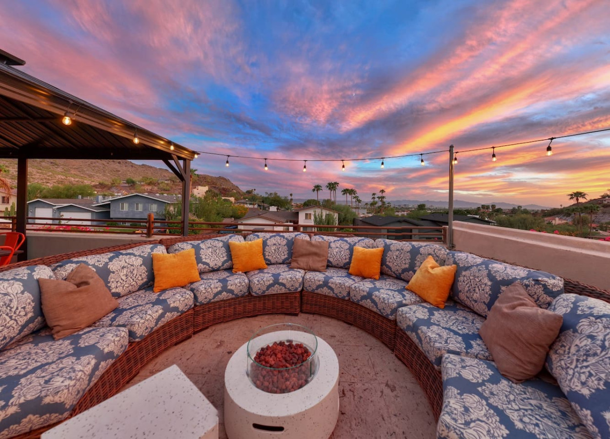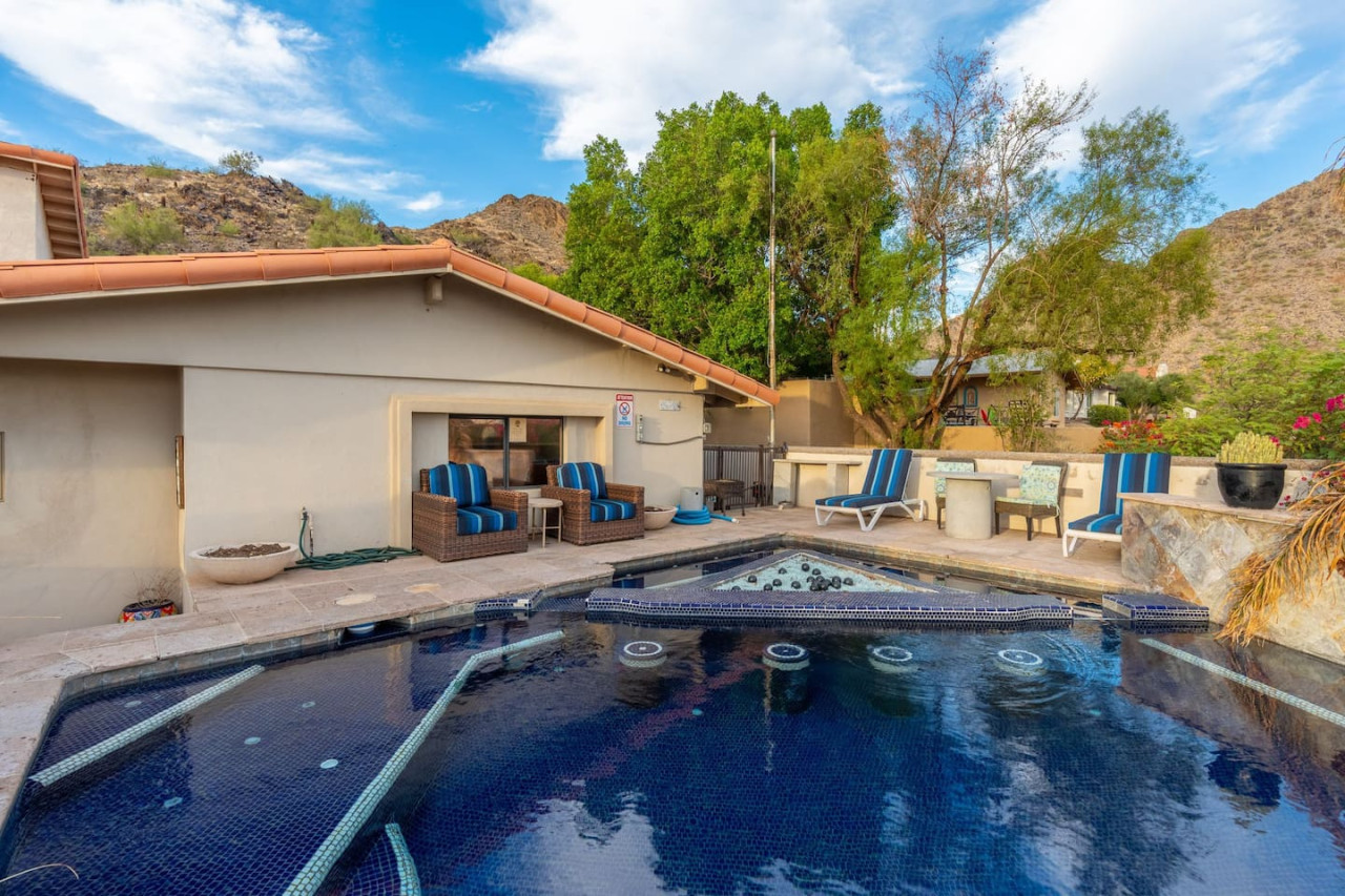 Welcome to our "City Lights " mountain mansion retreat in scenic Phoenix, Arizona! Nestled in the heart of the mountains, this expansive estate accommodates up to 16 guests, offering the perfect blend of opulence and natural beauty. The focal point... of this retreat is the stunning pool and spa area, where you can relax and unwind while soaking in the mesmerizing views of the vibrant city below. Whether you're lounging by the pool or enjoying a soak in the spa, the backdrop of the city lights and picturesque mountains will take your breath away. Inside, you'll find spacious living areas and meticulously designed bedrooms to ensure utmost comfort during your stay. The kitchen is a chef's dream, fully equipped to cater to your culinary desires. Gather around the grand dining table for memorable meals and lively conversations. Entire property is fully accessible by all registered guests in the reservation. For those seeking adventure, nearby hiking trails and outdoor activities abound, allowing you to fully embrace the natural beauty of the desert landscape. And when the sun sets, gather around the fire pit for a cozy evening under the starlit Arizona sky. Escape to this mountain oasis and experience the epitome of luxury and tranquility. Book your stay now and create unforgettable memories with friends and family in this exclusive retreat! - Pool and spa (NOT HEATED). PERMITS & LICENSES - TPT: 21201921 - STR: STR-2023-000414