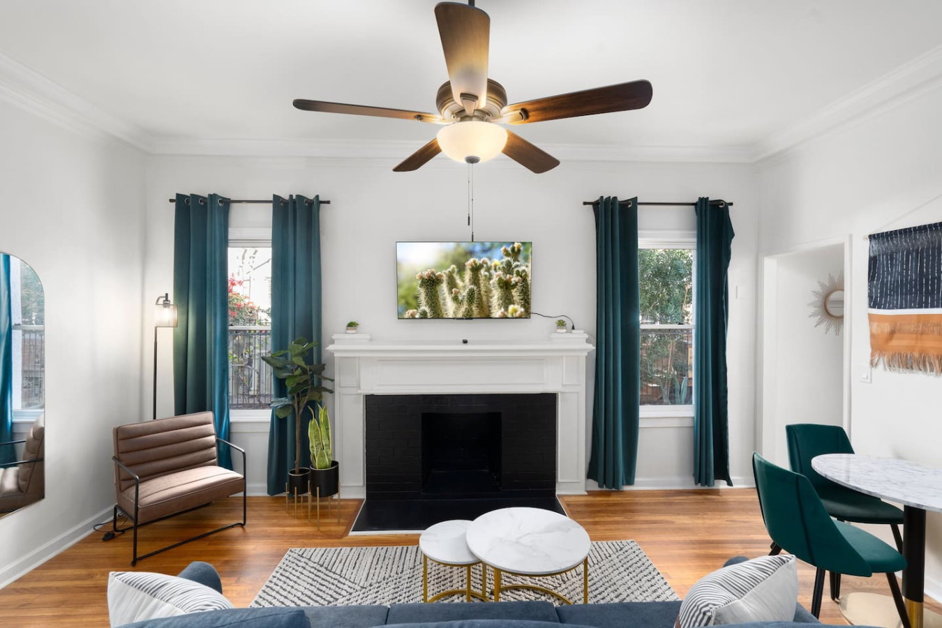 Welcome to Knickerbocker! Stay in style in this beautifully restored apartment in the heart of Phoenix. With its central location, you're just steps away from the city's top attractions, restaurants, and shops. The apartment is conveniently located ...near downtown Phoenix and the light rail station, making it easy to explore the city and beyond. Book now for a unique and memorable stay in one of the city's most historic "Roosevelt Row" neighborhoods. - This 10-unit-cozy and inviting apartment is the perfect place to call home during your stay. With its modern amenities and comfortable furnishings, you'll have everything you need to feel right at home. The apartment features a bright living room, a well-equipped kitchen, and a comfortable bedroom. The bathroom is tastefully appointed and features a shower and all the essentials you'll need. With its convenient location, you'll have easy access to local shops, restaurants, and tourist attractions. Book now for a memorable and comfortable stay! - PETS: We welcome your furry friend with a fee of $150 per pet for the entire stay. Please keep your pet supervised at all times and refrain from allowing them on furniture or beds. The fee is non-refundable and covers additional cleaning. Please do not allow your pet on the furniture or beds. Fee will apply for any damage, repairs or replacements. - PARKING: Street parking only. Street parking is available, please keep in mind that parking spots may be limited in the downtown area. - Our neighbor has a few parking spots available and offers a permit for just $10 a day and should be availed the entire stay. Please let us know in advance of your arrival. - FIREPLACE: Please do NOT use it for safety purposes. - NO elevator. Stairs only. - Apartments will be similarly decorated. Colors for curtains and sofas may be different. - You must go up a few steps to reach the units on the first floor and another 14 steps to reach the second floor. - For the pull-out queen bed: Get the mattress cover from the closet and place it on the sofa bed. The rest of the linens are in the closet. Guest can use them. This unit is on the first floor, but you will have to go up several steps to get to first floor. Guests can access the whole Unit # 1. *** Tourist spots, restaurants, coffee shop, and bars near the property: * Phoenix Art Museum - one of the largest art museums in the Southwest, featuring contemporary and classical art from around the world. * Heard Museum - a world-renowned museum showcasing the art, culture, and history of Native American peoples. * Roosevelt Row - a vibrant arts district with a bustling street scene filled with galleries, studios, shops, and restaurants. * Japan Festival - an annual event celebrating Japanese culture, with traditional music, food, dance, and more. * Phoenix Convention Center - a large facility hosting a variety of events, including trade shows, concerts, and conferences. * Talking Stick Resort Arena - a popular venue for sporting events and concerts. * Encanto Park - a large park with a lake, golf course, playgrounds, and a variety of recreational activities. * The Orpheum Theatre - a historic theater featuring live performances, including concerts, theater productions, and more. * The Henry - a popular restaurant known for its brunch, lunch, and dinner menu featuring seasonal ingredients and classic American dishes. * Pizzeria Bianco - a local institution known for its hand-crafted, wood-fired pizzas made with fresh ingredients. * Jobot Coffee - a cozy coffee shop offering specialty coffee, tea, and light bites in a relaxed setting. * The Larder + The Delta - a modern restaurant featuring southern cuisine, including comfort food and unique drinks. * Little Rituals - a chic coffee shop offering specialty coffee drinks and small bites. * Royal at The Yard - a popular bar offering craft cocktails, beer, and wine in a stylish setting. * Joyride Taco House - a fun and lively taco restaurant known for its creative menu, margaritas, and happy hour specials. * First Draft Book Bar - a unique bar and bookstore hybrid offering a carefully curated selection of books, beer, and wine. * 19 minutes away from Waste Management Sky Harbor Transfer Station. To go to the property, you can use several modes of transportation: * By car: If you have a car, you can use a GPS navigation system or map to reach the address. You can also park in the surrounding area. * By public transportation: The nearest light rail station is the Central Avenue & Van Buren Street Station, which is located about 0.7 miles from the property. From there, you can walk, take a taxi, or use a ride-sharing service to reach the address. * By taxi or ride-sharing service: You can use a taxi or ride-sharing service such as Uber or Lyft to reach the property directly. Simply enter the address as your destination and let the driver take you there. * By bike: If you prefer to bike, you can find bike lanes and bike-friendly streets in the area. Regardless of how you choose to travel, it's recommended to check the traffic conditions and plan your trip in advance to ensure a smooth and efficient journey. ********************************* HOUSE RULES & REMINDERS ********************************* - As a multifamily property with 10 units, the safety of all our guests is our top priority. We make every effort to comply with the evolving city, state, and county regulations and guidelines to ensure a safe and enjoyable stay for everyone that is why we are partnered with Truvi / Know Your Guest, the leading vacation rental guest-screening provider. Before booking, you will need to verify your details with Know Your Guest and pay a refundable security deposit of $150 or purchase a damage waiver of $20. Please ensure that you complete your validation prior to check-in. - The complex is a NON-SMOKING area. ($700 fine fees may apply.) Please respect this rule as there are other guests. Smoking is permitted outside, but please ensure you a