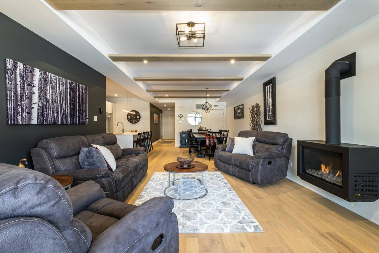 Indulge in the ultimate luxury mountain living experience at Villa Bella Verbier, where breathtaking alpine vistas await you. This stunning chalet-style home offers unmatched privacy and tranquility in a peaceful location, making it the perfect choic...e for an unforgettable getaway. With two generously-sized bedrooms and two bathrooms, this condo is ideal for small families, couples, or groups of friends. Enjoy exclusive access to the hot tub, sauna, and gym facilities. Revel in the summer months with a refreshing pool, and unwind by the fire pit for a truly exceptional experience. Relax and unwind on the expansive balcony, which offers unobstructed views of the majestic mountain range and is the perfect spot to enjoy a BBQ or your morning espresso. Inside, the rustic decor is seamlessly blended with modern accents, such as the exposed ceiling beam, and gas fireplace, creating a warm and inviting ambiance. The chef's kitchen is a true culinary haven, featuring an exceptionally large island perfect for gathering around for breakfast, lunch, or happy hour, a spacious pantry for all your cooking essentials, and a high-end Breville espresso machine to kickstart your day. The elegant dining table comfortably seats eight, making it an excellent choice for intimate family meals or dinner parties. After a day of exploring the famous Tremblant pedestrian village, retreat to the spacious and stylish living room, where you can sink into the comfortable Laz y boy style furniture, snuggle up by the gas fireplace, and take in the breathtaking views of the ski mountain. The second bedroom in Villa Bella Verbier is equally impressive, boasting two cozy double beds and ample closet space for all your storage needs. This bedroom is perfect for kids or accommodating extra guests, making this luxurious condo ideal for small families or groups of friends. Additional amenities include a full-size washer/dryer and convenient free shuttle service. Take advantage of the two covered parking spots. Villa Bella Verbier is less than a kilometer away from the village, making it the perfect location for adventure and relaxation. Book your stay at Villa Bella #102 Verbier and experience a mountain getaway like no other. Guest have access to the entire condo always available The development is located a stone’s throw from the all-season resort village, ranked the #1 ski resort in North America. Each season brings its share of good times and discoveries. In the winter, it is a mecca for skiers, boarders and alpine warriors, while summer is sublime for cycling, nautical sports, golfing and hiking. The in-between seasons are beautiful, too – especially for cozy cocooning with friends or family. Citq 313416