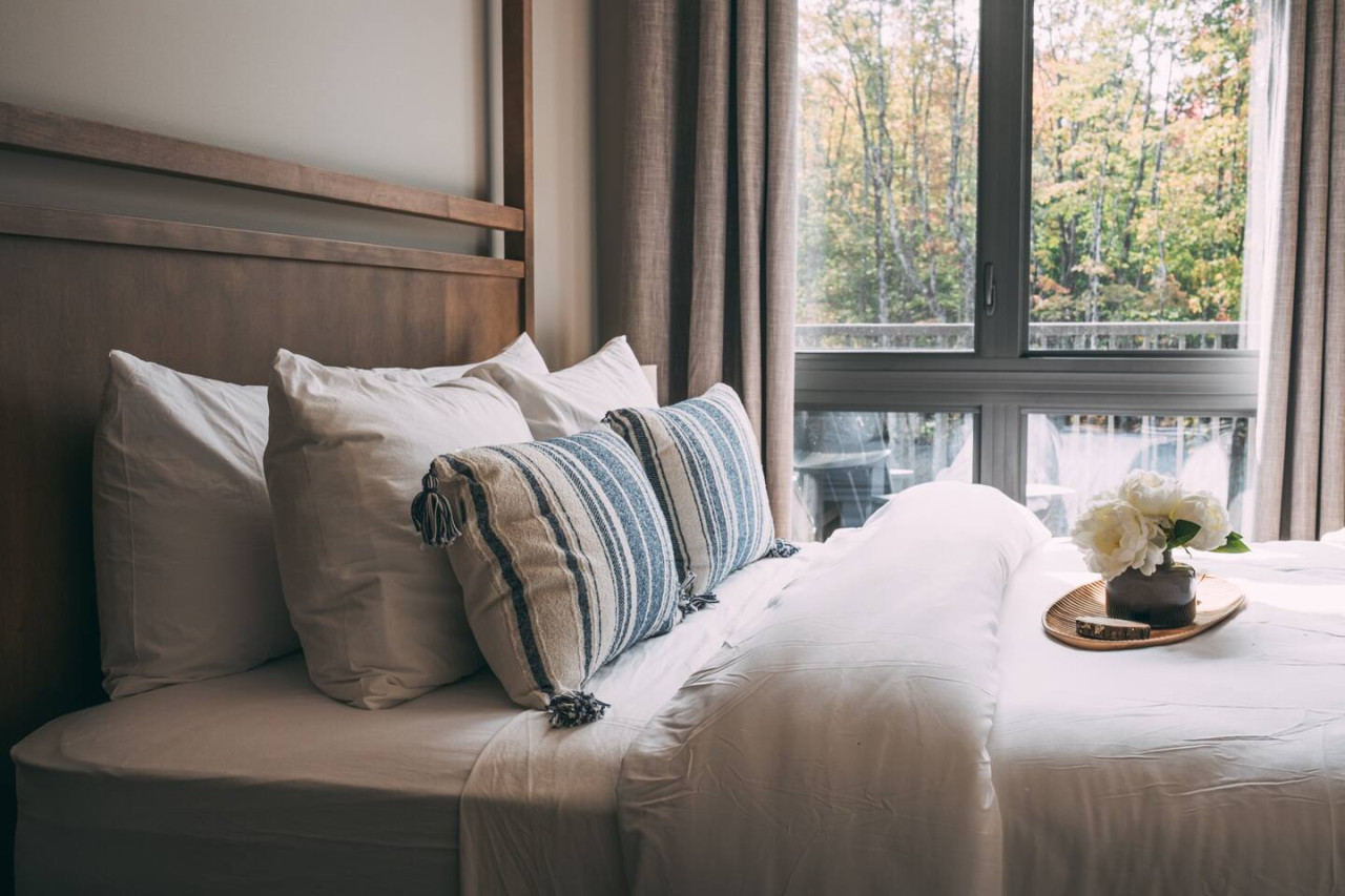 **Host have more than 2000 five stars reviews** Welcome to our family-friendly penthouse in the prestigious Verbier Mont-Tremblant resort! This stunning upper-floor chalet offers an unforgettable vacation experience for families seeking luxury, comfo...rt, and plenty of activities to enjoy. Indulge in the exclusive amenities of our hot tub, sauna, and gym facilities. Embrace the summertime with a revitalizing pool, and relax by the fire pit, elevating your experience to unparalleled levels of luxury and relaxation. As you step inside, you'll be immediately impressed by the cathedral ceiling with exposed wood beams, creating a warm and inviting ambiance. Gather around the cozy gas fireplace in the spacious living area, perfect for quality family time and relaxation. The chalet spans across two levels, providing ample space for everyone to spread out and unwind. The master bedroom is a true retreat, featuring a comfortable king-size bed, an ensuite bathroom for added convenience, and a 65-inch smart TV for entertainment. Step out onto the large balcony, furnished with Adirondack chairs, and soak in the breathtaking views of the resort. It's the ideal spot to enjoy your morning coffee or sizzle up delicious meals on the year-round BBQ. Inside the chalet, you'll find high-end furniture throughout, ensuring your utmost comfort and style. The well-equipped kitchen allows you to prepare family feasts with ease, while the dining area provides a perfect setting for shared meals and bonding moments. The second bedroom is designed with kids in mind, offering a set of double bunk beds that will surely bring excitement to their stay. Immerse yourself in the abundance of activities offered by Verbier Mont-Tremblant. From skiing and snowboarding in the winter to hiking, biking, and golfing in the summer, there's something for everyone in the family to enjoy. Explore the resort's amenities and nearby attractions, or simply relax and take in the stunning views of the resort from the comfort of your chalet. Additionally, two covered parking spots are available for your convenience. Create lasting memories with your loved ones at this family-oriented Airbnb in Verbier Mont-Tremblant. Book your stay today and embark on a remarkable vacation filled with adventure, relaxation, and quality family time. FAQ What is the walking distance from the pedestrian village (restaurants and shops)? 20 minutes Early Check-in/Check-out: Is it possible to have an early check-in or check-out? Yes, if available. However, confirmation cannot be guaranteed more than 1 day in advance. Coffee: What type of coffee makers are provided at the property? We have a Breville espresso machine . Additionally, there is a drip machine with a coffee grinder. Property items: What items are provided at the property? We provide fresh coffee beans, sugar, salt and pepper, olive oil, basic spices, dish and dishwasher soaps, garbage and recycling bags, 3 rolls of toilet paper per bathroom, laundry detergent, 1 roll of paper towels, and all-purpose cleaner. Check-in procedures: What are the check-in procedures? You will receive a detailed email at least 3 days prior to your arrival with all the information you need. Parking: We have more cars than the number of parking spots provided. What should we do? There are many public parking options available in Tremblant, most of which are free, such as P1 and P2. Citq 314216