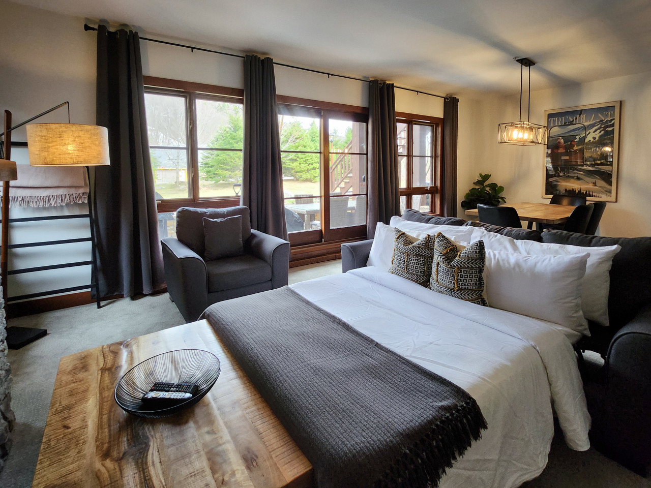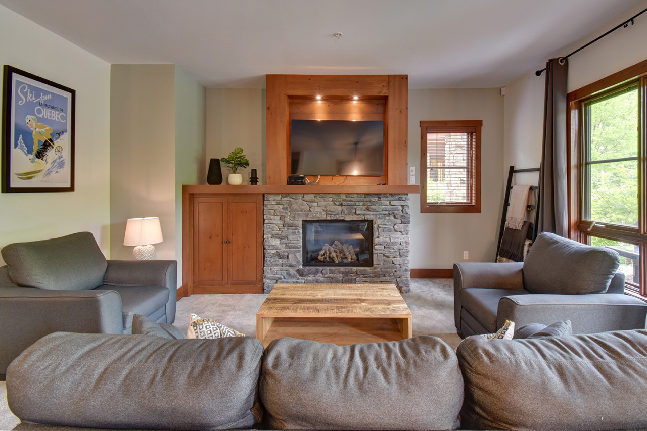 Welcome to Étoile du Matin 1510-23, your ultimate vacation destination in Mont-Tremblant! This stunning complex offers a range of luxurious accommodations, and we are delighted to present this exceptional 2-bedroom, 2-bathroom unit for your stay. S...tep inside and be greeted by a beautifully appointed living space designed to provide both comfort and style. The master bedroom boasts a king-size bed, an ensuite bathroom, and a smart TV, ensuring a restful and enjoyable retreat. The second bedroom features two queen-size beds and its own smart TV, offering ample space for your family or friends. Prepare delicious meals in the fully equipped kitchen, complete with modern appliances and all the amenities you need. Dine together in the spacious dining area or take advantage of the large terrace, where you can enjoy a year-round BBQ while breathing in the fresh mountain air. During the summer months, take a refreshing dip in the pool or soak in the inviting hot tub. For those seeking the best ski-in, ski-out experience, Étoile du Matin offers unparalleled access to the slopes of Mont-Tremblant, allowing you to hit the slopes with ease. Convenience is key with heated garage parking and exterior parking available for your vehicles. After a day of outdoor adventures, relax in the cozy living area, unwind in front of the fireplace, or watch your favorite shows on the smart TV. Étoile du Matin provides the perfect combination of luxury, comfort, and breathtaking surroundings. Immerse yourself in the beauty of Mont-Tremblant, breathe in the mountain-fresh air, and create unforgettable memories in this exceptional vacation retreat. FAQ What is the walking distance from the pedestrian village (restaurants and shops)? need to use the casino shuttle. Ski/in ski out: The access depends of snow falls but unusually open mid-December up to bigging of April. To verify you can contact Station Tremblant. Early Check-in/Check-out: Is it possible to have an early check-in or check-out? Yes, if available. However, confirmation cannot be guaranteed more than 1 day in advance. Coffee: What type of coffee makers are provided at the property? We have a Nespresso machine that uses small pods and comes with a milk frother. Additionally, there is a drip machine with a coffee grinder. Property items: What items are provided at the property? We provide fresh coffee beans, a box of Nespresso pods, sugar, salt and pepper, olive oil, basic spices, dish and dishwasher soaps, garbage and recycling bags, 3 rolls of toilet paper per bathroom, laundry detergent, 1 roll of paper towels, and all-purpose cleaner. Check-in procedures: What are the check-in procedures? You will receive a detailed email at least 3 days prior to your arrival with all the information you need. Parking: We have more cars than the number of parking spots provided. What should we do? There are many public parking options available in Tremblant, most of which are free, such as P1 and P2. Swimming pool and whirlpool: -The swimming pool is only open in summer -Opening hours are 11 a.m. to 7 p.m. for the whirlwind -A maximum of 10 people inside the enclosure will be allowed. (RBQ requirement) -All people aged 12 and under must be accompanied by an adult and children aged 7 and under must be in the care of a responsible adult at all times. -Wearing a swimsuit is obligatory. -No food and glass containers will be allowed. Citq 237075