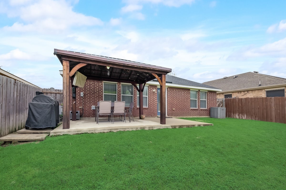 Spacious 3BD2BA unit. The master suite includes an en-suite bathroom, while the other two bedrooms share a full bath. Featuring an in-unit washer, dryer, a gourmet kitchen, & Smart TVs. Amenities incl: the fitness center, resort-style pool, on-site p...arking, bike storage, & club lounge. It offers an easy access to HWY161 and HWY20, Epic Central park & Play Grand Adventures. Review the 'OTHER THINGS TO NOTE' section. The space Open Kitchen with Island. 2 car garage and nice private backyard with Deck and outdoor dining Guest access Garage and Grill Other things to note IDs and Occupant Forms: Submit government IDs and occupant info within 24 hours of booking. Pets: Declare pets before booking. Fees: $350 for 1st pet, plus $250 for the 2nd pet (max 2). Weight and breed restrictions apply. Community Rules: Keep the community clean, leash dogs outside, and keep cats indoors. Balcony Safety: Use safety gates for young children. Parking Rules: Use designated spots, avoid fire lanes, handicap areas, and untagged reserved spots. Request a reserved space if needed. Note: Nabro Furnished Housing is not liable for towing fees. Lost Keys/Fobs: $100 fee for lost keys or fobs. Utilities: Rent covers $200 for a 3-bedroom unit, incl. electricity, water, trash, and Internet. Conserve to reduce impact; actual costs may vary based on circumstances and rates.