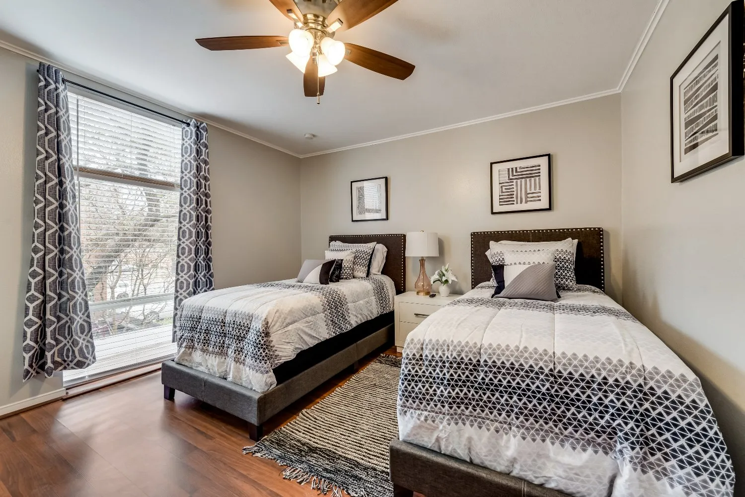 Discover unmatched convenience in this fully furnished, smoke-free 2-story 3BD/3BA condo. Features stylish lighting fixtures, tufted headboards in the bedrooms, a King bed in the master bedroom, a Queen bed, and two convertible twin beds. Enjoy amen...ities like: washer, dryer, pool, BBQ grill etc. Just minutes from DFW Airport and near highways 30, 360, and 183. Review the 'OTHER THINGS TO NOTE' section for more details. The Space Enjoy the space and comfort of our 3-bed, 3-bath condo, complete with a cozy front patio and a private fenced backyard. The ground floor features a bedroom with a queen bed and an en-suite bathroom with a shower and toilet. Revel in the high ceilings of the spacious living room and dine with a view in the separate dining area overlooking the backyard. The laundry room is smartly situated under the stairs leading to the upper floor, where you'll find the master bedroom with a king-sized bed and attached bathroom. The second bedroom is adaptable with twin beds that can convert to a king, accommodating up to 6 guests comfortably. The large backyard is ideal for outdoor barbecues or just unwinding in the open air. Other things to note IDs and Occupant Forms: Submit government IDs and occupant info within 24 hours of booking. Pets: Declare pets before booking. Fees: $250 for 1st pet, plus $150 for the 2nd pet (max 2). Weight and breed restrictions apply. Community Rules: Keep the community clean, leash dogs outside, and keep cats indoors. Balcony Safety: Use safety gates for young children. Parking Rules: Use designated spots, avoid fire lanes, handicap areas, and untagged reserved spots. Request a reserved space if needed. Note: Nabro Furnished Housing is not liable for towing fees. Lost Keys/Fobs: $100 fee for lost keys or fobs. Utilities: Rent covers $200 for a 4-bedroom unit, incl. electricity, water, trash, and Internet. Conserve to reduce impact; actual costs may vary based on circumstances and rates.