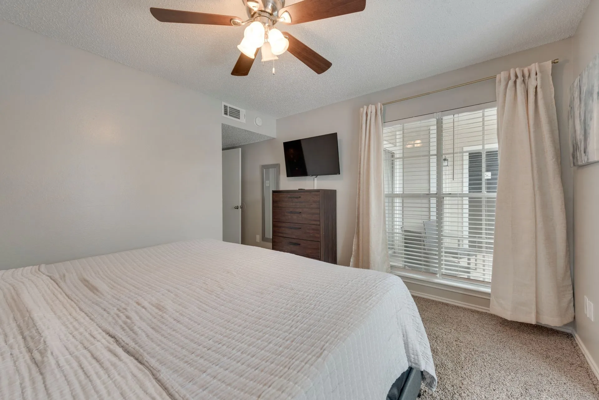 This stunning 1BA furnished apartment offers a direct pool view for you to enjoy. It features the benefit of an in-unit washer/dryer & a king bed, along with access to a newly designed club lounge. Relax by the resort-style pool or stay fit in the mo...dern gym just across the street. Perfectly located near DFW Airport, Irving Mall, & major highways including HWY 161, HWY 183, and HWY 360. Check the 'Other Things to Note' section for more details. The space The unit is a large 1bed 1bath with dining and a fully equipped kitchen. Washer & Dryer also in the unit. With a host of new amenities and attractions. One of the highlights of this community is that it is going through major repositioning. The club lounge is already ready, it has a newly renovated resort-style pool. This elegant and inviting space provides residents with a place to relax, socialize, and build meaningful connections with their neighbors. Whether you're hosting a gathering or simply seeking a tranquil spot to unwind, the club lounge offers the perfect setting. Imagine spending your leisurely afternoons basking in the sun by the poolside or taking refreshing dips to beat the Texas heat. This amenity will undoubtedly add a touch of luxury and relaxation to your stay. Guest access Enjoy the community pool, lounge during office hours and Gym. Other things to note IDs and Occupant Forms: Submit government-issued IDs and occupant info within 24 hours of booking. Pets: Declare pets before booking. Fees: $250 for 1st pet, $150 for 2nd pet (max 2). Weight and breed restrictions apply. Community Rules: Keep the community clean, leash dogs outside, and keep cats indoors. Balcony Safety: If you have a balcony, ensure you use safety gates for young children. Parking Rules: Follow parking guidelines - Park in designated spots, avoid fire lanes, handicap spaces, and reserved areas without a tag. Request reserved space if needed. $50 monthly fee applies. Note: We are not responsible for towing fees. Lost Keys/Fobs: $100 fee applies for lost keys or fobs. Utilities: Rent covers up to $100 for a 1-bedroom unit, including electricity, water, trash, and the Internet. Manage usage to reduce environmental impact; costs may vary based on circumstances and rates.