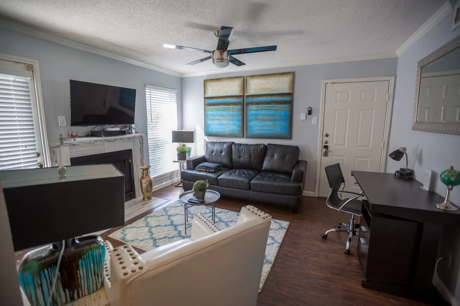 Newly renovated 1BD/1BA ground-floor condo with a queen bed, bathed in natural light & offering scenic green views. It includes a fully-equipped kitchen with full-sized appliances, an in-unit washer/dryer, a reserved carport, a patio, & a pool. Moder...n amenities & contemporary furniture make it a perfect haven for relaxation. Enjoy easy access to HWY 183, HWY 161, & DFW Airport. Review "Other Things to Note" section for more details. The space This well-illuminated condo offers full functionality, featuring high-speed internet access and a flat-screen TV for your entertainment. The fully-equipped kitchenette, complete with a double sink and stainless steel appliances, ensures delightful meal preparation. Additionally, a cozy desk and chair are provided for work purposes, and the new full-sized washer and dryer make laundry a breeze. Guest access During the summer season, you can enjoy access to the pool for relaxation and recreation. Your convenience is ensured with assigned covered parking, and there's also a designated green space where you can take your pets for a leisurely stroll. Other things to note IDs and Occupant Forms: Submit government IDs and occupant info within 24 hours of booking. Pets: Declare pets before booking. Fees: $250 for 1st pet, plus $150 for the 2nd pet (max 2). Weight and breed restrictions apply. Community Rules: Keep the community clean, leash dogs outside, and keep cats indoors. Balcony Safety: Use safety gates for young children. Parking Rules: Use designated spots, avoid fire lanes, handicap areas, and untagged reserved spots. Request a reserved space if needed. Note: Nabro Furnished Housing is not liable for towing fees. Lost Keys/Fobs: $100 fee for lost keys or fobs. Utilities: Rent covers $100 for a 1-bedroom unit, incl. electricity, water, trash, and the Internet. Conserve to reduce impact; actual costs may vary based on circumstances and rates.