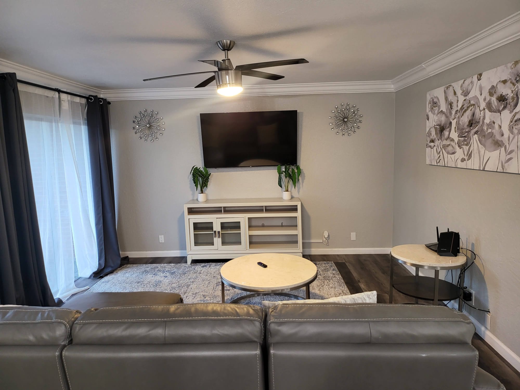 Stylish 2nd-floor 3BD/3BA home in Grand Prairie featuring a king bed, queen bed, twin bed, dedicated workstation, dining table, private patio, and in-unit washer/dryer. Conveniently located near DFW Airport and major highways 30, 360, and 183. Enjoy ...nearby attractions like Six Flags Over Texas and AT&T Stadium, home of the Dallas Cowboys. Check "Other Details to Note" section for more. The space Constructed in 2016, this property embodies the epitome of contemporary urban living. Nestled in the Richardson's Town Center development, it's centered around Whole Foods Market. Ideal for outdoor and fitness enthusiasts, it's a short five-minute walk to Spring Creek Trail and Firewheel Golf Park. The unit boasts wide windows, allowing not only natural light but also a pool view. In 2019, we introduced Alexa as part of our amenities—your Personal Assistant for weather updates, traffic information, or relaxing with contemporary Jazz or classical music, and more. Gym & Pool Access (For Stays Over 31 Days): A makeshift gym is available for guest use. To access the gym and pool, guests staying more than 31 days must be registered as occupants through AppFolio and obtain a resident ID from the HOA office. Guest access A covered and gated parking garage, luxury pool, 24-hour on-site laundry facilities, a 24-hour fitness center, a club room with a pool table and backgammon games, and an outdoor grilling area are among the amenities available. Other things to note IDs and Occupant Forms: Submit government-issued IDs and occupant info within 24 hours of booking. Pets: Declare pets before booking. Fees: $350 for 1st pet, $250 for 2nd pet (max 2). Weight and breed restrictions apply. Community Rules: Keep the community clean, leash dogs outside, and keep cats indoors. Balcony Safety: If you have a balcony, ensure you use safety gates for young children. Parking Rules: Follow parking guidelines - Park in designated spots, avoid fire lanes, handicap spaces, and reserved areas without a tag. Request reserved space if needed. Note: Nabro Furnished Housing LLC is not responsible for towing fees. Lost Keys/Fobs: $100 fee applies for lost keys or fobs. Utilities: Rent covers up to $200 for a 3-bedroom unit, including electricity, water, trash, and Internet. Manage usage to reduce environmental impact; actual costs may vary based on circumstances and rates.