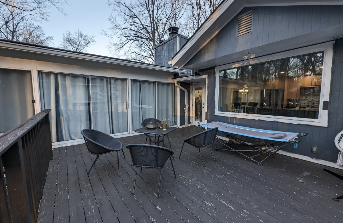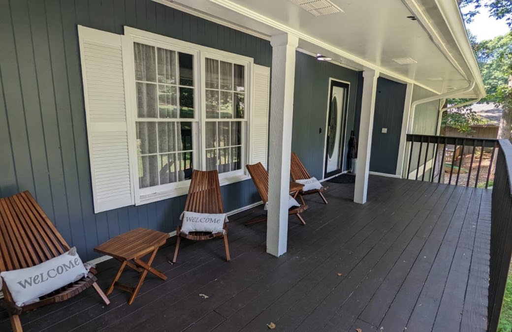 Discover comfort and style in this 3-bedroom, 2.5-bathroom bungalow with a sunroom and common living areas. Unwind in the king-size bedrooms, enjoy the patio with garden views, and catch Falcons' games on large flat-screen TVs. Ideal for work or play..., the space offers a fully equipped kitchen, high-speed Wi-Fi, and a deck for sipping Sweet water brews amidst wooded surroundings. The space Step inside and be greeted by: > Modern, sleek design that exudes sophistication and comfort. > An abundance of natural light streaming through ample windows and a private balcony overlooking a verdant oasis. > Dedicated workspaces and a communal area, ideal for remote workers or students. > Expansive entertainment options: large screen TV, living room, and dining area. > Culinary convenience: a fully equipped kitchen with top-of-the-line appliances, including a stove, oven, dishwasher, microwave, and a Keurig coffee maker, to fuel your adventures. > Relaxation at your fingertips: unwind in the comfortable living area, dine al fresco on the private deck, or simply soak in the tranquility of your suburban sanctuary. > Laundry suite for added convenience > Private entrance and effortless check-in Perfectly designed for your comfort and convenience. Bedrooms: Unwind in tranquil elegance: Sink into king-size beds adorned with plush linens in each of the two serene bedrooms. Dedicated workspaces: Stay productive or create your own masterpieces at stylish workstations with ergonomic chairs. Entertainment at your fingertips: Relax and unwind with flat-screen TVs, perfect for movie nights or catching up on your favorite shows. Bathrooms: Indulge in spa-like serenity: Rejuvenate in full bathrooms featuring either a luxurious tub with shower or a refreshing standing shower. Living and Dining: Gather and connect: The spacious living room, with its large flat-screen TV and plush sofa bed, invites movie nights, game nights, or simply cozy evenings in. Dine in style: Enjoy intimate meals or lively gatherings in the modern dining area, comfortably seating four. Gourmet Kitchen: Culinary creativity unleashed: Unleash your inner chef in the fully equipped kitchen, featuring all the essentials from stainless steel appliances like a refrigerator with ice maker, stove, oven, and dishwasher, to a Keurig coffee machine and a complete cookware set. Stock your pantry: Spices and condiments are thoughtfully provided for your convenience. Outdoor Oasis: Unwind beneath the sky: Step outside onto your private deck and soak in the fresh air while enjoying the peace and quiet of your own secluded haven. Private Entrance and Effortless Arrival: Arrive at your leisure: Enjoy the convenience of a private entrance and keyless self-check-in for a seamless arrival experience. We are committed to protecting our properties and guest safety, which is why you will be asked to complete our independent verification. Before your booking begins, you will need to verify your details with us to complete your booking. For everyone's safety and security, we have cameras installed in the following outdoor areas: garage, front yard, side yard, deck/patio areas, steps, and back yard. Additionally, we have door and window sensors, as well as motion sensors, inside the property. Please note that this listing is for the main level of the home. The terrace level is not included in the booking and may be occupied by other guests. Inside the unit, there is a staircase connecting the two levels, secured with a deadbolt lock to ensure privacy. Guest access Your Private Oasis Awaits: Unwind and Unwind with Seamless Guest Access: From the moment you book your luxurious escape in East Cobb, your comfort and ease are our top priorities. Guest access is designed to be effortless, allowing you to settle in and start enjoying your haven right away: Self-Check-In: No need to wait for keys or lobby lines. We'll provide clear instructions for using the secure keyless lock on your private entrance, granting you access anytime after the designated check-in time. Uninterrupted Tranquility: Your haven is yours to enjoy privately. The entrance and outdoor spaces are dedicated solely to your use, ensuring a peaceful and secluded retreat. Wi-Fi Ready: Stay connected, stream your favorite shows, or share your East Cobb adventures with high-speed Wi-Fi available throughout your haven. Laundry Suite: Pack light and enjoy the convenience of a private laundry suite complete with a washer and dryer, perfect for longer stays or refreshing your wardrobe for those Atlanta outings. Early Check-In or Late Check-Out: Upon availability and with prior arrangement, we may be able to accommodate early check-in or late check-out requests for an additional fee, allowing you to maximize your East Cobb experience. Support: We're available via phone, email, or text to answer any questions you may have or address any concerns that arise during your stay. Your comfort and satisfaction are our top priority. Other things to note Welcome!
