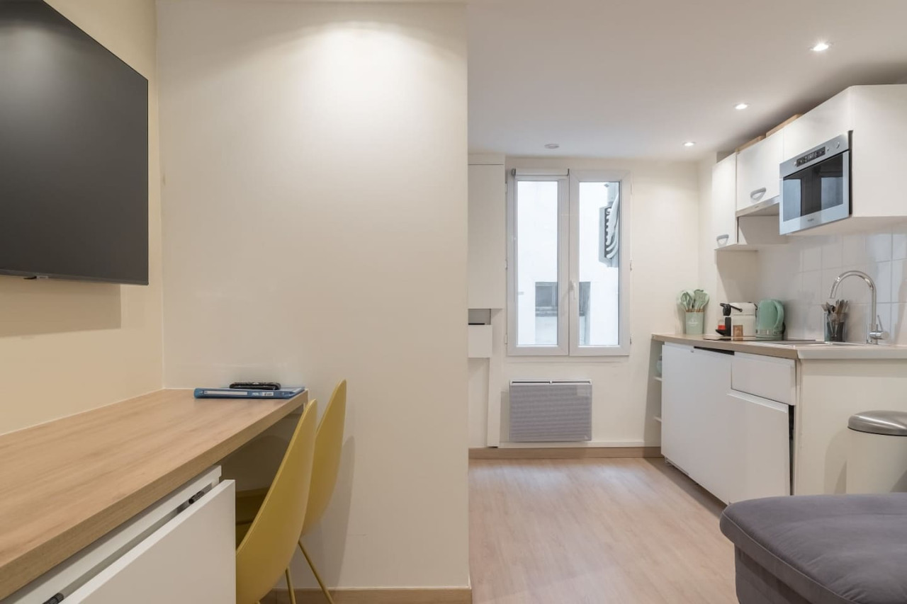 Lavie Maison presents a charming 1-bedroom 22m2 apartment in the heart of Paris. Experience authentic Parisian living with modern comforts including powerful air conditioning for summer time, luxury linen, and a fully equipped kitchen. Within walking... distance, landmarks like the Pompidou Centre, Louvre, and Opéra Garnier beckon. Stay close to top attractions and transport links, ensuring an unforgettable stay. Our Lavie Maison property offers a spacious living area equipped with a TV featuring standard cable channels, paired with a contemporary fully-equipped kitchen. The kitchen boasts essentials such as a dishwasher, microwave, refrigerator, and coffee maker. The bedroom, adorned with 4* linen, promises restful nights, while the private bathroom with included hairdryer ensures you a start to your day feeling refreshed. Guests have full and private access to the appartement. It's designed for self-check-in, with the keys securely placed in a lockbox. This system allows guests to arrive at their convenience, irrespective of the hour. Please note, the studio is on the 2nd floor and is accessible only via staircase. While you enjoy the privacy and autonomy of the entire apartment, know that Lavie Maison is here to ensure your stay is seamless and memorable. Entrusted with the care of this property, our dedicated team is available for any inquiries, recommendations, or assistance you may need. Whether you're curious about local attractions, in need of restaurant recommendations, or have any questions regarding the apartment, reach out to us. Lavie Maison is committed to providing you with a stellar Parisian experience. We're just a message or call away, eager to help you make the most of your stay. Situated in the pulsating heart of Paris, the studio is a stone's throw away from Strasbourg saint-denis. This location boasts proximity to iconic landmarks including the Pompidou Centre, Louvre Museum, and Opéra Garnier. The surrounding area is vibrant, with an array of restaurants, cafes, and boutiques that exude Parisian flair. With attractions like the Square Émile Chautemps and Porte Saint-Denis just around the corner, there's always something to explore. Welcome to our apartment, nestled in Paris's 2nd arrondissement! This prime location offers effortless access to lively areas and convenient transport options, ensuring a memorable and comfortable Parisian experience. Here's your guide to navigating and enjoying the area. Nearby Attractions: Pompidou center: A short 10-minute bus ride will lead you to Paris's cutlural hub Le Louvre Museum: A short 15-minute metro ride will lead you to discover this symbol of global heritage. Opéra Garnier: A short 10-minute metro ride will lead you to this architectural jewel of the arts. Nearest Metro Stations: Strasbourg Saint-Denis (Line 4, 8 and 9) – Roughly 1 minute away on foot. Sentier (Line 3) - Roughly 3 minutes away on foot. From Major Parisian Airports: Charles de Gaulle Airport (CDG): About 40 minutes via public transport. Take RER B to Gare du Nord, followed by a short 5 minute metro ride with the Line 4 to the apartment. Orly Airport (ORY): Typically a 1h10 minute journey. Hop on the Orlyval to Antony, transition to RER B to Châtelet-Les Halles, followed by a short 15 minute walk to the apartment. Train Stations: Gare du Nord: Around 5 minutes by metro. Take Line 4 to the apartment. Gare de l'Est: Around 3 minutes by metro. Take Line 4 to the apartment. Gare de Lyon: Approximately 12 minutes by public transport. Take the Bus 91 to République, then take Line 8 or 9 and stop at Strasbourg Saint-Denis. Travel Tip: Use the Citymapper app for seamless navigation around Paris. It provides real-time transportation updates and directions, simplifying your exploration of the city. We wish you a stay filled with stunning Parisian moments and easy travels from our ideally situated apartment. Explore and enjoy Paris to its fullest! - Consult Parkopedia if you need a parking space / Nannybag if you need a luggage storage after your reservation. - You can drop off your belongings at the accommodation from 10.15am before check-in. - You can bring a pet but it must be added as a guest before booking - There is a travel cot for children up to 3 years old. - For same-day arrival (meaning you have booked the apartment on the day of arrival) or the day before, the apartment can be cleaned at 7pm, instead of the usual 2pm. - A mid-stay cleaning or other services are available on our application after booking.