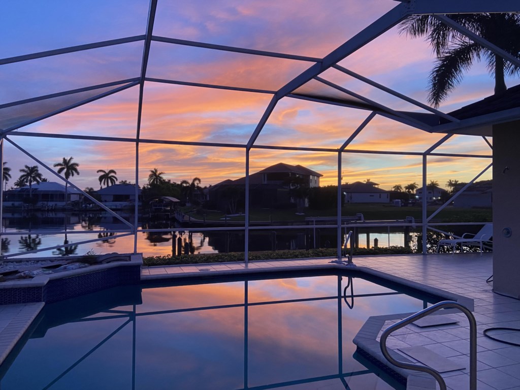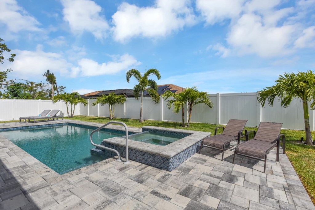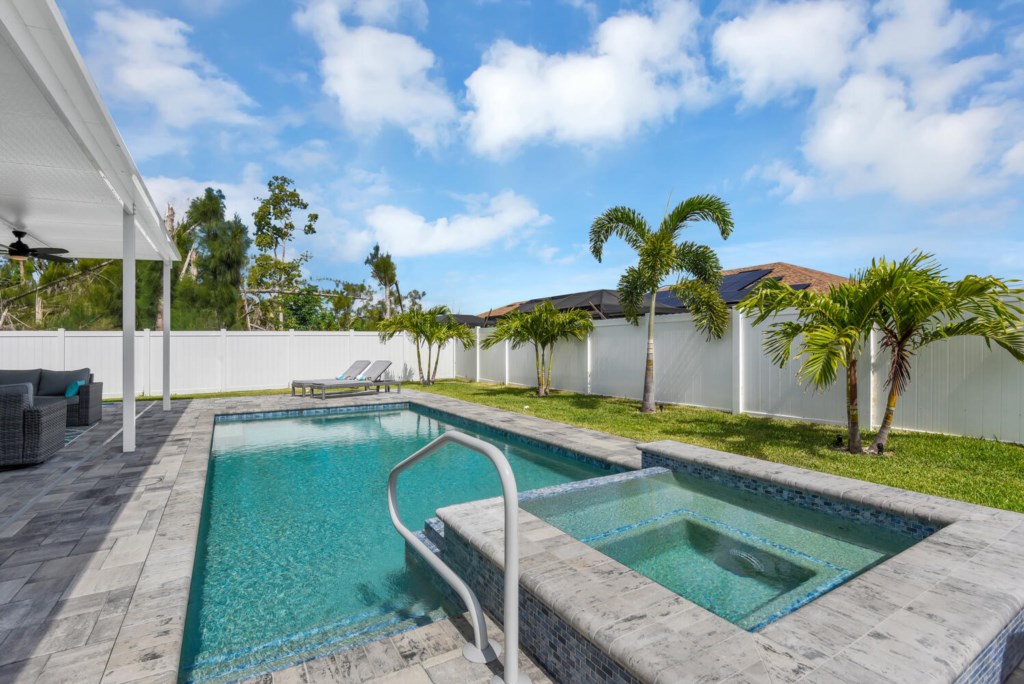 Pristine getaway! Once you walk in you will notice that VACATION STARTS HERE! Fabulous living area with plenty of space to relax and enjoy. Tastefully decorated throughout this Florida oasis. Everything you need is ready in this well appointed kitche...n. Make some cocktails to take out to the beautiful patio or take out your favorite grilling foods to enjoy the Florida Sunshine. Get ready for that big game to watch out there as well. Tons of seating outside, featuring a table and chairs, sofa chairs and chaise lounges. Entertaining at it's best, so go ahead and jump right in the heatable swimming pool to cool down after a long day or take a dip in the spa to relax. One of the most desirable areas of Southwest Cape Coral, close to all shopping, dining, and entertainment. Pet Friendly, Please specify what type, breed, and size of pet for approval (no cats). (Garage is not accessible). Pool heat is available at $25 / day or $400 / month. Pet Fee is $150/pet/stay.