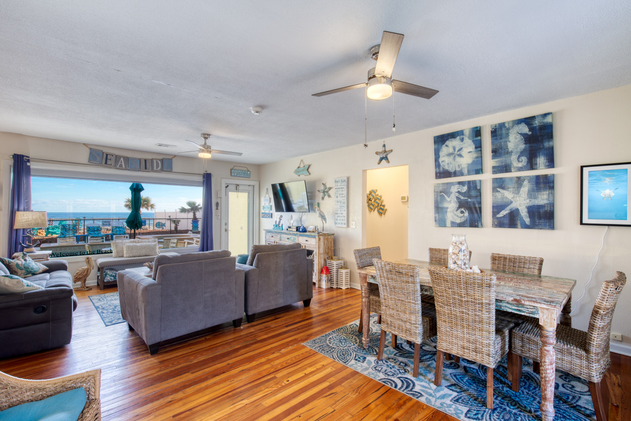 Enjoy breathtaking views of your private beach access from the Seaside Serenity Beach House. Featuring a pool and a sunrise deck, you will have views galore-enjoy watching the grandkids or kids play on the beach, see a rocket launch, get some hydroth...erapy poolside. There are two houses on the property, both are included in your rental. The main house has 3 bedrooms, 2 full baths, a full kitchen, 2 dining areas, and a massive living room. The guesthouse has 2 more bedrooms, 2 full baths, giant living room, a kitchen and a breakfast nook. Both units have laundry. House has been designed with exquisite beach furnishings so that you can enjoy comfort and style while relaxing in your private oasis. Fully equipped with wifi, books, towels, linens and everything you need-just bring your suitcase and bathing suit. Pool can be heated (additional charge, please see additional notes on pool heating). You have private beach access so walk out the back yard and put your toes in the sand while enjoying sunny Florida. We have put our heart and soul into this home and enjoy sharing it with others that, like us, want to come to the beach and have fun. Additional things we want to share. This is our family beach home and is one of the few homes this size on the beach with a pool. However, it's a house not a hotel and at times things may happen. Sadly, we cannot tell when something may break but we do respond promptly if there is an issue. Our cleaners are paid a living wage but this is a home on the beach...that means all the sweeping and mopping in the world and sand may still sneak in. The pool is not covered and so if you happen to check in after a windy day there may be leaves and sand in the pool...the pool is ALWAYS cleaned weekly and safe to swim in and usually looks great. If there are leaves, grab the pool net and sweep them out...we simply do not have anyone that can be on call after every wind storm...so if having to do that would upset you then we may not be the right fit. At the end of the day, we do this because it's supposed to be fun and we want you to enjoy a great vacation. We welcome fun, laid-back guests looking to have a good time. If you want to stay at a cool house in a great location and enjoy Daytona with a happy heart, we'd love to host you! The pool has a heater and can be heated for $200/day (sorry but this is what it costs us for propane so not negotiable). Pool heaters are notorious for having issues so if the pool is unable to be heated we would not charge you. Guests attempting to access the pool heater without paying for pool heating will be asked to leave the property. Please just let us know if you want the pool heated as messing with the controls ruins the heater. Owner keeps private vehicles in garage so garage is not available for rental. Ring cameras located at front door and on back of house. Video link here: https://drive.google.com/drive/folders/1SOQJPUAgiAGxoHE4r2lhjj5cn9h2hIhT?usp=sharing Damage Waiver Disclaimer: I. AGREEMENT On behalf of Salty Dog Vacations, LLC, the party authorized to rent the vacation rental property and the owner of the vacation rental property, Waivo has assumed the responsibility for damages as outlined below and waives Your security deposit up to $2,500, the waiver limit purchased by You, the renter, for your stay at the vacation rental property. Waivo is hereby responsible for theft or direct damage to real or personal property of the vacation rental property as a result of Your acts or omissions. Waivo will pay the lesser of the cost of repairs or the cost to replace the property up to $2,500. This waiver does not negate your responsibilities as a renter for items outside of Waivo’s responsibilities. This is not an agreement to provide insurance. You are buying a waiver of the security deposit otherwise due as part of Your vacation rental property lease agreement. II. EXCLUSIONS This Security Deposit Waiver will not pay for damages or theft resulting from: 1. Acts of God 2. Prior damage, cosmetic damage, or normal wear and tear 3. Theft without a valid police report if over $250 4. Loss of use of the vacation rental property 5. Rodent, termite, infestation, or wild animal 6. Damage to a motorized vehicle 7. Fine art, collectibles, or sets of items This Waiver will not pay for damage or theft of property owned by You. This Waiver will not pay for costs associated with odor, debris removal, backups of sewers and drains, landscaping, marring, maintenance, or mechanical breakdown. III. CONDITIONS Waivo has the sole authority to determine the nature and extent of damages, necessary repairs, and eligibility for the waiver, and shall exercise that authority in a reasonable manner. Waivo reserves the right to determine if damage is eligible for reimbursement at actual cash value. This Waiver will pay for excessive cleaning, as a direct result of damage, over and above the normal cleaning fee. An irreparable stain or spillage is considered damage. This Waiver is only effective for a one-time single continuous stay, of up to 90 days, for which You purchased the Waiver. It takes effect when You occupy the vacation rental property and terminates when You depart the same vacation rental property. This Waiver is only effective if any theft or damage is reported to Waivo by You, the property manager, the online travel agent or the owner of the vacation rental property within 14 days of Your departure from the vacation rental property. Waivo will not respond to damage or theft under $50 US dollars. If there is a dispute related to these terms, mediation is required before any party may file litigation. In the event of litigation, all parties waive the right to a jury trial. IV. DEFINITIONS You, or Your, is the renter of the vacation rental property and includes the renter’s spouse, children and any other person the renter invited on to the vacation rental property during your stay at the vacation rental property.