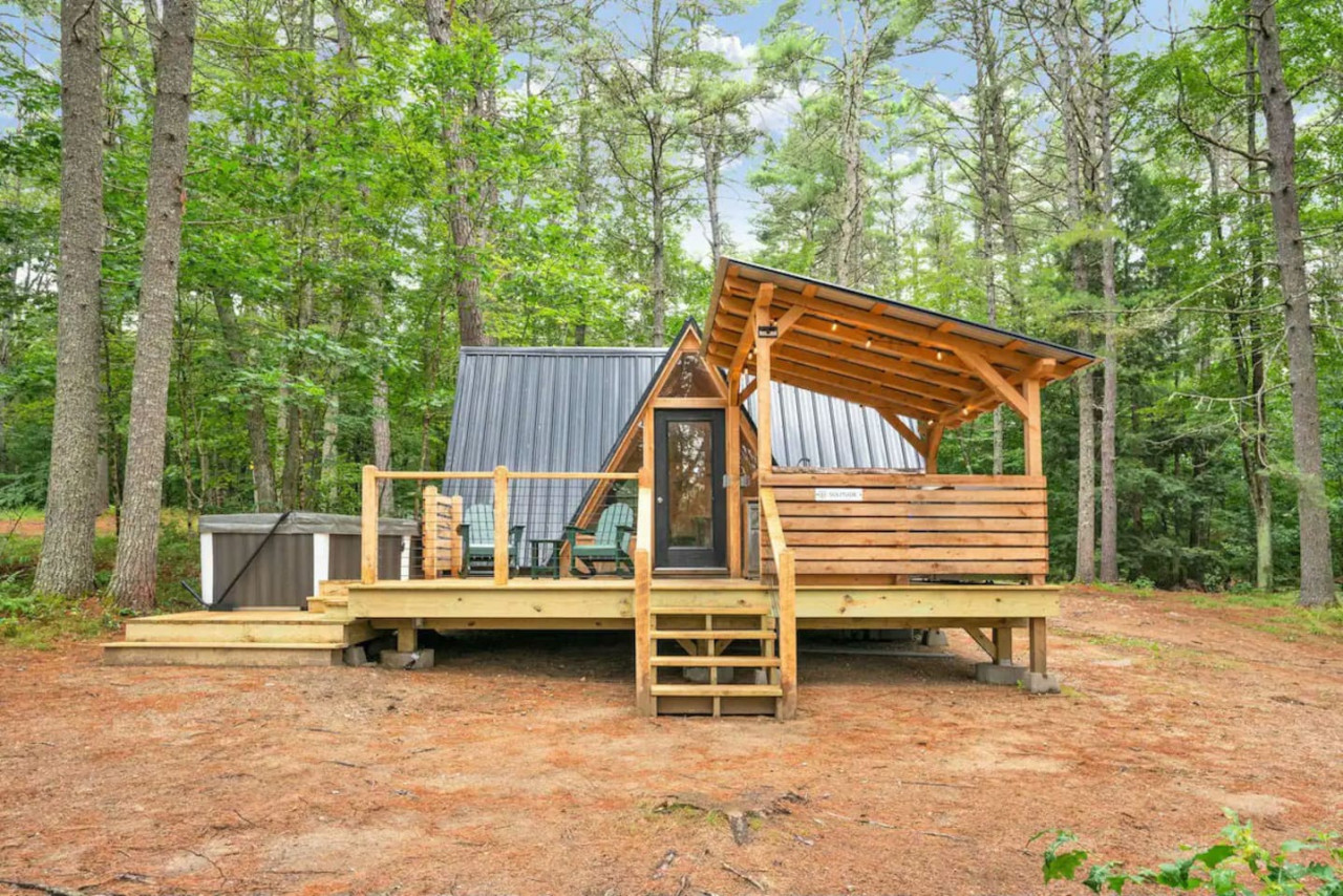 Discover Tranquility in our Secluded A-Frame Cabin, Conveniently Located Near Attractions! Your cabin offers linens, towels, and a fully equipped kitchen ready for culinary escapades. Simply pack your groceries and personal essentials. Experience th...e Essence of Wooded Maine, with a quick 15-minute drive to a major chain grocery store. Immerse yourself in nature with serene ponds just moments away. Inside, unwind in cozy comfort after days filled with thrilling adventures and outdoor activities. Pond+Pine: A Luxurious Forest Escape A-Frame Cabin: Solitude Nestled within a serene expanse of woods lies Pond+Pine, your private A-Frame sanctuary. As part of a burgeoning community of high-end cabins, each residence promises an intimate and upscale experience despite its compact size. Premier Comfort Inside each cabin, guests are greeted by a cozy queen bed and a pristine full bathroom. While the space may be quaint, every corner has been meticulously crafted to exude luxury and functionality. Gourmet Alfresco Dining Step outside to a fully-equipped outdoor kitchen tailored for culinary enthusiasts. Grill your favorite steak, chill beverages in the mini-fridge, and rinse fresh produce at the sink, all while enjoying the calming whisper of the surrounding trees. Nature's Dining Room Feast with style at your personal live-edge picnic table, which sits just a stone's throw from your cabin. Here, nature's palette of green and gold sets the mood. Relax & Rejuvenate Bask in the warm embrace of your private hot tub, or stoke a fire at your exclusive fire pit. As the night grows darker and the stars come alive, let the gentle crackling soothe your soul. Adventure at Your Doorstep Pond+Pine isn’t just a retreat; it's an adventurer’s playground. Whether you're casting a line into the fish-rich pond, kayaking through its serene waters, canoeing under the dappled sunlight, or gliding on a paddle boat, there's an adventure waiting for every spirit. Digital Detox In our commitment to ensuring a true escape, we've intentionally excluded Wi-Fi from our cabins. It's time to disconnect from the digital and reconnect with the natural. Outdoor Delights Step outside onto the deck and savor your morning coffee while listening to the birds chirping. In the evenings, gather around the fire pit for marshmallow roasting and stargazing. As an added bonus, we've recently added frisbee golf, cornhole, and horseshoes to enhance your outdoor experience. Firewood is also provided as a nice little bonus, ensuring you have everything you need for a cozy and enjoyable time. Guests can enjoy common use of an outdoor pingpong table, perfect for a fun and casual activity during their stay. Nightlife Nearby For those craving a dash of thrill, a premier casino is conveniently located just 5 minutes away. From the gaming tables to gourmet dining, immerse yourself in an electrifying night out before returning to your peaceful Pond+Pine haven. Reserve your stay today and experience the magic of Pond+Pine—a blend of luxury, nature, and exhilaration. Don't forget, if your desired dates aren't available for this cabin, we have two more equally enchanting listings waiting for you. Simply send us a message, and we'll provide you with the links. Book your stay at our cabin oasis today and create memories that will last a lifetime. We look forward to hosting you! Don't forget, if your desired dates aren't available for this cabin, we have two more equally enchanting listings waiting for you. Simply send us a message, and we'll provide you with the links. Book your stay at our cabin oasis today and create memories that will last a lifetime. We look forward to hosting you!