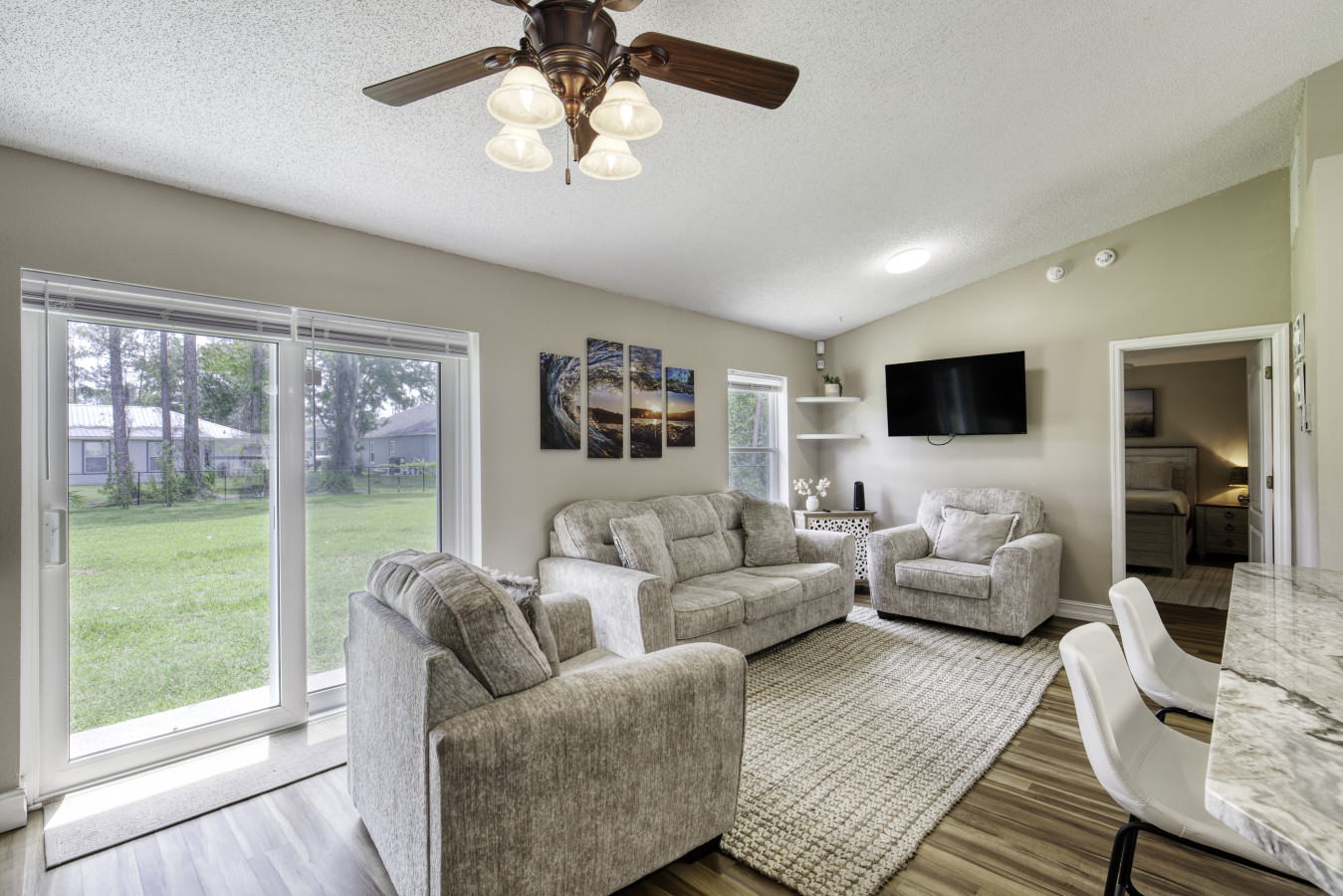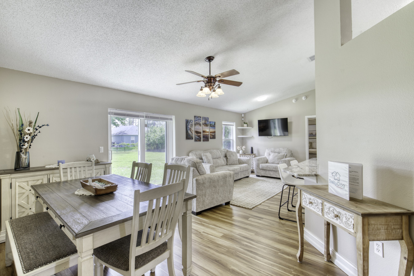 Large updated 3 bedroom home with fully fenced backyard. Enjoy a spacious back yard with fire pit, as you enjoy this space just a short drive from Flagler Beach. Two full baths, fully stocked chefs kitchen, cozy living room and great space for "Famil...y Game Night" will make you want to stay forever. Pets allowed with paid pet fee and pre-approval, please note. Living room, pool room, dining room and large rooms. House is set up for 6 guests but we have an air mattress to accommodate 6. LBTR#36880 Residential neighborhood just minutes from Flagler Beach You will want a car to get around. For pets: Fee is $25/per day per pet, some booking sites may not reflect this correctly so please note that fee may be added if needed. Damage Waiver Disclaimer: I. AGREEMENT On behalf of Salty Dog Vacations, LLC, the party authorized to rent the vacation rental property and the owner of the vacation rental property, Waivo has assumed the responsibility for damages as outlined below and waives Your security deposit up to $2,500, the waiver limit purchased by You, the renter, for your stay at the vacation rental property. Waivo is hereby responsible for theft or direct damage to real or personal property of the vacation rental property as a result of Your acts or omissions. Waivo will pay the lesser of the cost of repairs or the cost to replace the property up to $2,500. This waiver does not negate your responsibilities as a renter for items outside of Waivo’s responsibilities. This is not an agreement to provide insurance. You are buying a waiver of the security deposit otherwise due as part of Your vacation rental property lease agreement. II. EXCLUSIONS This Security Deposit Waiver will not pay for damages or theft resulting from: 1. Acts of God 2. Prior damage, cosmetic damage, or normal wear and tear 3. Theft without a valid police report if over $250 4. Loss of use of the vacation rental property 5. Rodent, termite, infestation, or wild animal 6. Damage to a motorized vehicle 7. Fine art, collectibles, or sets of items This Waiver will not pay for damage or theft of property owned by You. This Waiver will not pay for costs associated with odor, debris removal, backups of sewers and drains, landscaping, marring, maintenance, or mechanical breakdown. III. CONDITIONS Waivo has the sole authority to determine the nature and extent of damages, necessary repairs, and eligibility for the waiver, and shall exercise that authority in a reasonable manner. Waivo reserves the right to determine if damage is eligible for reimbursement at actual cash value. This Waiver will pay for excessive cleaning, as a direct result of damage, over and above the normal cleaning fee. An irreparable stain or spillage is considered damage. This Waiver is only effective for a one-time single continuous stay, of up to 90 days, for which You purchased the Waiver. It takes effect when You occupy the vacation rental property and terminates when You depart the same vacation rental property. This Waiver is only effective if any theft or damage is reported to Waivo by You, the property manager, the online travel agent or the owner of the vacation rental property within 14 days of Your departure from the vacation rental property. Waivo will not respond to damage or theft under $50 US dollars. If there is a dispute related to these terms, mediation is required before any party may file litigation. In the event of litigation, all parties waive the right to a jury trial. IV. DEFINITIONS You, or Your, is the renter of the vacation rental property and includes the renter’s spouse, children and any other person the renter invited on to the vacation rental property during your stay at the vacation rental property.