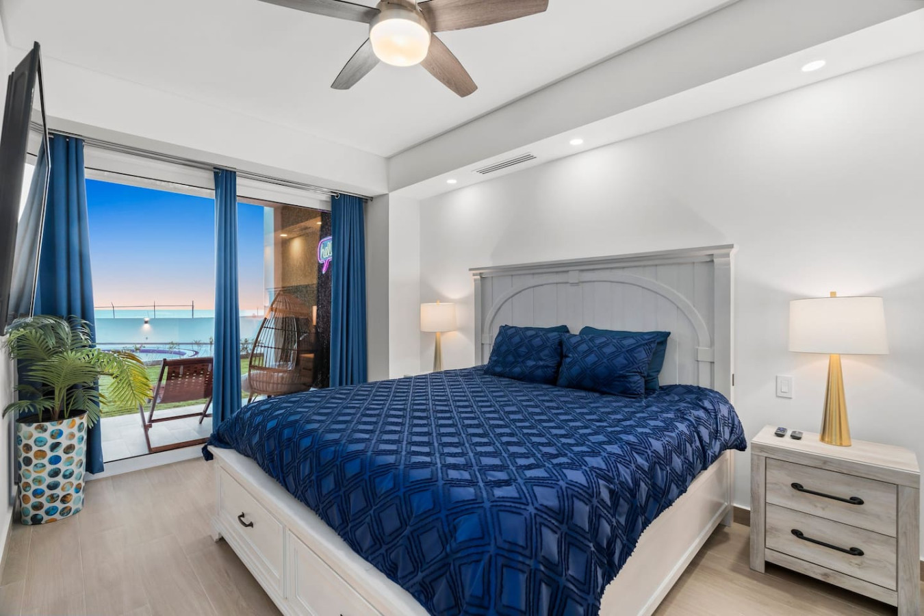 Indulge in the luxurious amenities that Encantame Towers has to offer, including access to our pristine swimming pool, state-of-the-art fitness center, and fine dining restaurants, this place will surely enchant you. In addition to the modern design... and vibrant colors that this 1 BR 1BA in floor unit offers, this unit also features a unique and fun element - a light-up grass wall! This is the perfect spot to take pictures and capture memories during your stay. - King Bed - Queen Pull Out Enjoy one of the only true ground floor units in the resort. easy and quick access to all of the amenities Everything that the resort has to offer messages through the app or give us a call Enjoy this newly opened ground floor unit that's close to all the action