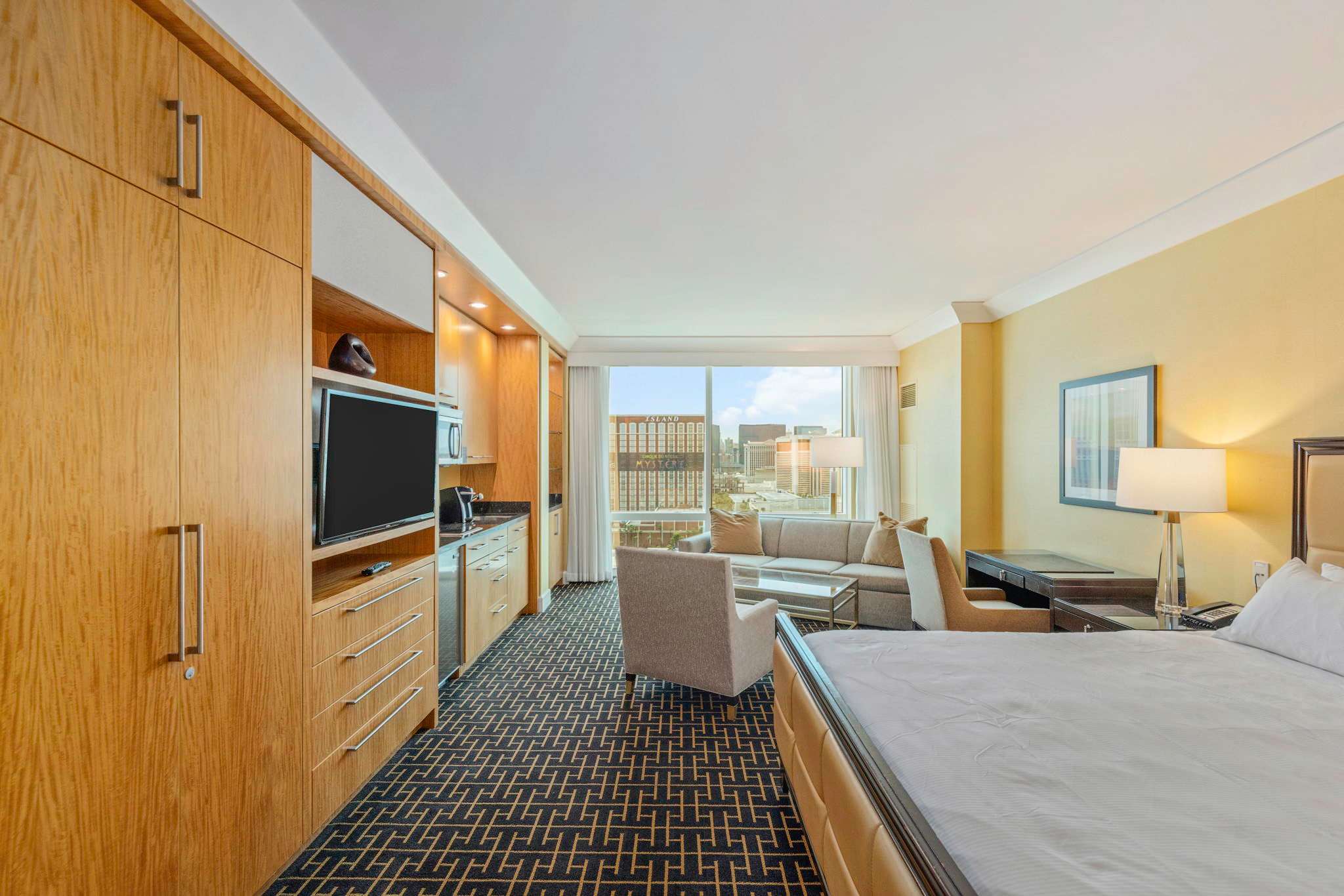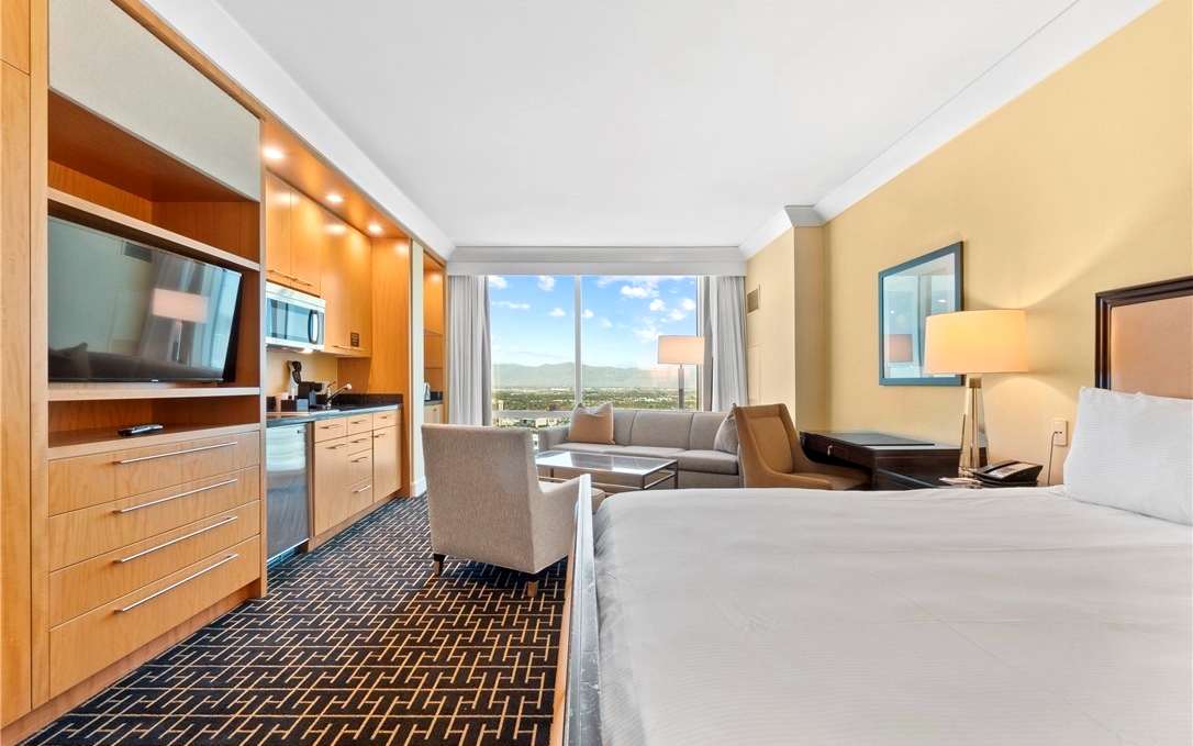 Indulge in luxury at this Las Vegas apartment, located within the iconic Trump International Hotel. Enjoy stunning city views from this modern suite, complete with a fully-equipped kitchen, comfortable living spaces, and resort-style amenities. Bene...fit from easy access to a sparkling pool, a state-of-the-art gym, and on-site dining. Located steps from the Fashion Show Mall and near the Las Vegas Strip, Wynn, Resorts World, and Treasure Island, this apartment puts you at the center of world-class shopping, dining, and entertainment. $50 Daily Resort Fee Payable before check-in space an outdoor heated pool, spa, fitness center, and Italian marble bathrooms -Whitegloved concierge and valet service, 24-hour reception, business facilities, and top-tier restaurant DJT on-site Why Youll Love It -Unmatched Views Perfect for short stays or extended getaways with full kitchenette and ample living space -Luxury Resort Amenities Guests also enjoy full access to the resort's top-tier amenities, including a state-of-the-art fitness center, luxurious outdoor pool, full-service spa, and multiple on-site restaurantsall within the prestigious Trump Hotel Las Vegas. This studio combines luxury, space, and resort-style livingperfect for your Vegas escape. Experience five-star comfort in the heart of Las Vegas at the iconic Trump International Hotel. This elegant suite offers breathtaking city views, modern amenities, and resort-style livingperfect for both business and leisure travelers. Enjoy full access to the sparkling pool, state-of-the-art fitness center, and on-site dining, all just an elevator ride away. Indulge at the hotels upscale restaurants or relax in the world-class spa. neighborhood As a guest, youll enjoy upscale on-site optionsincluding a luxury spa, well-equipped gym, resort pool, and fine-dining restaurantall within the glitzy ambiance of the Trump Tower . -More Vegas Adventure For a change of pace, venture downtown to explore the historic Neon Museum, or walk under the glittering canopy of the Fremont Street Experience, both offering unique glimpses of Las Vegas history . -Family-Friendly and Relaxed We are available via direct message and line to ensure your stay is comfortable transit notes