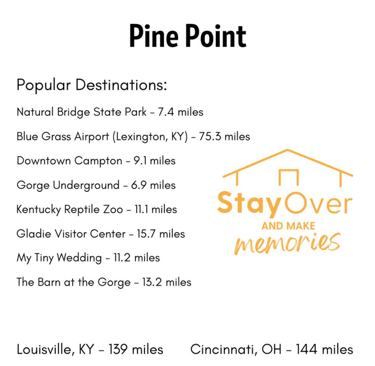 Immerse yourself in nature at 'Pine Point', a tiny cabin designed for nature lovers looking to experience peacefulness and serenity in the Red River Gorge, KY. Pine Point is tucked away in the pine trees of Paradise Valley just minutes from Red Point... BBQ. Paradise Valley is a quiet community where you can walk all roads and even fish in the pond - take your camera as there are several waterfalls. Welcoming up to 2 dogs, you don’t have to leave the dogs behind for this adventure! - Pine Point is pet friendly however pet fee of $100 does not show in total balance. We have a $100 pet fee that covers up to 2 dogs. Please contact directly after booking to add this $100 fee. - Amenities include a fully equipped kitchen (standard coffee pot, coffee grinder, blender, microwave), fiber WiFi, flat-screen TV (Roku Only) with DVD player, charcoal grill, electric fireplace, screened in porch, covered deck w/ outdoor furniture, fire pit, and more! -Sleeping Arrangements: Bedroom 1: King Bed - One full bathroom | One half bathroom - We provide fresh linens and towels. We also include essential starter packs to make your stay easier! (Starter packs include: 2 rolls of toilet paper, 2 rolls of paper towels, 3 shampoos and conditioners, 3 bar soaps, 3 laundry pods, 3 trash bags, and 1 sponge.) Firewood not provided, please purchase locally! - Please note trailers are prohibited. - Secluded Red River Gorge location - Close to hiking, horseback riding, rock climbing, kayaking, canoeing, zip lines, sight-seeing, restaurants, and much more! Natural Bridge Cabin Country