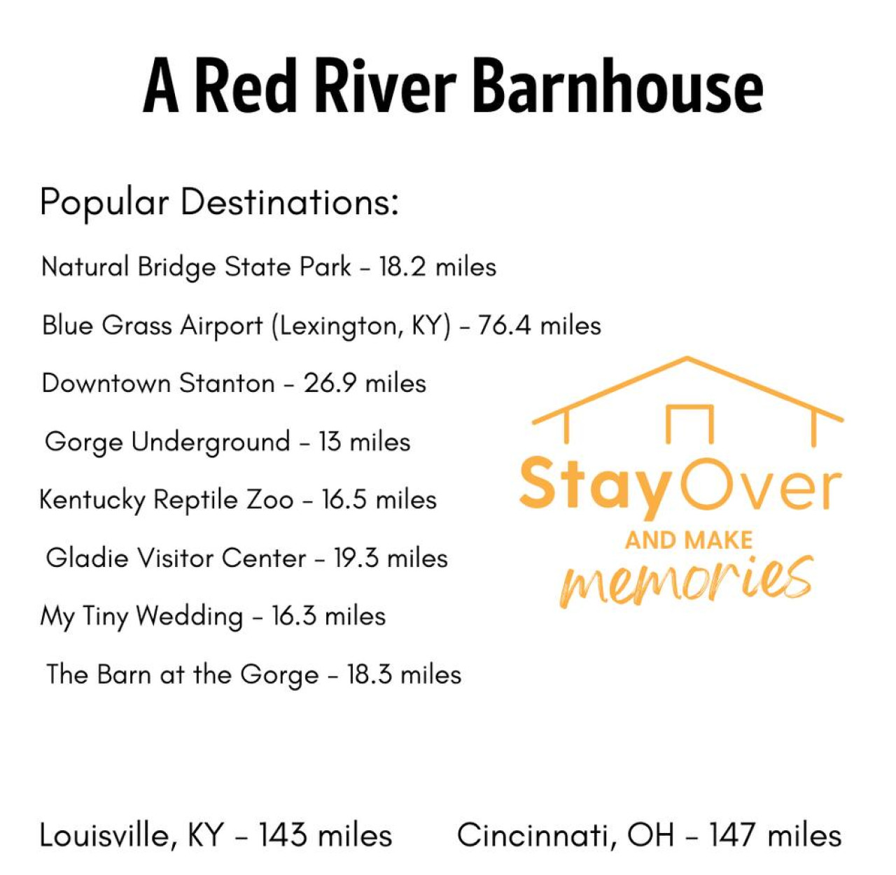 Find yourself nestled away at A Red River Barnhouse in the Red River Gorge! A wrap around deck accentuates the views above the trees of this beautiful ridge. At the base of this 3-acre property includes a creek that can at times be heard from the dec...k (follow the creek all the way to Creation Falls)! The kitchen has everything your chef needs including a gas oven and cooktop. Tiled walk-in showers with ceiling mounted rainfall showerheads are just a few of the luxuries you'll experience here! - Amenities include a fully equipped kitchen, hot tub, propane grill, gas fireplace, washer/dryer and more! - Bedroom 1: Queen Bed | Bedroom 2: Queen Bed | Queen Sofa Bed - Two Full Bathrooms. - We provide fresh linens and towels. We also include essential starter packs to make your stay easier! (Starter packs include: 2 rolls of toilet paper, 2 rolls of paper towels, 3 shampoos and conditioners, 3 bar soaps, 3 laundry pods, 3 trash bags, and 1 sponge.) We recommend purchasing firewood locally to avoid invasive species entering the area. - Please note that a 4WD vehicle is recommended. Trailers Prohibited. - Wooded Red River Gorge location! Secluded but still within 25 minutes of Natural Bridge State Park! Tons of other activities close by such as hiking, horseback riding, rock climbing, kayaking, canoeing, zip lines, sight-seeing, restaurants, and much more. Guests have access to the entire property. Adventure safely!