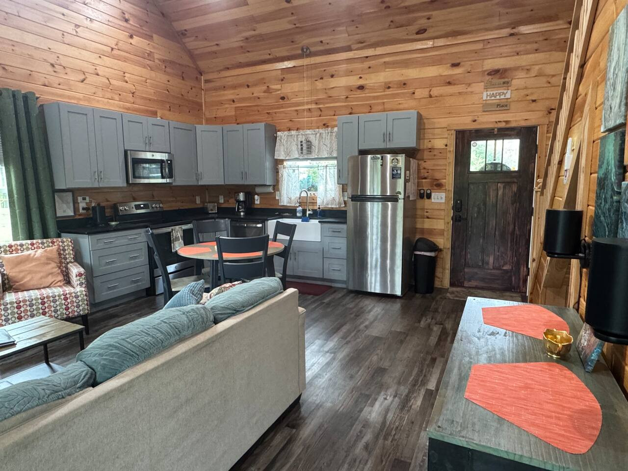 Welcome to 'Hemlocks Over Muir'; a private cabin with an unbeatable view, situated overlooking Muir Valley. Watch rock climbers on the Bibliothek wall while relaxing in the The Grotto, or hike into Muir Valley from the front door. You'll find excelle...nt WiFi and 2 smart TV’s for your enjoyment, the bathroom has a large walk in shower and front load washer/dryer. When you aren't relaxing in The Grotto, enjoy the disc golf or a fire at the fire pit. - Hemlocks Over Muir is pet friendly however pet fee of $50 does not show in total balance. We have a $50 pet fee that covers up to 2 dogs. Please contact directly after booking to add this $50 fee. - The Grotto is a large extended ledge below the cabin with a cave. It is easily accessible by stairs and provides a stunning view of the valley. - Amenities include a fully equipped modern kitchen (standard coffee maker, microwave, oven, dishwasher), two smart TVs (Roku), WiFi, indoor fireplace, fire pit, hot tub, washer/dryer and more! - Sleeping Arrangements: Bedroom Downstairs: California King Bed | Upstairs Loft: 2 Queen Beds - One full bathroom - We provide fresh linens and towels. We also include essential starter packs to make your stay easier! (Starter packs include: 2 rolls of toilet paper, 2 rolls of paper towels, 3 shampoos and conditioners, 3 laundry pods, 3 dishwasher pods, 3 bar soaps, 3 trash bags, and 1 sponge.) Firewood not provided, please purchase locally! - Please note that the cabin is located down a long gravel driveway. 2-wheel drive should be sufficient. Trailers prohibited. - Central Red River Gorge location - Close to hiking, horseback riding, rock climbing, kayaking, canoeing, zip lines, sight-seeing, restaurants, and much more.