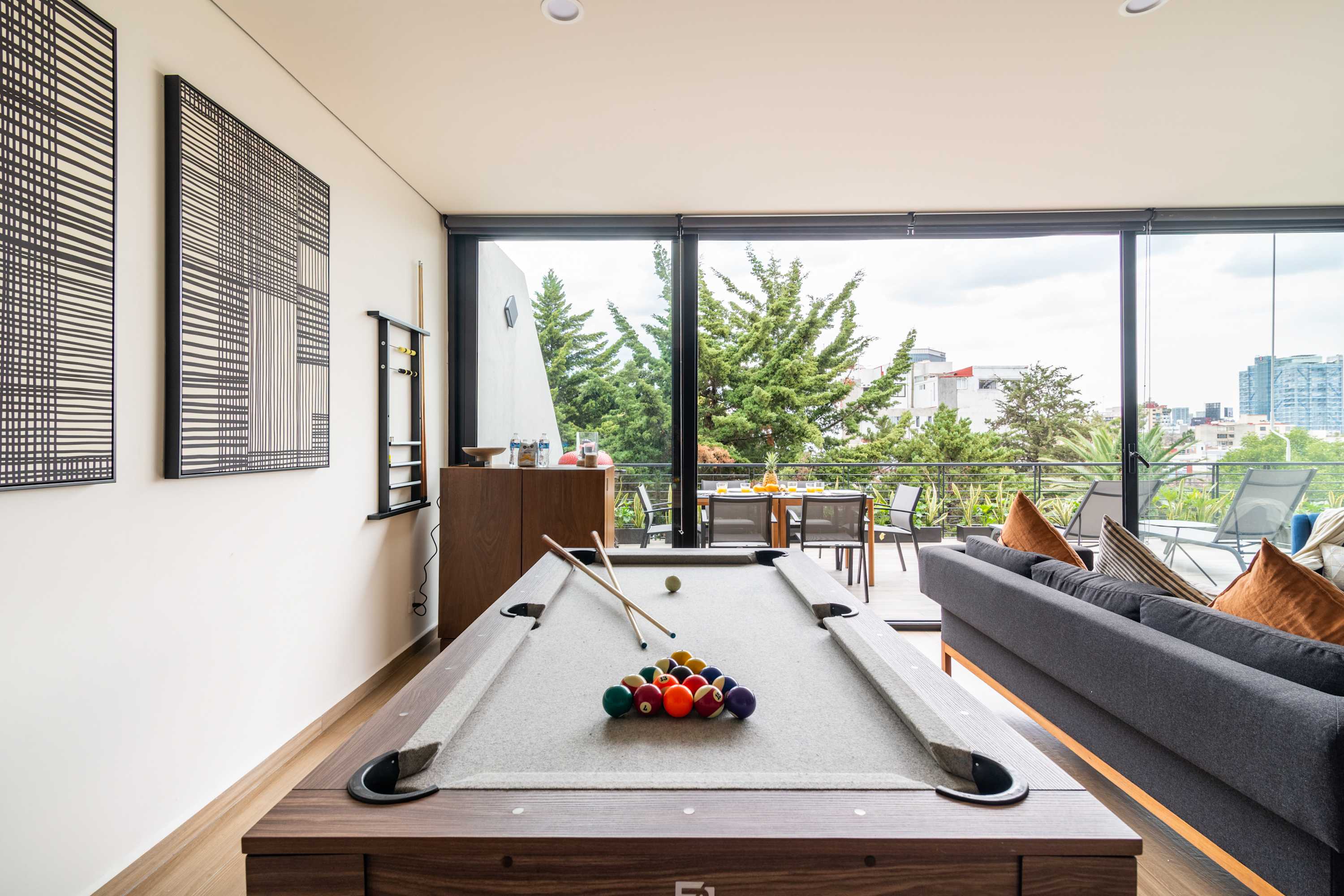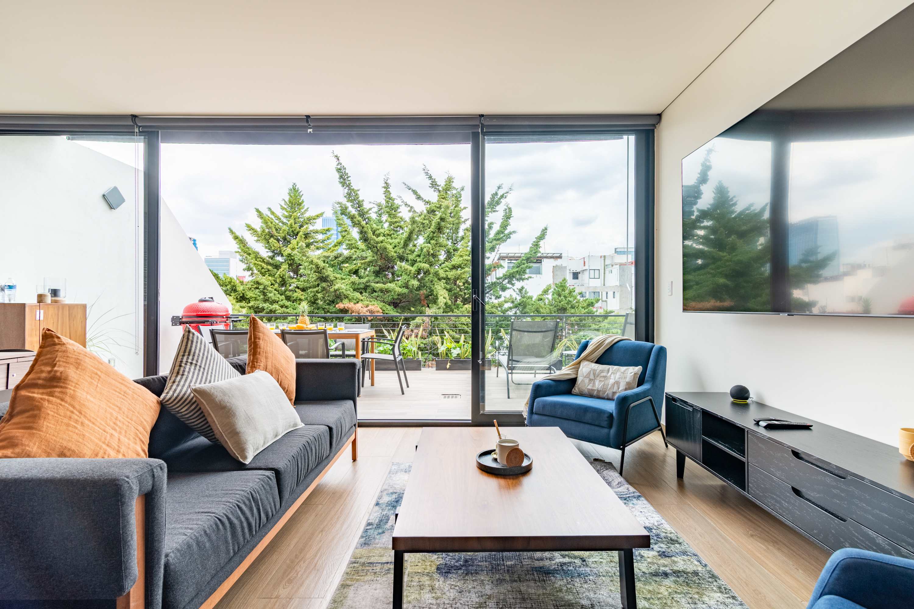 Capitalia Del Valle Dowtown New building just 5 minutes away from the WTC, located in the residential neighbourhood of Del Valle. The buidling has private parking, 24 hour security, elevator and controlled access. There is an equiped gym so you can ...keep in shape during your stay. All of the apartments are new with high speed WIFI, fully equiped kitchen, Smart TV, Alexa, bathroom with Loredana ammenities, and balcony. We are pet friendly so your 4 paw companion can come with you. neighborhood Indulge yourself in a luxury stay living room with Smart TV and Alexa, billiards, fully equipped kitchen, 2 bedrooms and 2 full bathrooms. In the first room you will find a king size bed and a 55 inch Smart tv and ensuite bathroom. In the second room you will find a queen size bed. Djate llevar por una estancia de lujo sala de estar con Smart TV y Alexa, mesa de billar, cocina totalmente equipada, 2 habitaciones y 2 baos completos. En la primera habitacin encontrars una cama king size y un Smart TV de 55 pulgadas, adems de un bao privado. En la segunda habitacin encontrars una cama queen size. access The Capitalia team will always be on the lookout for you and for any doubts you have before, during and after your stay. We will be available for you by phone or message, as well as our security team that are available 24/7. We offer additional services like personal chef, transportation, daily housekeeping. please inquire when you book your stay and we'll be happy to arrange them for you. transit You will be in one of the biggest cities in the world, it can get hectic and messy. We do our best to provide a calm and peaceful stay, however, please consider there may be noise coming from outside. You will stay in a residential building and several neighbours have dogs, you may hear them from time to time.