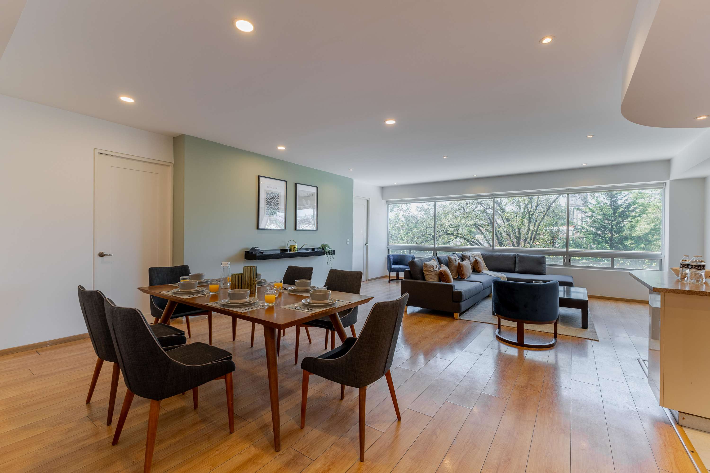 Capitalia - Magna Residencial Residential complex located in Santa Fe, with luxury amenities and a staff that will make sure your stay at Capitalia is safe, comfortable and unforgettable. Our amenities have been renovated for your confort Renovated ...fully furnished 3 bedroom apartment has a half guest bathroom in the living area, dining area with table for 6 pax, fully equipped kitchen with basic kitchen utensils, laundry area with washer and dryer, living room with Smart Tv and pay TV, desk, WIFI, master bedroom has a king size bed, master bathroom with shower, linens and bathroom amenities and walk-in closet. We have a 2nd bedroom with king size bed, closet, bathroom with shower, linens and bathroom amenities, 3rd bedroom has a double bed. Free parking and elevator, 24 hour security. access The Capitalia team will always be on the lookout for you and for anything and/or doubts you have before, during and after your stay. We will be available to you by phone or message, as well as our security team that are available 24/7 , they can support you in your doubts or requirements. neighborhood a day of shopping at the Santa Fe Shopping Center; restaurants for all tastes and budgets, nightlife and bars; supermarkets like Walmart, Chedraui, Sams and Costco; take a family walk in Parque La Mexicana and if you travel with your 4 paw companion the park has an exclusive area for them. If you have a business trip we are a few minutes from the BBVA Convention Center and Expo Santa Fe, the exclusive ABC Hospital, INGENES Institute , Torre PORSCHE. There are also a few universities a few minutes away We are located just a few minutes away from the commercial and corporate area of Santa Fe, moving around will not be a problem. If you come with your own car the residential has parking lot so you won't have to worry about it. To move around the area we recommend using Uber, Cabify, DiDi, beat or regular cab. notes Welcome to Capitalia Living! It is our pleasure to host you, we hope that you have a wonderful stay, if you need something please dont hesitate to ask, there is a complete team at your service. This are our rules please follow them to avoid any penalties! 1. Pets are welcome, any damage caused should be 2. Check in is after 4 PM, you can request early check in upon availability. 3. Check out is at 11 AM, you can request late check out upon availability. 4. Please double check before leaving for any belongings 5. Visitors are allowed with previous and written request. 6. If you are using parking your car will be inspected by the staff 7. The guest should provide ID and sign a contract. 8. Make sure to turn off the lights, air conditioning, and any electronics when you leave the house. Dont forget to close the windows and lock the door. 9. Report any damages and/or breakages in a reasonably timely manner. Damages exceeding the security deposit amount must be paid by guests and will be reported 10. While using common areas on the property please follow the rules. 11. Do not unplug the electronic devices 12. Do not flush hygiene products 13. No loud music or noise after 8 PM. 14. No parties allowed. 15. No Drugs allowed. 16. Smoking is prohibited inside the property 17. Firearms are prohibited PS. Dont forget to follow us at @capitalialiving Capitalia Living Team service@capitalialving.com