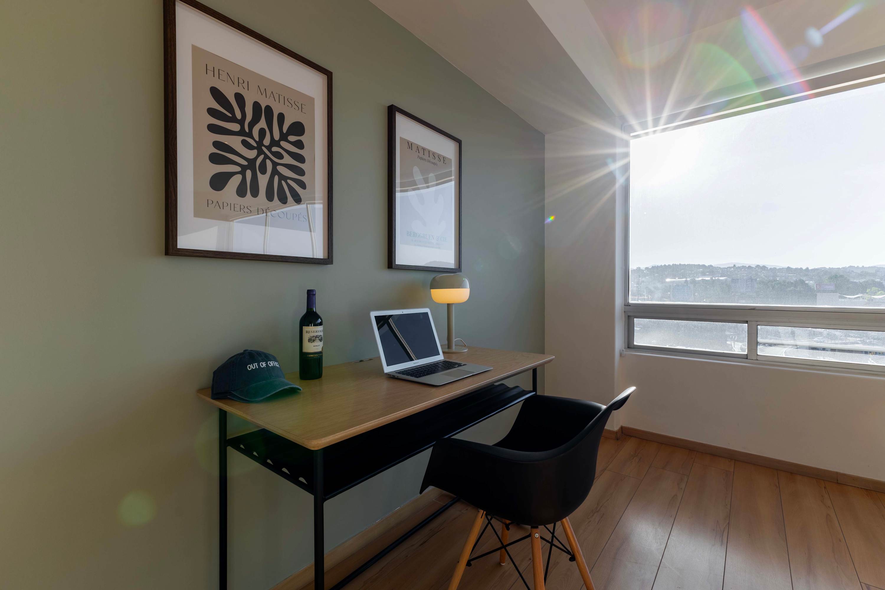 Capitalia - Magna Residencial Residential complex located in Santa Fe, with luxury amenities and a staff that will make sure your stay at Capitalia is safe, comfortable and unforgettable. Our amenities have been renovated for your confort Modern and... elegant fully furnished 2 bedroom apartment with half bath in the living area, dining area with table for 4 people, fully equipped kitchen with basic kitchen utensils, full set of dishes for 4 people, laundry area with washer and dryer, living room with screen and cable TV, desk, WIFI, master bedroom with king size bed, master bathroom with shower, linens and bathroom amenities and walk-in closet. We have a 2nd bedroom with king size bed, closet, bathroom with shower, linens and bathroom amenities. Parking and elevator, 24 hour security. access Located in Santa Fe, one of the most modern and luxurious areas of Mexico City and a city within the city, just a few minutes from the commercial and corporate area. In the surrounding area you will find fun for all ages Universidad IBERO, Tecnolgico de Monterrey, Universidad Anhuac North Campus. transit The Capitalia team will always be on the lookout for anything you need before, during and after your stay. We will be available to you by phone or message and in some cases you can find us at the Administration of the residential, as well our security staff is available 24/7 , they can support you to guide you in your doubts or requirements. notes