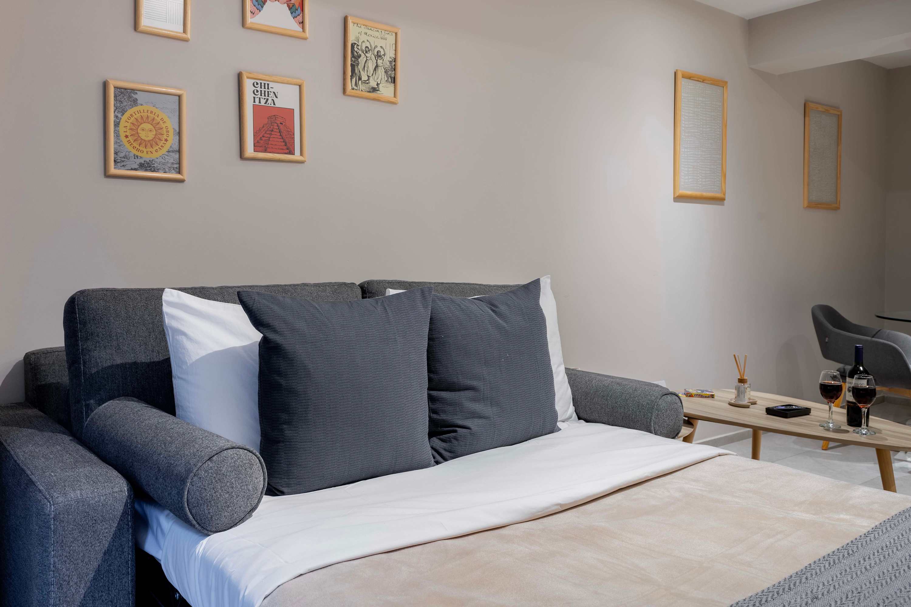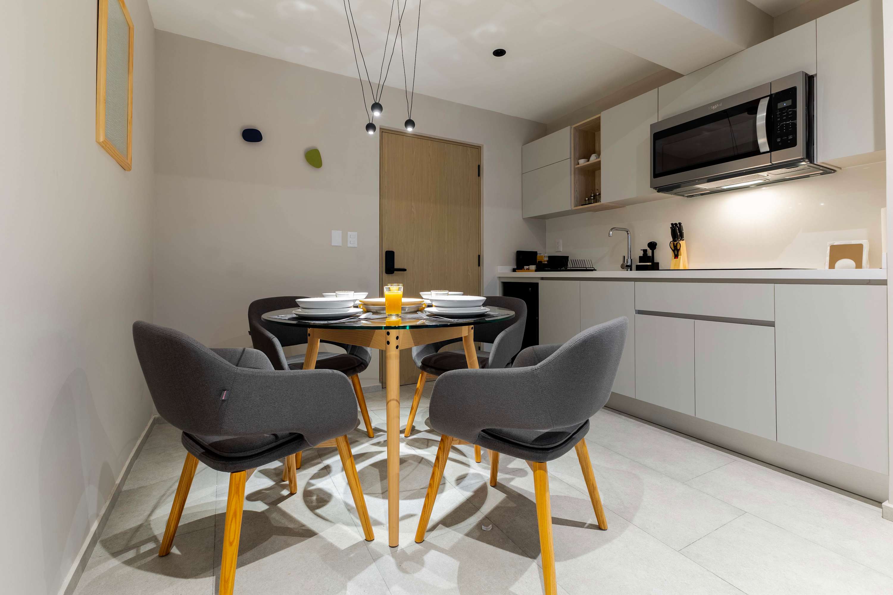 You will be in one of the biggest cities in the world, it can get hectic and messy. We do our best to provide a calm and peaceful stay, however, please consider there may be noise coming from outside. transit Colonia Condesa, located in the heart ...of Mexico City, is renowned for its lively ambiance, picturesque streets, and cultural richness. This trendy neighborhood seamlessly blends historic charm with modern flair, boasting an eclectic mix of cafes, restaurants, boutiques, and art galleries. Its tree-lined avenues provide a tranquil escape from the bustling city, while its vibrant energy captivates visitors and locals alike. With its stunning architecture, vibrant street art, and dynamic atmosphere, La Condesa stands as a vibrant symbol of Mexico City's cultural diversity and creative spirit. access Thoughtfully designed for your enjoyment, this space is bathed in natural light, creating a warm and inviting atmosphere. The bedroom features air conditioning for restful nights, while the versatile living area includes a sofa bed for extra guests or relaxing. Step outside to your private patio, perfect for morning coffee or evening relaxation. Culinary enthusiasts will appreciate the fully equipped kitchen with modern appliances, making meal prep a breeze Your ideal home away from home awaits summary The Capitalia team will always be on the lookout for anything you need before, during and after your stay. We will be available to you by phone or message and in some cases you can find us at the Administration of the residential, as well our security staff is available 24/7, they can support you to guide you in your doubts or requirements. houseRules 00 PM, and Check-out is at 11