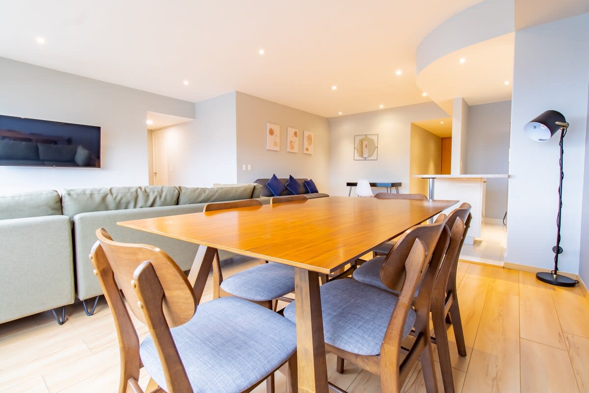 Capitalia - Magna Residencial Residential complex located in Santa Fe, with luxury amenities and a staff that will make sure your stay at Capitalia is safe, comfortable and unforgettable. Our amenities have been renovated for your confort Modern and... elegant fully furnished 2 bedroom apartment with half bath in the living area, dining area with table for 4 people, fully equipped kitchen with basic kitchen utensils, full set of dishes for 4 people, laundry area with washer and dryer, living room with screen and cable TV, desk, WIFI, master bedroom with king size bed, master bathroom with shower, linens and bathroom amenities and walk-in closet. We have a 2nd bedroom with king size bed, closet, bathroom with shower, linens and bathroom amenities. Parking and elevator, 24 hour security. access The Capitalia team will always be on the lookout for anything you need before, during and after your stay. We will be available to you by phone or message and in some cases you can find us at the Administration of the residential, as well our security staff is available 24/7 , they can support you to guide you in your doubts or requirements. neighborhood a day of shopping at the Santa Fe Shopping Center; restaurants for all tastes and budgets, nightlife and bars; supermarkets like Walmart, Chedraui, Sams and Costco; take a family walk in Parque La Mexicana and if you travel with your 4 paw companion the park has an exclusive area for them. If you have a business trip we are a few minutes from the BBVA Convention Center and Expo Santa Fe, the exclusive ABC Hospital, INGENES Institute , Torre PORSCHE. There are also a few universities a few minutes away notes Welcome to Capitalia Living! It is our pleasure to host you, we hope that you have a wonderful stay, if you need something please dont hesitate to ask, there is a complete team at your service. This are our rules please follow them to avoid any penalties! 1. Pets are welcome, any damage caused should be 2. Check in is after 4 PM, you can request early check in upon availability. 3. Check out is at 11 AM, you can request late check out upon availability. 4. Please double check before leaving for any belongings 5. Visitors are allowed with previous and written request. 6. If you are using parking your car will be inspected by the staff 7. The guest should provide ID and sign a contract. 8. Make sure to turn off the lights, air conditioning, and any electronics when you leave the house. Dont forget to close the windows and lock the door. 9. Report any damages and/or breakages in a reasonably timely manner. Damages exceeding the security deposit amount must be paid by guests and will be reported 10. While using common areas on the property please follow the rules. 11. Do not unplug the electronic devices 12. Do not flush hygiene products 13. No loud music or noise after 8 PM. 14. No parties allowed. 15. No Drugs allowed. 16. Smoking is prohibited inside the property 17. Firearms are prohibited PS. Dont forget to follow us at @capitalialiving Capitalia Living Team service@capitalialving.com