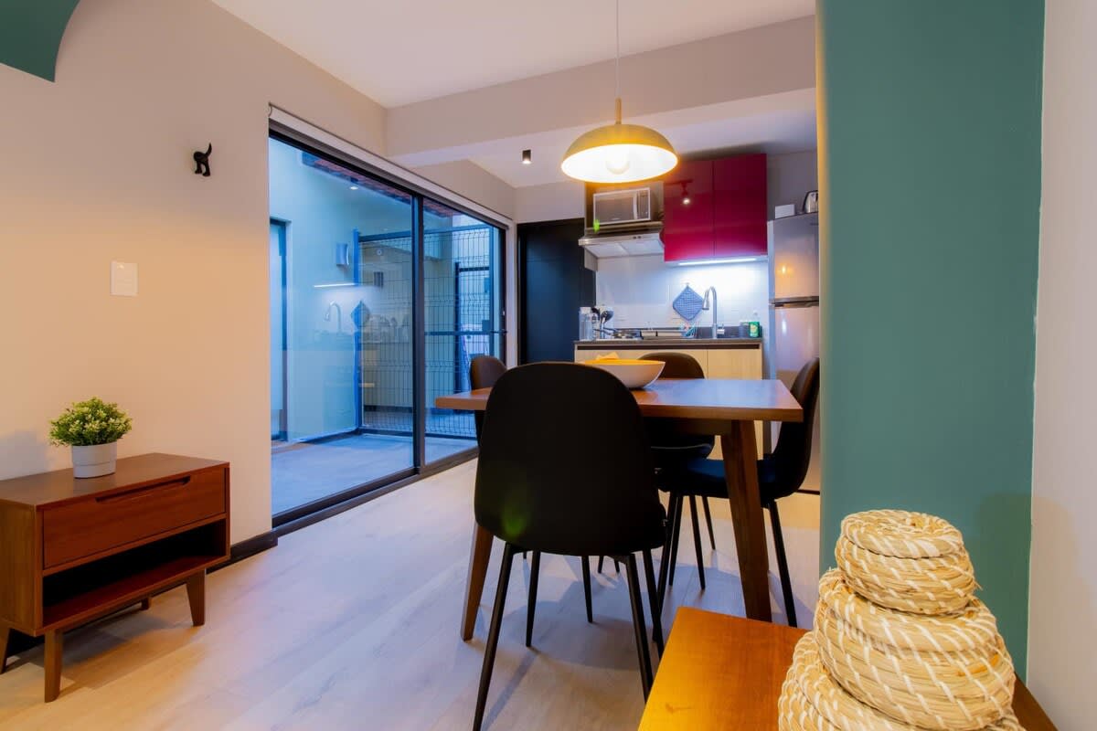 You will be in one of the biggest cities in the world, it can get hectic and messy. We do our best to provide a calm and peaceful stay, however, please consider there may be noise coming from outside. interactionWithGuests Getting Around Mexico Ci...ty The best way to get around Mexico City is via Uber or taxi. Taxis are slightly more expensive, but they are a hassle-free means of getting around. Uber is a safe and more affordable way to navigate the city. You can drive yourself but be aware there is a lot of traffic and you need to be patient. Taxi or Uber Phone ahead for a taxi de sitio (safe taxi) to ensure that you get official and safe transportation around the city. Most hotels and restaurants are happy to call one of the official cars for you, or you could wait at the ""Sitio"" signs and stands located around town. Flagging one down on the street could leave you in the potentially precarious situation of hopping in the back of an unofficial taxi and a driver with maybe questionable intentions. Additionally, Uber operates in Mexico City and is an affordable and safe way to navigate the metropolis. Tourist Bus The red double-decker Turibus provides commentary (available in eight languages) on various popular sights and routes throughout the city. Tours usually last around three hours with approximately 20 stops along the way. For those looking to pack in lots of sightseeing in one day, it's an affordable option (costing about $8 for adults). It runs daily from 9 a.m. to 9 p.m. Car The streets are congested, the routes are baffling, parking is scarce and expensive, plus the rules of the road are hard to understand (particularly since drivers rarely follow them). In some areas, there's also a danger of auto theft. If you do decide to drive, several car rental companies operate out of the Mexico City airport and in several parts of the city. neighborhood Parque Espaa This park is a hub of activity, with a picturesque lake, playgrounds, and a dog-friendly environment. The park is a favorite among locals and visitors alike for jogging, people-watching, and enjoying the eclectic blend of art installations and green spaces. It's a vibrant and inviting place for relaxation and outdoor recreation. Avenida Tamaulipas An arts and cultural center that often hosts exhibitions and events. access This space features a fully equipped kitchen, allowing you to prepare your favorite meals. What's more, enjoy privacy and views from your private terrace Every corner of this apartment has been designed with elegance and style, providing a unique experience in Mexico City. With a spacious bedroom and high-end amenities, your stay will be a true sensory delight. Unwind in the comfort of your temporary home, your experience will be unforgettable in this exceptional apartment. summary Welcome to Capitalia! It is our pleasure to host you. We hope you have an exceptional stay. If you need anything, dont hesitate to reach outour team is fully at your service. These are our house rules. Please follow them to ensure a comfortable experience and avoid penalties. Most importantly, enjoy your stay! Check-in is after 400 AM sharp. Alternative times are subject to availability and may include an additional fee. Parties and loud noise are strictly prohibited at all times. Please respect your neighbors and keep noise to a minimum 24/7. Please treat our staff with respect at all times. Visitors are only permitted with a written request and prior authorization from our reservations team. If youre using parking, your car will be inspected by staff. We are not responsible for damages, theft, or lost valuables. Do not move any furniture or appliances from their original place. Turn off lights, air conditioning, and electronics when not in use, and always close windows and lock the door when leaving. Be respectful when using common areas. Please follow building rules and treat other guests and staff kindly. Do not unplug electronic devices, as this may interfere with essential services or systems. Smoking, drugs, and firearms are strictly prohibited inside the property. Violations may result in penalties of up to $500 USD. No food or drinks on beds or sofas to avoid stains or damage to furniture. Do not flush hygiene products down the toilet. Use the designated trash bins. Please check thoroughly for personal belongings before check-out. We are not responsible for items lost or not placed in the safe. Report any damages, incidents, or maintenance issues immediately so we can address them promptly. Any damages, losses, or extra cleaning needs will be charged to your reservation. Any damage or extra cleaning required due to pets will be charged to your reservation.