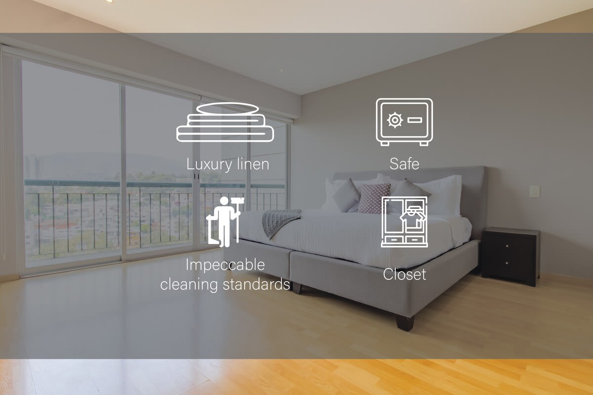 Capitalia - Magna Residencial Residential complex located in Santa Fe, with luxury amenities and a staff that will make sure your stay at Capitalia is safe, comfortable and unforgettable. Our amenities have been renovated for your confort Modern and... elegant fully furnished 1 bedroom apartment features dining area with table for 4 people, fully equipped kitchen with basic kitchen utensils, laundry area with washer and dryer, living room with Smart TV and pay TV, desk, WIFI, master bedroom has King bed, master bathroom with shower, linens and bathroom amenities and walk-in closet. Free parking and elevator, 24 hour security. access The Capitalia team will always be on the lookout for you and for any doubts you have before, during and after your stay. We will be available for you by phone or message, as well as our security team that are available 24/7. We offer additional services like personal chef, transportation, daily housekeeping, and barbecue, please inquire when you book your stay and we'll be happy to arrange them for you. neighborhood a day of shopping at the Santa Fe Shopping Center; restaurants for all tastes and budgets, nightlife and bars; supermarkets like Walmart, Chedraui, Sams and Costco; take a family walk in Parque La Mexicana and if you travel with your 4 paw companion the park has an exclusive area for them. If you have a business trip we are a few minutes from the BBVA Convention Center and Expo Santa Fe, the exclusive ABC Hospital, INGENES Institute , Torre PORSCHE. There are also a few universities a few minutes away Getting around Santa Fe The best way to move around Santa Fe is by car or Uber. notes Welcome to Capitalia Living! It is our pleasure to host you, we hope that you have a wonderful stay, if you need something please dont hesitate to ask, there is a complete team at your service. This are our rules please follow them to avoid any penalties! 1. Pets are welcome, any damage caused should be 2. Check in is after 4 PM, you can request early check in upon availability. 3. Check out is at 11 AM, you can request late check out upon availability. 4. Please double check before leaving for any belongings 5. Visitors are allowed with previous and written request. 6. If you are using parking your car will be inspected by the staff 7. The guest should provide ID and sign a contract. 8. Make sure to turn off the lights, air conditioning, and any electronics when you leave the house. Dont forget to close the windows and lock the door. 9. Report any damages and/or breakages in a reasonably timely manner. Damages exceeding the security deposit amount must be paid by guests and will be reported 10. While using common areas on the property please follow the rules. 11. Do not unplug the electronic devices 12. Do not flush hygiene products 13. No loud music or noise after 8 PM. 14. No parties allowed. 15. No Drugs allowed. 16. Smoking is prohibited inside the property 17. Firearms are prohibited PS. Dont forget to follow us at @capitalialiving Capitalia Living Team service@capitalialving.com