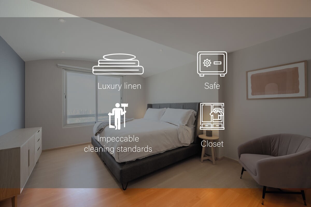 Welcome to Capitalia! It is our pleasure to host you. We hope you have an exceptional stay. If you need anything, don’t hesitate to reach out—our team is fully at your service. These are our house rules. Please follow them to ensure a comfortable experience and avoid penalties. Most importantly, enjoy your stay! Check-in is after 4:00 PM, and Check-out is at 11:00 AM sharp. Alternative times are subject to availability and may include an additional fee. Parties and loud noise are strictly prohibited at all times. Please respect your neighbors and keep noise to a minimum 24/7. Please treat our staff with respect at all times. Visitors are only permitted with a written request and prior authorization from our reservations team. If you’re using parking, your car will be inspected by staff. We are not responsible for damages, theft, or lost valuables. Do not move any furniture or appliances from their original place. Turn off lights, air conditioning, and electronics when not in use, and always close windows and lock the door when leaving. Be respectful when using common areas. Please follow building rules and treat other guests and staff kindly. Do not unplug electronic devices, as this may interfere with essential services or systems. Smoking, drugs, and firearms are strictly prohibited inside the property. Violations may result in penalties of up to $500 USD. No food or drinks on beds or sofas to avoid stains or damage to furniture. Do not flush hygiene products down the toilet. Use the designated trash bins. Please check thoroughly for personal belongings before check-out. We are not responsible for items lost or not placed in the safe. Report any damages, incidents, or maintenance issues immediately so we can address them promptly. Any damages, losses, or extra cleaning needs will be charged to your reservation. Any damage or extra cleaning required due to pets will be charged to your reservation.