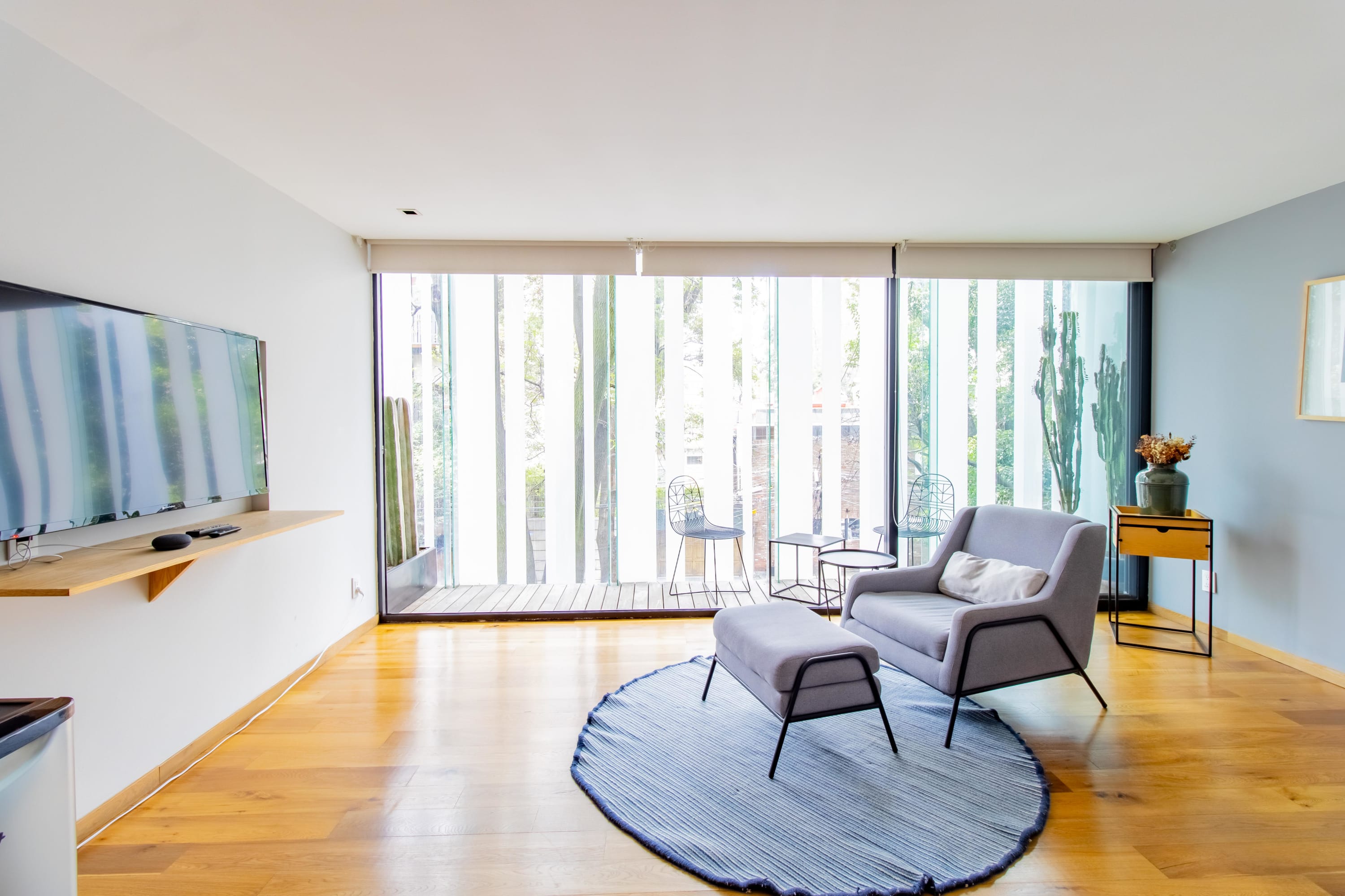This cozy studio is perfect for those seeking a luxurious stay in the best area of the city. Here you will find a cleverly designed space that combines the workspace and bedroom into a single environment, equipped with a spacious desk and an ergonom...ic chair, providing the perfect setting for those who need to work or study during their stay. From the balcony, you can enjoy a lovely view of the surroundings. The studio also includes a private bathroom with all toiletries for your convenience. space When you book with us, we offer you an exceptional experience. Our goal is to ensure that you enjoy a comfortable and pleasant stay in one of the most prominent locations in Polanco. For those who need to stay connected, we provide high-speed internet access. Whether you're working on important projects or need to engage in online studies, we've got you covered. Your safety and peace of mind are our top priority, which is why our building has 24/7 security and a front desk. You can always reach out to our team, Capitalia, at any time through messages. We'll be delighted to assist you with anything you need. neighborhood Louis Vuitton, Cartier, Chanel, Salvatore Ferragamo, Tiffany and Co., DKNY, Ermenegildo Zegna, Burberry, Bulgari, Chopard, Gucci, Herms, Frette, Marc Jacobs, Max Mara, Hugo Boss, Rolex, Jaeger Le Coultre, and more. Department stores Antara Fashion Hall, Plaza Carso, Galeras Polanco, Centro Comercial Polanco. Supermarkets Cinemex and Cinepolis complexes are nearby. transit You will be in one of the biggest cities in the world, it can get hectic and messy. We do our best to provide a calm and peaceful stay, however, please consider there may be noise coming from outside. interactionWithGuests Welcome to Capitalia! It is our pleasure to host you. We hope you have an exceptional stay. If you need anything, dont hesitate to reach outour team is fully at your service. These are our house rules. Please follow them to ensure a comfortable experience and avoid penalties. Most importantly, enjoy your stay! Check-in is after 400 AM sharp. Alternative times are subject to availability and may include an additional fee. Parties and loud noise are strictly prohibited at all times. Please respect your neighbors and keep noise to a minimum 24/7. Please treat our staff with respect at all times. Visitors are only permitted with a written request and prior authorization from our reservations team. If youre using parking, your car will be inspected by staff. We are not responsible for damages, theft, or lost valuables. Do not move any furniture or appliances from their original place. Turn off lights, air conditioning, and electronics when not in use, and always close windows and lock the door when leaving. Be respectful when using common areas. Please follow building rules and treat other guests and staff kindly. Do not unplug electronic devices, as this may interfere with essential services or systems. Smoking, drugs, and firearms are strictly prohibited inside the property. Violations may result in penalties of up to $500 USD. No food or drinks on beds or sofas to avoid stains or damage to furniture. Do not flush hygiene products down the toilet. Use the designated trash bins. Please check thoroughly for personal belongings before check-out. We are not responsible for items lost or not placed in the safe. Report any damages, incidents, or maintenance issues immediately so we can address them promptly. Any damages, losses, or extra cleaning needs will be charged to your reservation. Any damage or extra cleaning required due to pets will be charged to your reservation.