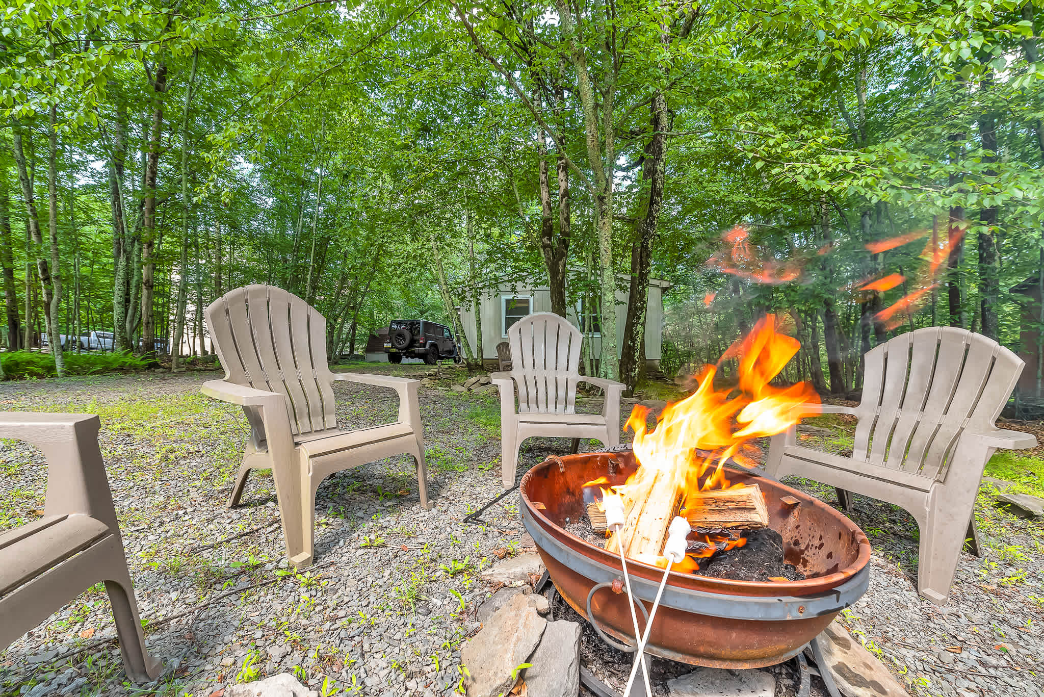 Masthope retreat with 3 bedrooms, air conditioning, fireplace, firepit - all high end. Pet Friendly. Fully stocked. space Outdoor pools (depth 6), water slides, diving board, splash pad, wading pool, ski lift, fitness center, game room, beach, pa...rk, river access, lake access, stables, petting zoo, basketball/tennis/sand volleyball/racquetball/handball/bocce ball/shuffleboard courts, playgrounds, mini golf, restaurants, grills, dining areas, cornhole, horseshoes, canoe/kayak/paddleboat rentals $10 per day per guests 2 years old and up For outdoor enthusiasts, activities like horseback riding, hiking, biking, tennis, and ATV riding trails provide plenty of opportunities to explore the natural beauty of the Pocono Mountains. Bedroom 1 Queen Bed Bedroom 3 Double and Twin MASTHOPE COMMUNITY Masthope Mountain Community provides year round activities! When booking, amenity badges are $10/person/day if you would like to enjoy the year round activities! Resort Amenities Motorized Lake Westcolang is just 5 minutes away Motorized Lake Wallenpaupack is approximately 10 miles away The renowned Woodloch Resort and Golf Course is a mere 5 miles away HOUSE RULES Please note there are neighbors around the house and sound travels far. We are trying to create a serene getaway for our guests as well as be respectful to our neighbors. So we ask that outside noise be kept to reasonable levels. To ensure this environment we have outdoor noise monitors. Please note we have a minimum age requirement of 25 years old. We require the majority of guests to be above 25 years old, with the exception of families with children. Parking limited to 5 cars, NO RVs. Well behaved dogs allowed on a case-by-case basis for an additional $75 per pet fee. AirBnb only collects pet fees for the first pet, additional approved dogs will be an additional $75/pet charged post booking. 8 Guests Max, regardless of age We aim to set the standard for short-term rental experiences. We will proactively notify you when early check-in and/or late check-out are possible. Grocery Shopping - You can now use the Rosie app to order grocery delivery from the local Lake Region IGA in Hawley, PA access Guests let themselves into the house via a Smart Lock and have no interaction with the owner. Owner available via email/text/call for any questions during their stay. notes -Linens (sheets and towels) -Garbage Bags -Shampoo, Conditioner, Body Wash -Hand Soap -New dishwashing sponge -1 roll of paper towels -Toilet Paper -Dishwasher Soap -Pots, Pans, Glasses, Silverware, plates (more info in Guest book) What you may need -Additional rolls of paper towels -Firewood and starting supplies houseRules transit
