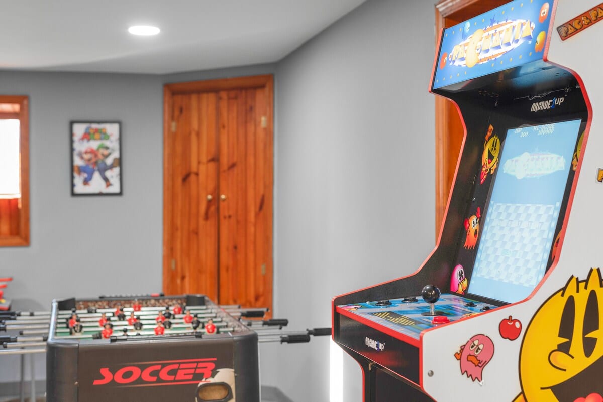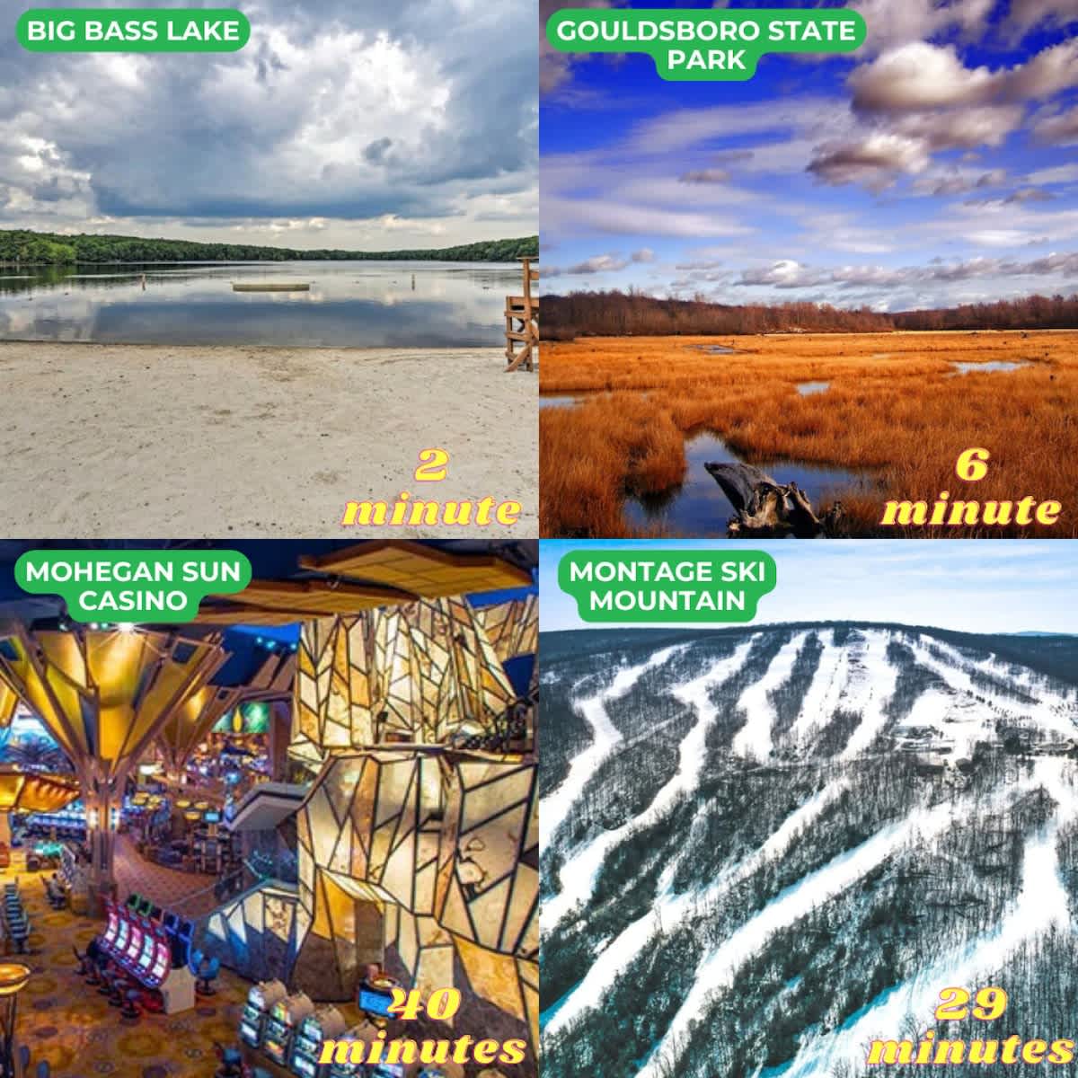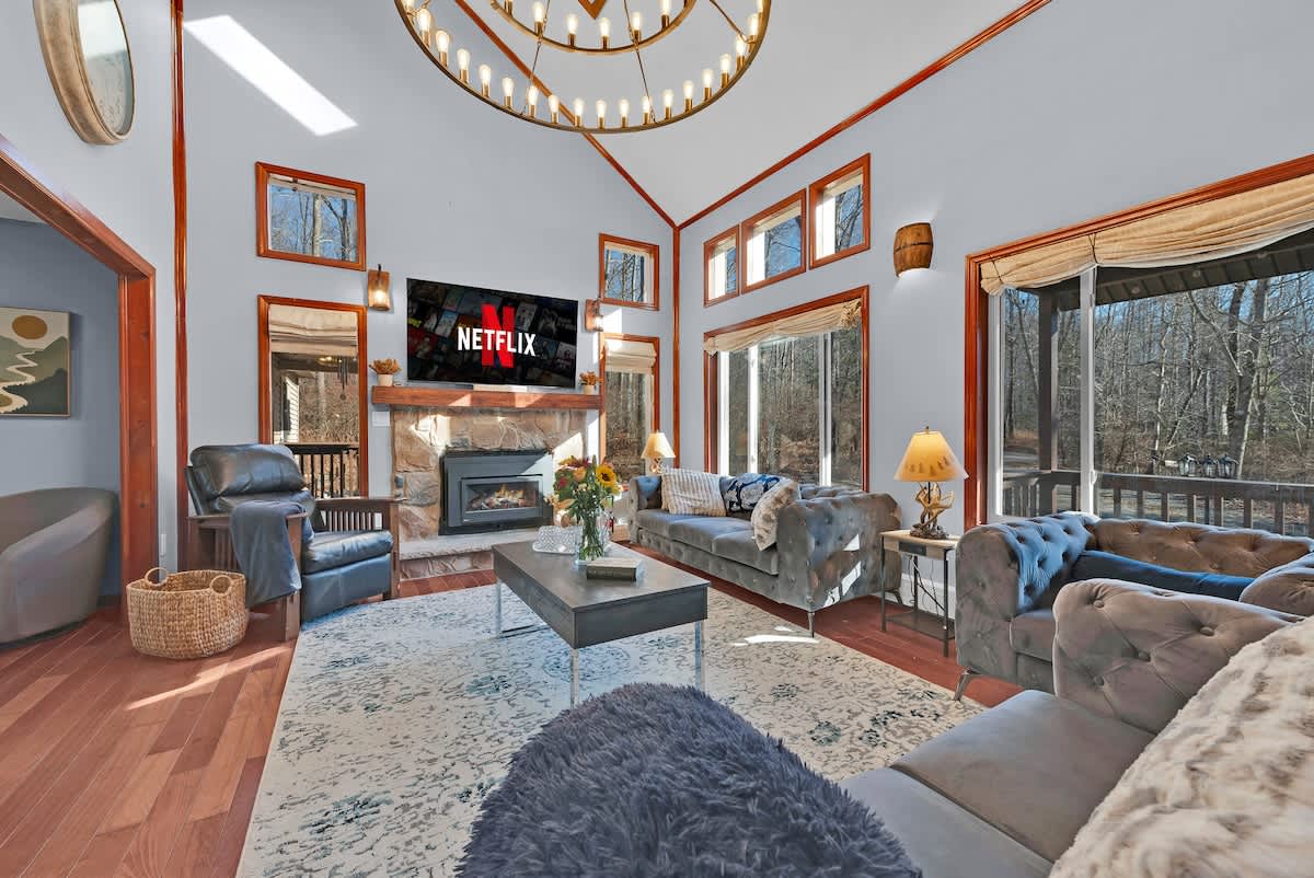 Escape to Big Bass Hideaway, a spacious 4-bedroom retreat perfect for families. - Hot tub, sauna, and movie theater - Game room with arcade and pool table - Granite kitchen and outdoor grilling space - Access to community beaches and hiking ... - All-inclusive linens and essentials provided - Tesla car charger available - Maximum of 12 guests total, regardless of age We aim to set the standard for short-term rental experiences. space - 4 Bedrooms - 3.5 Baths - 6 beds total - Master Bedroom #1 1 Queen Bed, Full Ensuite Bathroom - Bedroom #3 1 Queen, 2 Twins - Queen air mattress included Interior Feeling - Spacious deck for grilling and dining - Hot tub for relaxation - Outdoor grill for cooking - Parking for up to 6 cars; no RVs allowed Delightful Dining - Meticulously cleaned with hotel-quality linens and essentials provided - All-inclusive linens at no additional charge Big Bass Community - Minimum age requirement of 25 years old - Majority of guests must be above 25, except families with children - Outdoor noise must be kept to reasonable levels - No pets allowed - Maximum of 12 guests total, regardless of age We aim to set the standard for short-term rental experiences. We will proactively notify you when early check-in and/or late check-out are possible. access Guests let themselves in via a Smart Lock and have no owner interaction (but we are always available via a text or call!) houseRules transit House Rules