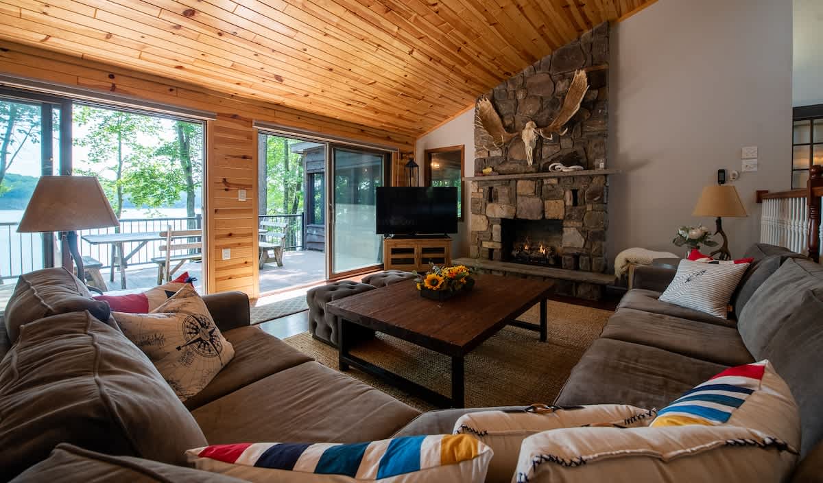 Welcome to Red Canoe Retreat, your lakeside getaway nestled in the amenity-rich Big Bass community. This fully appointed home offers a blend of luxury and comfort for your family gatherings. With its 4 bedrooms, 2 bathrooms, and high-end furnishings..., the Retreat caters to your every need. Spend your days enjoying the serene waters with a private boat dock, complete with kayaks and canoes. Explore nearby state parks or simply relax in the 7-person hot tub while the kids play foosball. space Private Boat Dock LAKEFRONT 8 beds 2 full baths HOT TUB Fooseball 4 Wifi TVs High-end furnishings Meticulously Cleaned and Linens provided! Our lakefront home is recently renovated, light-drenched, and focuses on quality materials and high-end finishes. The home offers an open floor plan, 2 separate floors to entertain on, and 3 large, distinct outdoor spaces. The main floor includes an open-kitchen with granite countertops, hardwood floors, and stainless steel appliances. Our large windows allow you to look out onto the lake while cooking your favorite meal or relaxing in the living room and watching TV by the gas fireplace. From the main floor you can access both outdoor spaces - an elevated large deck with BBQ grill and a screened in patio! Downstairs relax and unwind on the couches with the large TV and Fooseball table. Walk out from downstairs onto the large deck with 7-person hot tub. Per HOA rules, 12 guests total, regardless of age. DOCK Included in your stay is exclusive use of the dock, 2 kayaks, 1 canoe, and 1 pedal boat! HIGH-END AMENITIES The Retreat comes equipped with 3 WiFi connected LED Smart TVs - inclusive of a YouTube TV account for sports, movies, and more. Along with 8 beds, which offers enough sleeping space for 12 guests. Guests have full use of the washer and dryer, Outdoor Grill, and blazing fast 250 Mgbs WiFi. With our WiFi mesh network, guests can work wirelessly and seamlessly anywhere in the house or out on deck that provides elevated outdoor space. High-end amenities to enhance your stay include Keurig and Drip Coffee maker, outdoor fire pit, and more! The Retreat screams privacy, while offering private lakefront access! Our driveway allows for parking of up to 5 cars. Enjoy the 3 sided Arcade machine in the basement with over 1,000 classic games - including ALL INCLUSIVE - LINENS We provide hotel-quality towels, sheets, pillows and basic necessities at no additional charge. We aim to keep a lightly stocked kitchen with, coffee, salt/pepper, and a handful of different seasonings. High Chair and Pack N Play Included BEDROOM - LAYOUT Master Bedroom #1 (Main Floor) 1 Queen Bed Bedroom #3 (Downstairs) 4 Twin Beds BIG BASS COMMUNITY Electric or non-motorized boats allowed on Big Bass Lake, Beaches, Fishing, Outdoor pool, Tennis Courts, Splash Pad, Hiking Trails, Clubhouse with American Grill, Fitness Center, Sledding/Tubing Hill, and Ice Skating More info at Big Bass Lake Community Association Website We cover the Association general fee, however the association will charge you to obtain an amenity pass. For anyone age 7 and above the pass is $8-$10/day/person. Please note that this property is located in a community that requires guest registration. To meet this requirement, all required documentation must be submitted no later than 3 days before check-in. If the documentation is not provided on time, a $100 late fee will be charged to the guests. HOUSE RULES Big Bass Lake restricts rentals to family use only, we do not rent out to groups or parties. Groups or parties will be turned away at gate check-in, with no refund. Please note there are neighbors around the house and sound travels far. We are trying to create a serene getaway for our guests as well as be respectful to our neighbors. So we ask that outside noise be kept to reasonable levels. To ensure this environment we have outdoor noise monitors. Well behaved dogs under 15lbs allowed on a case-by-case basis for an additional $75 per pet fee. AirBnb only collects pet fees for the first pet, additional approved dogs will be an additional $75/pet charged post booking. Please note we have a minimum age requirement of 25 years old. We require the majority of guests to be above 25 years old, with the exception of families with children. Please note guests must fill out a rental permit with the association 5 days prior to arrival. A link will be provided post booking. Parking limited to 5 cars, NO RVs. Maximum of 12 guests total, regardless of age. We aim to set the standard for short-term rental experiences. We will proactively notify you when early check-in and/or late check-out are possible. access Guests let themselves in via a Smart Lock and have no owner interaction (but we are always available via a text or call!) houseRules transit