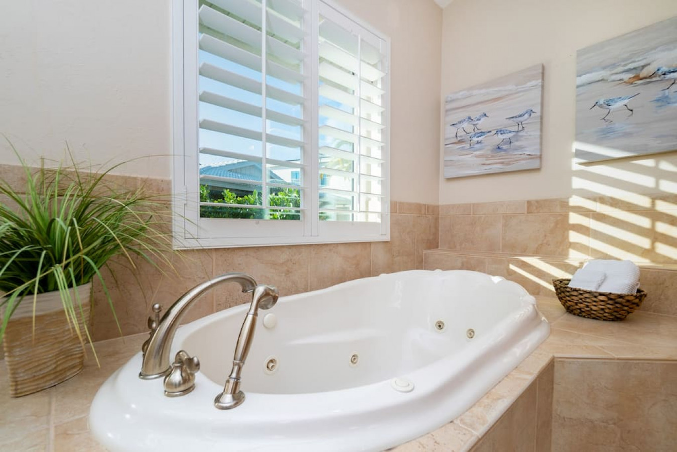 Experience the epitome of relaxation at Villa Hibiscus, a Tommy Bahama-themed oasis nestled along the water's edge in beautiful Punta Gorda. The villa is an ode to luxury, designed around a captivating, heated saltwater pool that promises memorable s...unsets. Culinary enthusiasts can relish the experience of cooking at home in a fully equipped modern kitchen. Immerse yourself in comfort with top-tier linens, furnishings, and décor that define the essence of Punta Gorda. A first-floor master bedroom suite with direct access to the pool is an additional luxury. The upstairs queen-sized bed guest room and a room with 2 twins (at your request, we can place an insert between the beds and convert it to a California King king-size bed) share a full-sized bathroom. All bedrooms have a chaise lounge chair that can be converted to a twin bed. In addition, the large chaise sofa in the living room can accommodate another guest. The house comfortably sleeps 10 adults. Kindly seek prior permission before hosting additional visitors. The guests of Villa Hibiscus have access to the entire property and beautiful landscaping with palm and hibiscus trees. All amenities are provided free of charge. Revel in the spa-like atmosphere with a private dock, boat lift, and pool. (Please note the boat lift is not available at this time.) Enjoy the screened-in lanai with a convenient propane grill, perfect for outdoor gatherings. For those seeking adventure, we provide 2 kayaks, 3 beach bikes, as well as an array of beach gear, or there is easy access to a nearby marina for boat rentals. Set sail to the Peace River within a mere 10 minutes by boat or take a 15-minute stroll along the walking trail to Fishermen's Village for various dining and shopping options. Villa Hibiscus is easily accessible by car and conveniently situated near airports, essential amenities, and a charming local beach – all contributing to a seamless vacation experience. As a thoughtful gesture, a chilled bottle of sparkling wine awaits in the refrigerator for your enjoyment. Please let us know in advance if you wish otherwise. Upon confirming your reservation, you will receive a comprehensive digital guidebook offering insights into the villa, local attractions, and an array of exceptional restaurants and bars that Punta Gorda offers. _____________________ Important: Before you arrive you will be asked to complete guest verification through third-party provider Truvi. You will also be given the choice between a security deposit or a non-refundable damage waiver ($35). This is done to ensure we are keeping up-to-date with short-term rental regulations as well as providing both our guests and our properties with extra protection. Truvi will contact you via email and/or text to complete the verification. Please do so prior to arriving at the property to enable a quick and easy check-in process. BTR# 34031