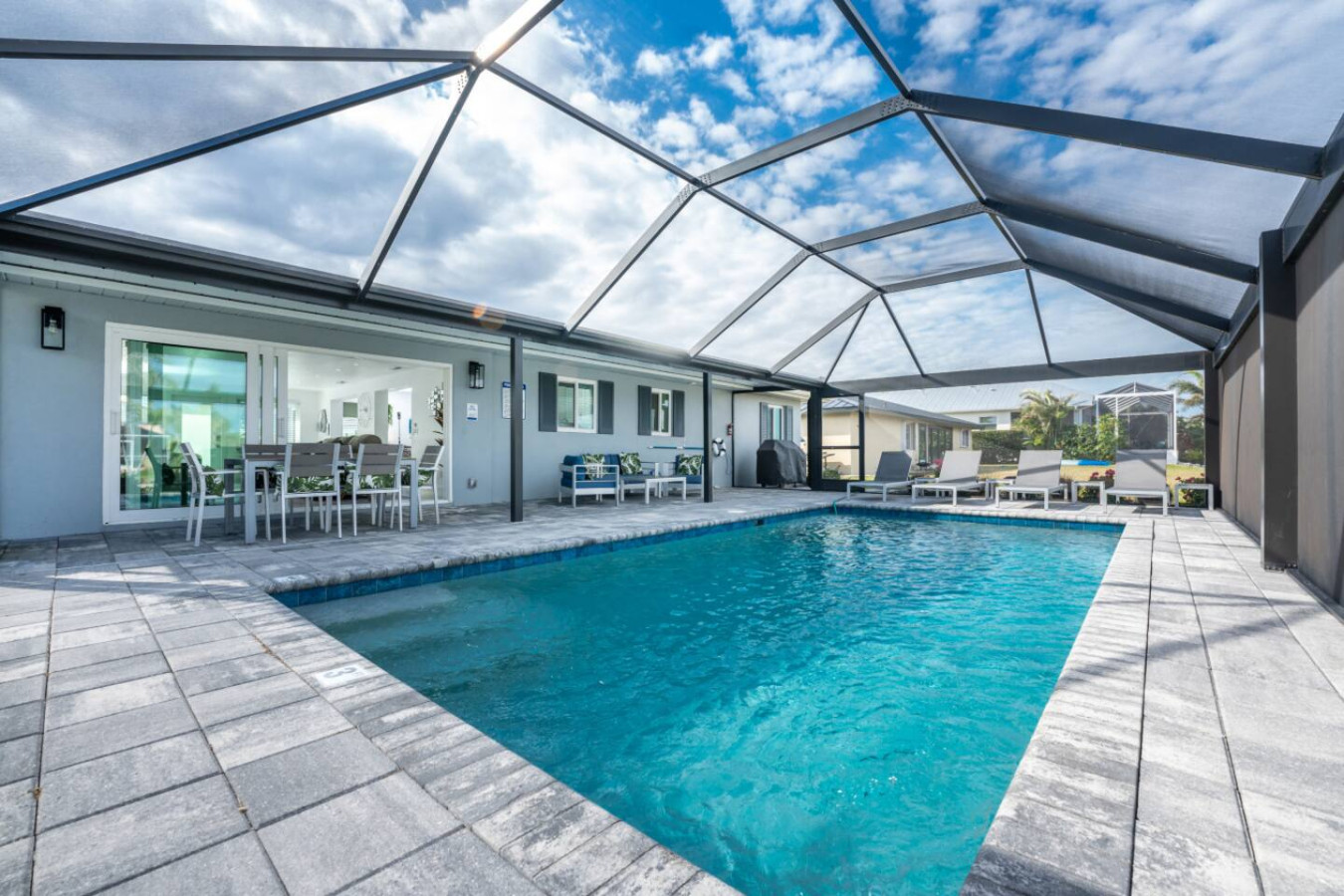 Discover Villa Capri: a recently renovated 3-bedroom, 2-bath canal front villa with a spacious layout, stunning views, private dock, heated saltwater pool, and lanai, it is the perfect place to relax and unwind with your loved ones. A 30-minute walk,... or 10-minute bike ride (bikes included!) will bring you to Fishermen's Village for casual or fine dining and shopping. Villa Capri is easy to drive to, with nearby airports, amenities, and a local beach. This beautifully appointed ranch-style home has contemporary décor and stainless appliances. Enjoy a fully equipped gourmet kitchen, luxurious bathrooms, and comfy beds with beautiful bedding and linens. This home comfortably sleeps 8 guests with 2 king beds, 1 queen, and a sofa-bed. Kindly seek prior permission before hosting additional visitors. Relax in a comfortable chaise lounge by the pool and enjoy a cocktail while looking at the sunrise or sunset. Outdoor enthusiasts can enjoy the use of 4 adult bikes with helmets and bike locks. Two kayaks, life jackets, fishing rods, and beach chairs are also available for a well-rounded experience. For relaxation indoors, indulge in premium satellite TV. The villa caters to your needs with basic amenities as well, such as plastic ware for poolside convenience, an array of books and games for all ages, a Pack 'n Play, highchair, safety monitor, and a baby bathtub. The villa prioritizes security with a child safety fence and a pool safety alarm system, ensuring peace of mind. All amenities are provided free of charge. As a thoughtful gesture, a chilled bottle of sparkling wine awaits in the refrigerator for your enjoyment. If you wish, please let us know in advance for seamless accommodations. The CDC Guidelines are used to clean the property. Upon confirming your reservation, a comprehensive digital guidebook will be at your fingertips, replete with a home guide, local attractions, and stellar recommendations for nearby restaurants and bars in the heart of Punta Gorda. Early/Late Check-In/Out is accommodated whenever possible, based on availability. Associated fees are as follows: Early Check-In 8am-12pm: $250 Early Check-In 12pm-4pm: $150 Late Check-Out Before 12pm: $150 Late Check-Out 12pm-5pm: $250 (plus applicable taxes) Please note that there are no recording devices within the interior of the home, nor the back deck, patio, or dock area. A Ring Doorbell is positioned at the front entrance and actively captures both audio and visual information. This property is cleaned in accordance with CDC guidelines. Pets may be allowed with prior approval and payment of the $250 +tax per pet fee - please inquire before booking. BTR # 35939 Important: Before you arrive you will be asked to complete guest verification through third-party provider Truvi. You will also be given the choice between a security deposit or a non-refundable damage waiver ($35). This is done to ensure we are keeping up-to-date with short-term rental regulations as well as providing both our guests and our properties with extra protection. Truvi will contact you via email and/or text to complete the verification. Please do so prior to arriving at the property to enable a quick and easy check-in process.