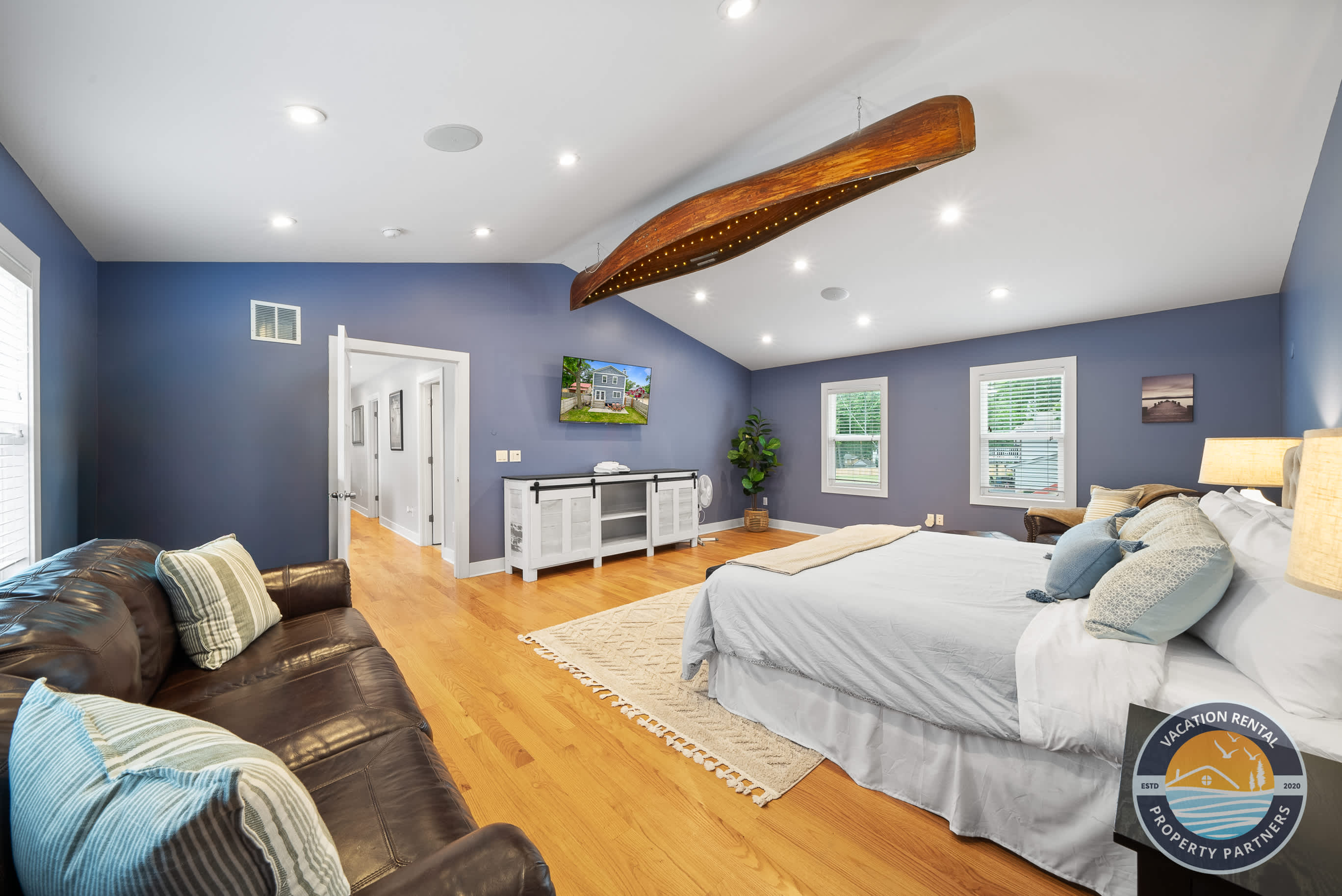 Experience lakeside comfort in this spacious 5-bedroom retreat. - Just a short walk from Delavan Lake - Smart TVs in every room for entertainment - Fully equipped kitchen and bright dining area - Cozy living room with fireplace - Fenced ba...ckyard with fire pit and BBQ grill - Perfect for group trips, sleeps 12 Your group will feel right at home in this bright, spacious, and fully stocked retreat designed for comfort and fun. space - 5 bedrooms with cozy beds and Smart TVs - Bedroom 1 Queen bed - Bedroom 3 Queen bed - Bedroom 5 - Fully equipped kitchen with stainless steel appliances - Large island with bar seating for 5 - Bright dining area perfect for big meals or card games Interior Feeling - Fenced backyard for peace of mind - Fire pit with seating for smores and stargazing - Built-in BBQ grill and blackstone for easy cookouts - Patio dining under the umbrella, ideal for summer evenings Bathrooms Entire home and backyard Guest will not have access to garage or basement. Self check-in via Smart Lock High-speed Wi-Fi throughout Kitchen and laundry access for extended stays neighborhood boating, paddleboarding, fishing, and swimming Lake Geneva (15 min) Charming downtown, boat cruises, boutique shopping, and fine dining Alpine Valley Music Theatre and Ski Resort (25 min) Catch a summer concert or plan a winter ski trip just a short drive away The Belfry Music Theatre (10 min) Intimate local performances in a unique and historic venue Dining and Drinks (510 min) From classic Wisconsin supper clubs to craft breweries and lakeside cafes Downtown Delavan (57 min) Great for exploring local shops, antique stores, and seasonal farmers markets interactionWithGuests On-site parking in the driveway Great for biking and walking Golf cartfriendly neighborhood Uber and Lyft available for quick trips into town notes Wildflowers, hiking trails, and springtime concerts Summer Apple picking, scenic drives, and Alpine Valley color tours Winter