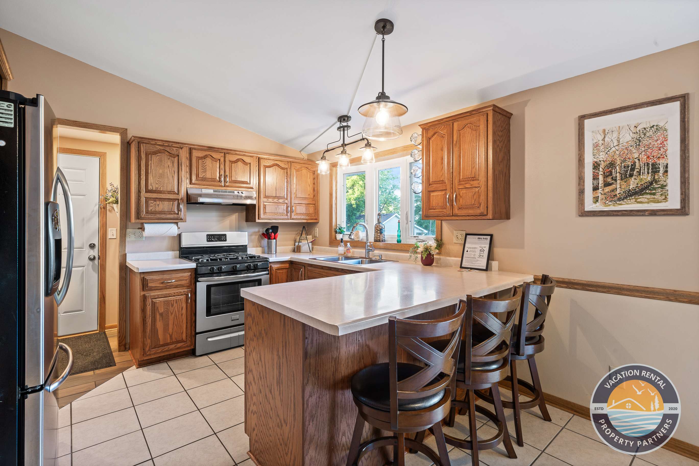 Welcome to Maple House, your perfect spring and summer retreat just minutes from Lake Geneva! - Beautifully remodeled home for relaxation and fun - Accommodates up to 10 guests with 4 bedrooms - Modern kitchen with coffee bar - Spacious pati...o for BBQs and stargazing - Family-friendly game room with ping pong and air hockey - Dedicated workspace and wireless internet - Maple House is your perfect getaway! space - 4 well-appointed bedrooms - 1 King bed and 1 Queen bed offering luxurious comfort - 3 Twin beds perfect for kids or extra guests - Sleeper sofa and inflatable bed for added flexibility - Room-darkening shades, extra pillows, and blankets ensure a restful nights sleep Interior Feeling - Spacious patio for family BBQs and stargazing - Fire pit for evening relaxation - Perfect space for creating memories Delightful Dining - Two stylish bathrooms stocked with shampoo and a hairdryer - Hot water for a spa-like experience Entertainment Hub - Ping pong table - Air hockey - Dartboard - Fun for all ages, rain or shine! Stay Connected and Comfortable Guests have full access to the home with a private entrance and smart lock for seamless check-in. Ample parking in the spacious driveway Expansive backyard and patio with seating and BBQ Exclusive access to the private Lake Como Association Beach with provided parking passes neighborhood Free parking on-site for easy travel Explore the area by bike or on foot Golf cart rentalfriendly neighborhood Rideshare services (Uber/Lyft) available for quick trips to downtown Lake Geneva notes No smoking | No pets | No parties Hassle Free Check-in and check-out, because we believe in a relaxed vacation. With picturesque Lake Geneva just minutes away and the warmth of Maple House awaiting your return, we look forward to being part of your unforgettable Wisconsin getaway. interactionWithGuests