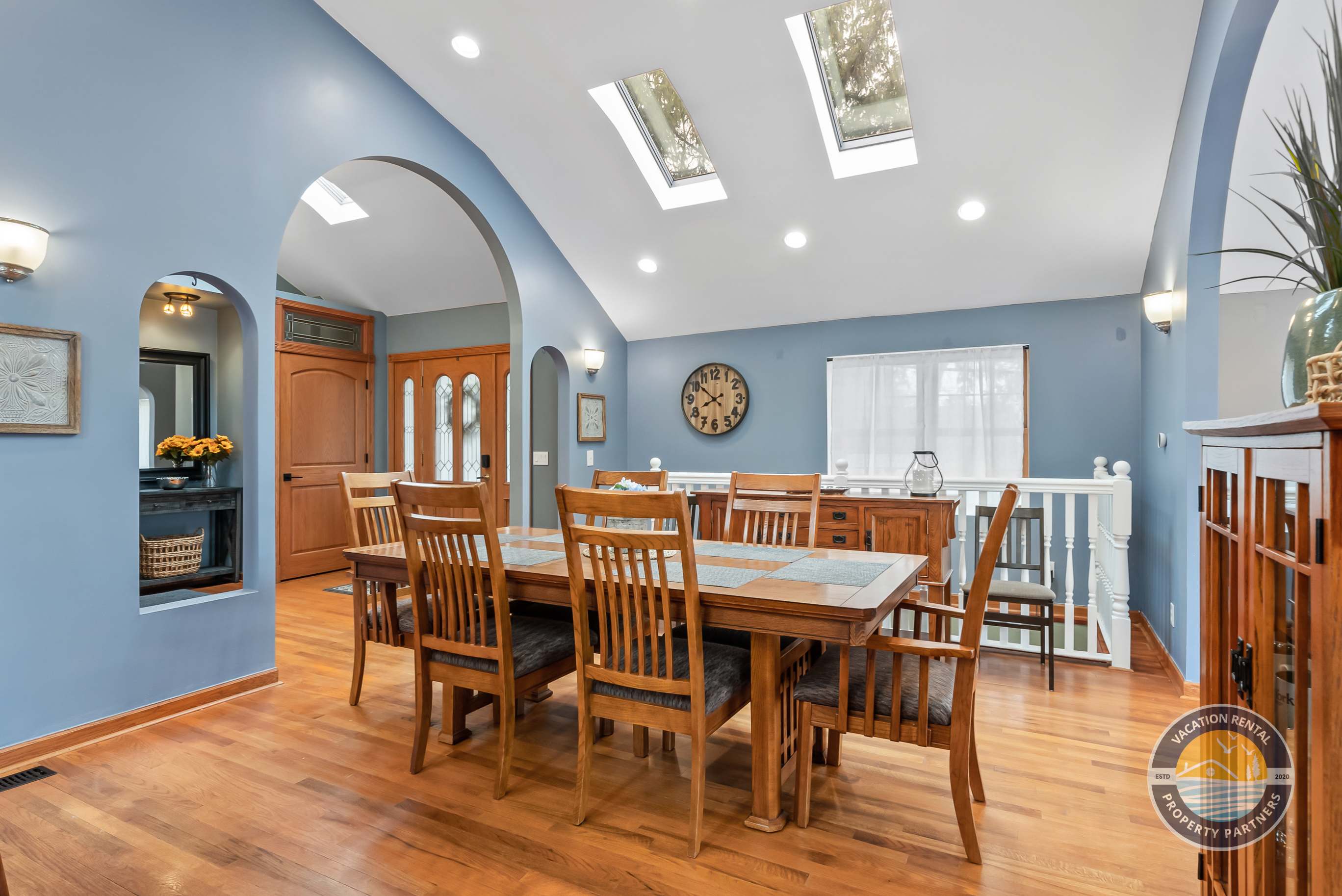 Located just a short drive away from the vibrant heart of Lake Geneva, Delavan, and Elkhorn, our vacation rental offers easy proximity to Lake Como beach, local neighborhood restaurants, and is nearby Walworth County Fairgrounds and Alpine Valley Mu...sic Theatre. Discover Lake Geneva's hidden gems by exploring the city on foot or via rented bikes. As spring unfolds, it's the perfect opportunity to revel in the blooms at the nearby Geneva Lake Shore Path. For those booking around holidays such as Memorial Day, Independence Day, or Labor Day, imagine creating unforgettable memories with a family BBQ, watching the fireworks, or taking a trip on the Lake Geneva Cruise Line. Finalize your day with a warm cup of cocoa by the fire pit, watching as the clear Wisconsin skies reveal their star-studded blanket. Beach essentials are freely available when planning a day near the crystal waters of Geneva Lake. Long-stay guests will appreciate the availability of laundry facilities, making your stay truly hassle-free. It's important to note that we have a strict no smoking, no pets, and no parties policy. However, late check-out is available, as we believe in a relaxed departure. Welcome to your lakeside retreat in Wisconsin. access Enjoy an easy walk down to the lakefront, or we recommend renting a golf cart in this golf cart-friendly neighborhood. Minutes away are local neighborhood restaurants that feature live music throughout the week and weekends. neighborhood Welcome to our spacious and inviting retreat! - Perfect for gatherings of up to 16 guests - 5 bedrooms and 4 full bathrooms for comfort - Modern kitchen and cozy living area with fireplace - Entertainment area with bar, pool table, and TV - In-unit laundry for convenience - Large deck and spacious backyard for outdoor fun - Nearby attractions like Lake Geneva Zip Line and Adventures and Hawk's View Golf Club space - 5 bedrooms accommodating up to 16 guests - Master Bedroom with a king-size bed - Bedroom 2 with 2 comfortable queen beds - Bedroom 3 with 2 double beds - Bedroom 4 with 2 double beds - Bedroom 5 with 1 double bed - 4 full bathrooms for convenience Interior Feeling - Main kitchen featuring a spacious dining area - Ideal for enjoying meals together with your group Outdoor Bliss - In-unit laundry with two new washer and dryer machines - Ensures clothes stay clean throughout your stay Enjoy all these comforts and more during your stay at our welcoming retreat! houseRules
