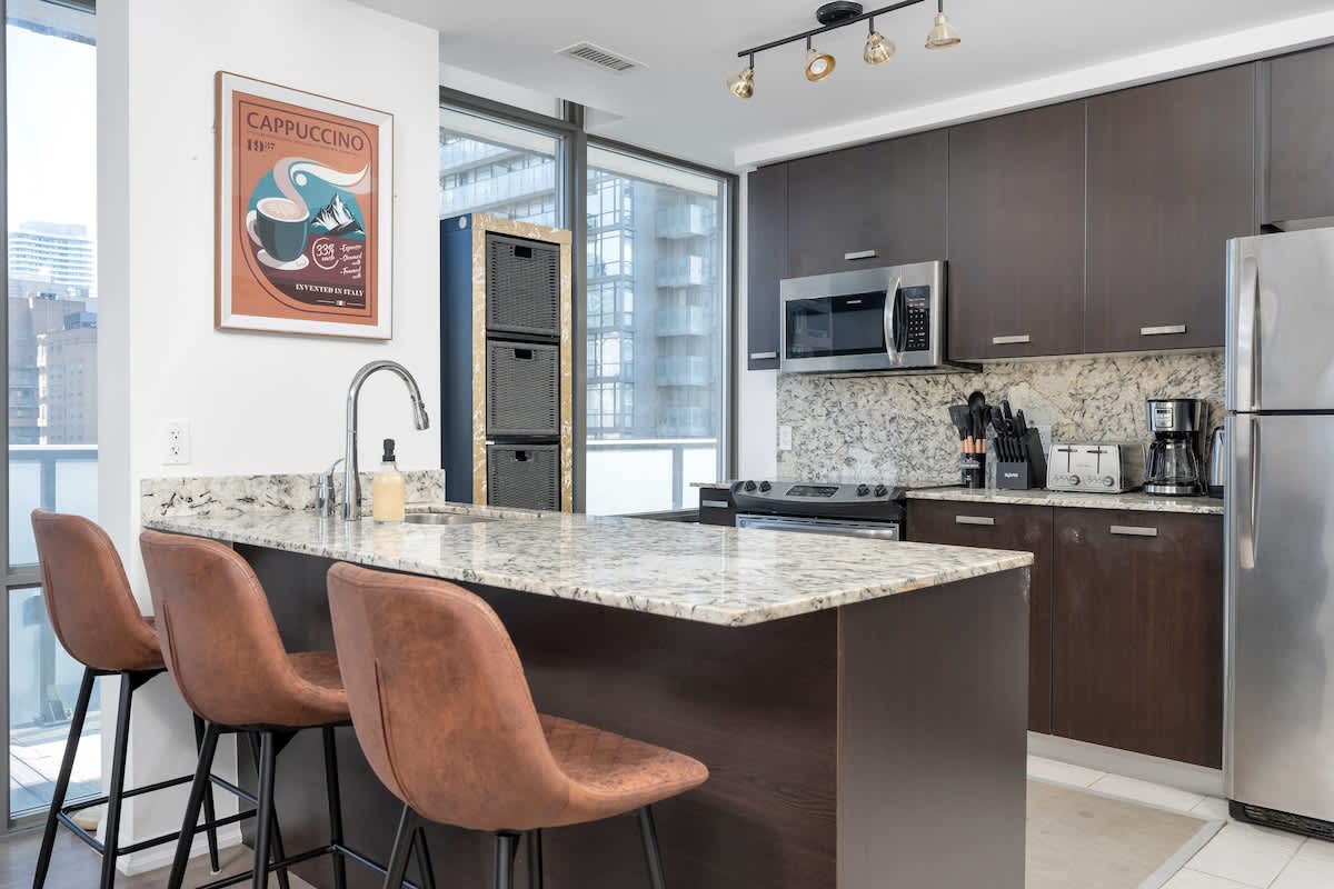 - No smoking in the unit, if smoking is to be found $350 remediation charge will occur - Lost Keys and Fob ($250 replacement fee) - Absolutely no parties or more than 6 guests in the space. If an illegal party is to be found, all guests will be removed with no refund and police will be called. The neighbours have also been instructed to call police for illegal parties. - Please no shoes in then house - Late Check out will be charged for a fee. If you need to check in early or stay late please let us know before hand so we can make arrangements. - Stained Linens with Alcohol, wine or food will be charged at $30-$50 per item.