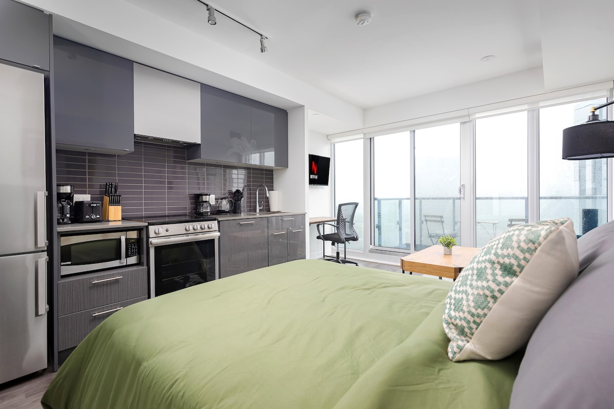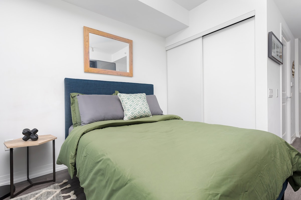 Centrally located Studio Apartment in the heart of downtown! Walking distance to Eaton Centre, Metropolitan University and endless shopping + dining along Yonge St. Enjoy this modern condo fully equipped with a work desk, kitchen, comfy Full Size ...bed with a balcony and nice view facing East of Toronto! Our home is best suited for students, business travellers and couples - Yonge St 10 min walk - Queen Station 5 mins houseRules