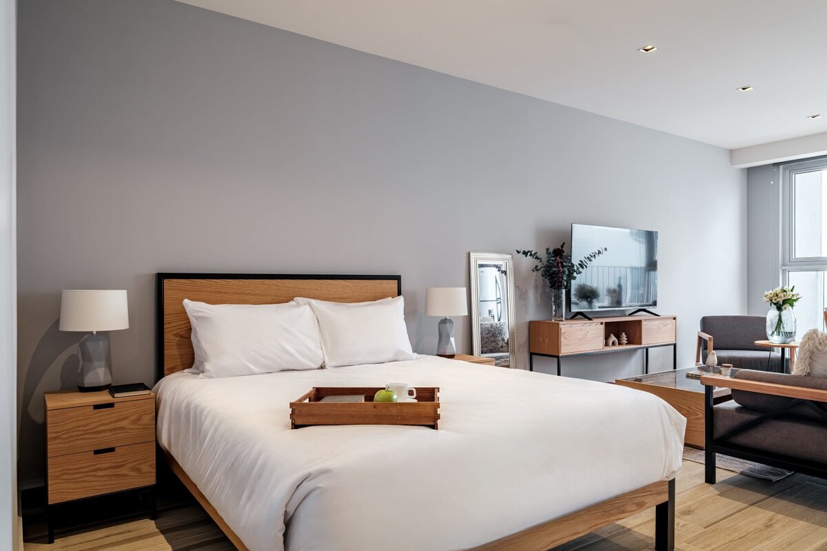 -22nd floor swimming pool -Beautiful gym with city views -Fully equipped for long stays -Parking available (at additional cost) This deluxe studio with a balcony has everything you'll need for your stay. Located in a brand-new luxury tower in the P...rovidencia neighborhood, near the Midtown Jalisco shopping mall. access Each use of the building's barbecue grill on the 22nd-floor terrace carries a cost of approximately 400-500 pesos, payable directly to the building administration. If you would like to reserve a barbecue grill, just let us know. neighborhood The swimming pool, located on the 22nd floor, is open 6 days a week, Tuesday to Sunday, from 7 AM to 10 PM (and closed every Monday for periodic maintenance and cleaning). The gym, located on the 21st floor, is open 7 days a week, from 7 AM to 10 PM.