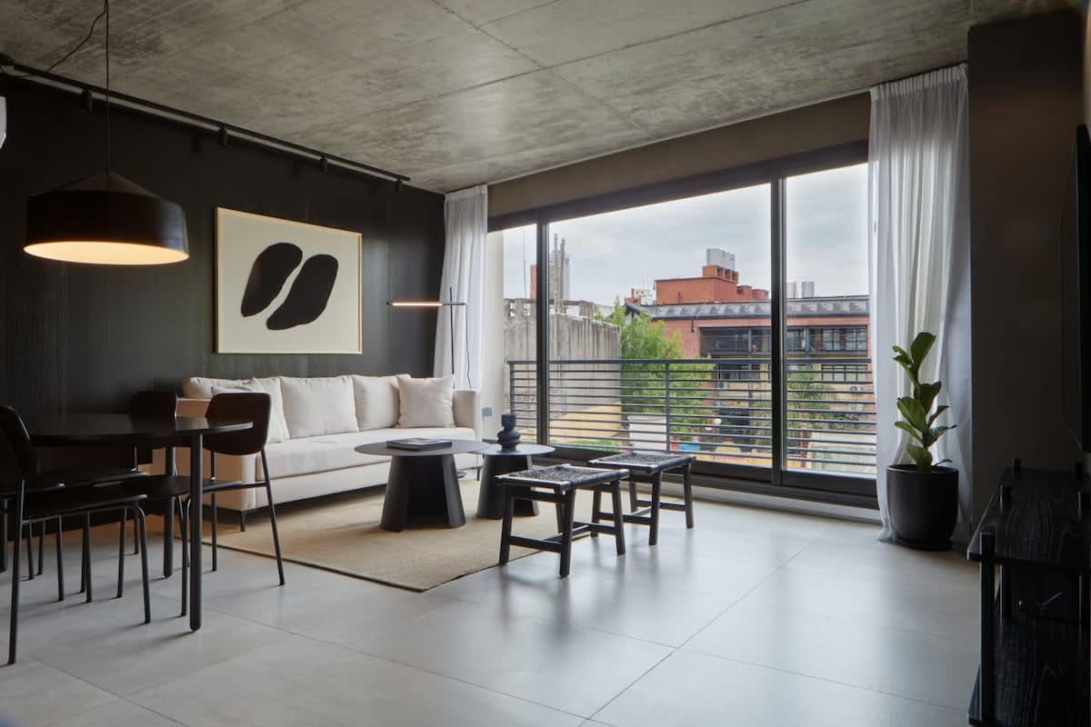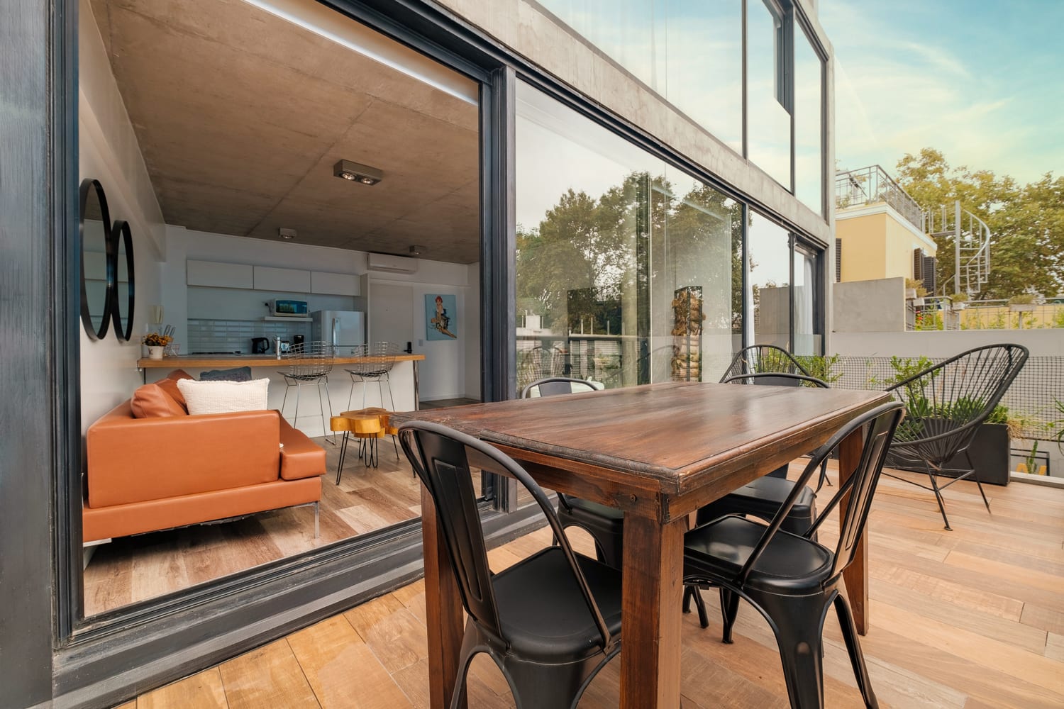 Nido Pasaje Russel is nestled in the heart of Palermo Soho, offering unique design, privacy, and comfort across several exclusive apartments. Whether you're visiting for work or leisure, you'll find a space tailored to your needs Welcome to Nido, yo...ur home away from home! This beautiful apartment features a fully furnished private terrace - perfect for slow mornings or relaxing in the evening. Its the perfect choice for couples, solo travelers, or Digital Nomads looking for a unique stay in the heart of Palermo Soho. Living Room Spacious and bright, featuring beautiful decor, a comfy sofa , a 60 Smart TV (streaming accounts not included), A/C and access to a private balcony - ideal for relaxing. The apartment also features a dedicated router with hi-speed internet and a desk + chair for remote workers (please inquire!) Kitchen Fully equipped with everything you need IMPORTANT INFO with prior reservation and extra cost. Please bear in mind that Pasaje Russel is a very narrow street, so access to the garage may be limited to some car models. Please inquire in advance. interactionWithGuests - Monday - Friday 9 AM to 6 PM Please feel free to contact us for any tourist info, airport transfer, or if you have any specific requests for your trip. Apart from our office hours, NIDO has 24/7 emergency support. neighborhood Tip We are Nido, a property management company that has been leading the industry with over 18 years of experience providing top-notch accommodations. We ensure your stay will be comfortable, convenient, and stress-free, wherever your journey leads. houseRules