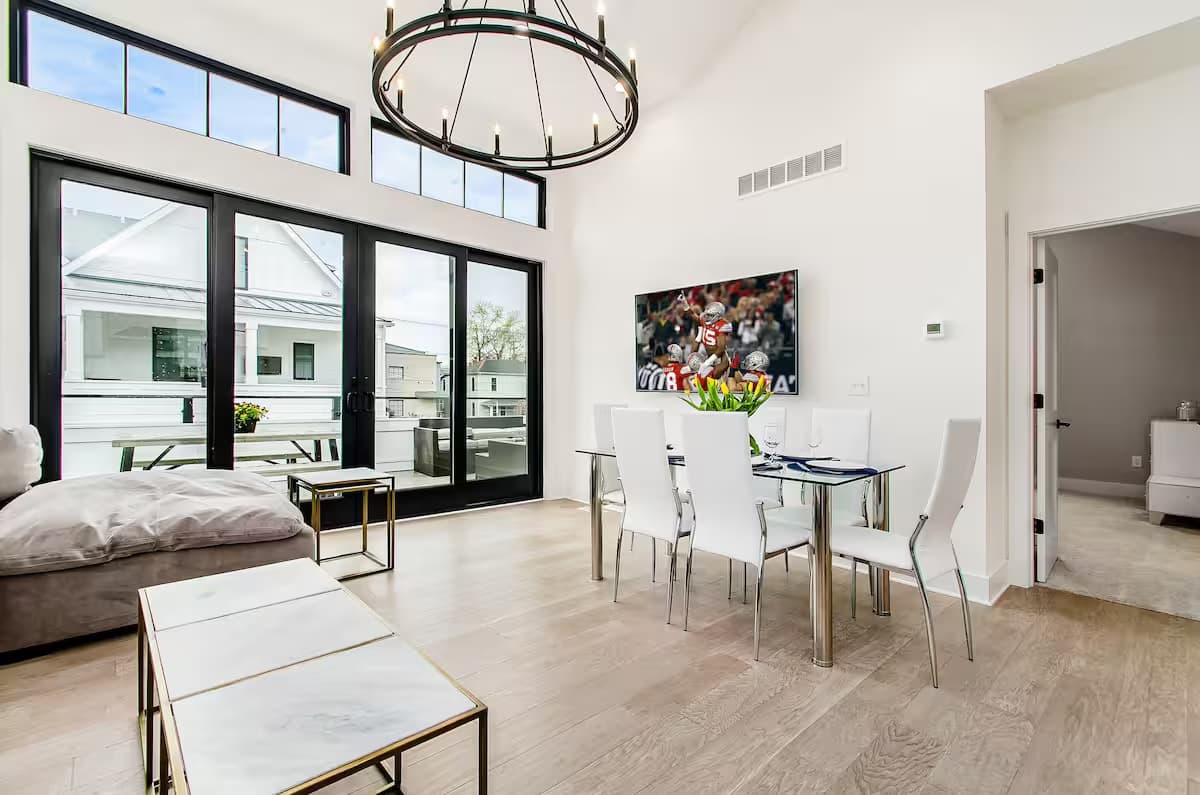 Over 4,500+ reviews, most-reviewed local host in Columbus, Ohio (excluding taxes and fees) YOUR BOOKING GUARANTEE To give back to those in need, one booking at a time. We will donate 10 meals to help feed starving families on each booking Reser...ve now before this home gets booked up for your dates! space 10 Coolest Vacation Rentalin Ohio - Adventure and Sunsets Featured in the International Bestselling Book HOSPITABLE HOSTS Recognized as one of the Top Dreamy Vacation Rental in Columbus, Ohio "A sanctuary with luxury amenities and thoughtful touches!" Dreamstays Listed among the 18 Coolest and Best Vacation Rental in Columbus "A beautiful, leafy 2-bedroom apartment truly an idyllic escape" Jonesaroundtheworld Celebrated by a renowned London-based blogger as a must-see Vacation Rental in Columbus When modern meets the jungle! Ohio Columbus Superhost Our Jungle House with upscale decor that bring the outdoors in Step into a bright white interior with huge windows and 2,900 sq. ft. of open, airy spaceperfect for relaxing, celebrating, or capturing those Insta-worthy shots! KEY FEATURES This home is designed by Jungle House! You can enjoy full access to the entire home! This includes access to the full kitchen, free wifi, beautiful bathrooms. We hope you enjoy your complimentary treats and snacks! Enjoy the convenience of self-check-in, courtesy of the Smart lock! Spill some wine on your shirt? This space also features a washer and dryer for your convenience Access to Netflix, Hulu, Disney+ and ESPN all complimentary to use on all 3 TVs in our home! interactionWithGuests Two exterior security cameras (one at the front porch, one at the rear door) operating 24/7 Two noise monitors (one in the living room, one in the kitchen) that measure noise levels onlyno recording, just peace of mind. Let us know if you have any questionswere excited to host you! neighborhood Short North District (~5 min walk) Greater Columbus Convention Center (~5 min drive or ~15 min walk) Nationwide Arena (~6 min drive) Kroger Food Market (<1 mile) Downtown Columbus area (~1.5 miles) Ohio State University campus (~2 miles) Nationwide Arena (~6 min drive) CMH Columbus John Glenn Airport (~10-15 min drive/uber) Easton Town Center Shopping Mall (~15 min drive) Easy access to major highways (I-71, I-670, I-315) and COTA lines for exploring the city This home is perfect for anyone checking out events at the Convention Center or Nationwide Arena, couples/friends craving a night out in the city, business pros passing through for work, or family/alumni visiting Ohio State Youll be so close to everything you need, you might never want to leave! transit ) notes 3PM instead ($25) 2 Hr Early Check-In 11AM instead ($25) 2 Hr Late Check-Out Rose petals on the master bed "Happy Anniversary" or "I Love You" banner Delicious chocolate cake Complimentary bottle of champagne BONUS "Happy Birthday" banner Chocolate cake with gold candles Complimentary bottle of champagne BONUS we have a Queen Air Mattress for a much comfortable sleep! Just a friendly reminder that we have limited space for dining and seating so we would highly recommend for you to take advantage of the best places Columbus has to offer! Nevertheless, your additional guests will sleep like a baby on our Queen Air Matters Love Our Home? Save It to Your Favorites! Tap the heart on our listing to bookmark this Columbus, Ohio vacation rental for your next trip! Were excited to host youlet us know if you have any questions! Jungle House - Best Vacation Rental in Columbus, Ohio Perfect for Business Travelers, Family Getaways, and Group Stays! It will be your best Thyme we pinky promise! PS we also host many other Jungle Homes in Columbus Ohio and Chillicothe Ohio in case you have other people traveling with you also in need of a place to stay while also staying very close, some even next door.. just send us a message and let us know! Reserve now before this home gets booked up for your dates! houseRules A $500 additional cleaning fee will be charged on top of the $500 House Rules Violation fee) No additional (unregistered) guests are allowed over (even if not spending the night) unless under the reservation guest count. We can kindly modify the reservation if plans change and more guests are needed but we reserve the right to cancel this reservation with no refund if this rule is broken as well a $100 extra guest fee will be charged per extra unregistered guest per night (Note A $500 additional cleaning fee will be charged on top of the $500 House Rules Violation fee.) No photography or any commercial use on the premises without written permission from the host Furniture is not to be rearranged Tampering with exterior surveillance (External camera), noise monitors, and smoke sensors will lead to immediate cancellation with no refund, as well as a $500 violation charge listed above Any late check-outs will result in an additional charge of $300. And most importantly.. enjoy and come again!! Guests take full responsibility for all damages, injuries, or losses that occur on the premises. Guests must report any property damage; any unreported damage will be deducted from the security deposit. Travel Insurance is highly recommended for any stay.