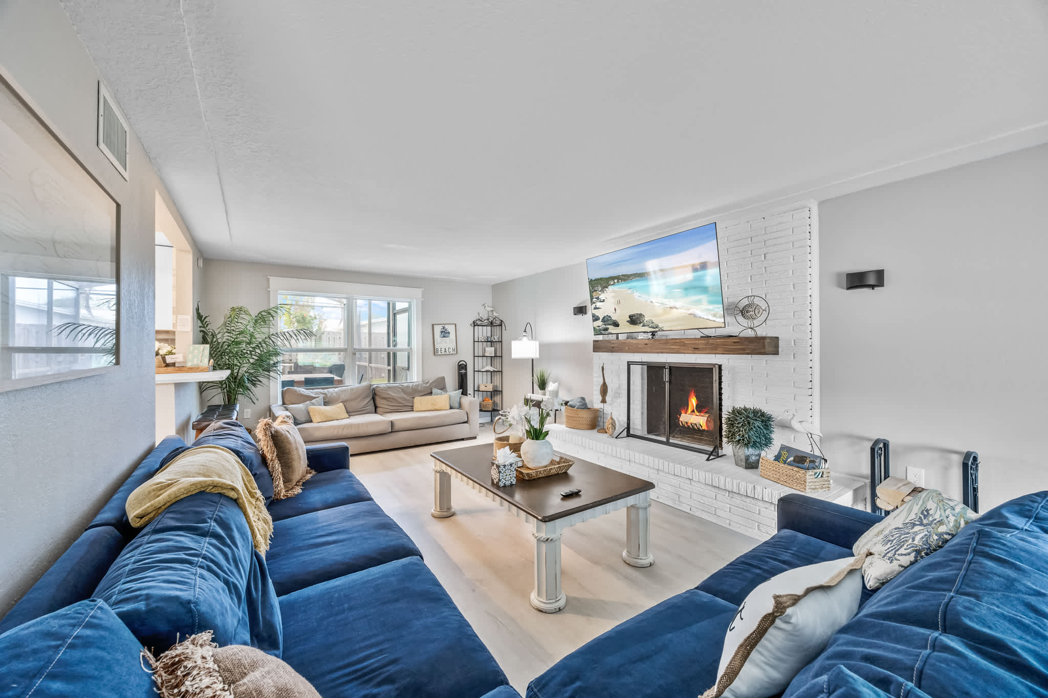 Welcome to The Leon Lane Oasis your private Cocoa Beach paradise! - 7 beds - Ideal for reunions, retreats and group getaways - Shared pool, fire pit, hammocks, grill and tropical outdoor lounge - 5-min walk to the beach, 10-min stroll to Cocoa Beac...h Pier - Pet-friendly, family-ready and full of island charm space Inside, youll find a seamless blend of shared and private spaces. The bedrooms and sleeper sofas provide ample sleeping arrangements, while the inclusion of multiple kitchens means meal prep is a breeze. Whether youre relaxing on a comfy couch, sipping coffee at the breakfast bar, or catching up after a beach day, the entire property is designed for easygoing group living. Tropical Courtyard Escape With both indoor dining areas and outdoor gathering spaces, your group can come together for meals, games, or quiet moments. From coffee at sunrise to grilling at sunset, every corner of the property is designed to bring people together. Whether you're planning a family celebration, a team retreat, or a relaxing group vacation, The Leon Lane Oasis offers the space, comfort, and tropical charm to make your stay unforgettable. access Located in a peaceful Cocoa Beach neighborhood, youre just a 5-minute walk to the beach and a 10-minute stroll to the Cocoa Beach Pier. Other local highlights include Ron Jon Surf Shop just 0.6 miles away, Jetty Park at 3.5 miles, Port Canaveral at 4.5 miles, and the shops and restaurants of downtown Cocoa Beach only 3.2 miles from your door. interactionWithGuests Getting Around The Leon Lane Oasis Parking The closest airport is Orlando Melbourne International Airport (MLB), about 25 minutes away. Orlando International Airport (MCO) is approximately a 1-hour drive. Public Transit** You're already perfectly positioned! The beach is a quick 5-minute walk, and the Cocoa Beach Pier is just a 10-minute stroll. Enjoy the local shops and restaurants without needing to drive. notes - Paper towels - Toilet paper - Tissues - Coffee pods, creamer, and sugar - Light cleaning supplies (please note -Mailbox access is not available for guests - While we love all furry friends, ONLY dogs are allowed at this property, with a fee of $100 per pet, per stay. - All reservations require either a refundable security deposit or the purchase of a damage waiver. We hope you have a wonderful stay! Beachside Vacation Rentals