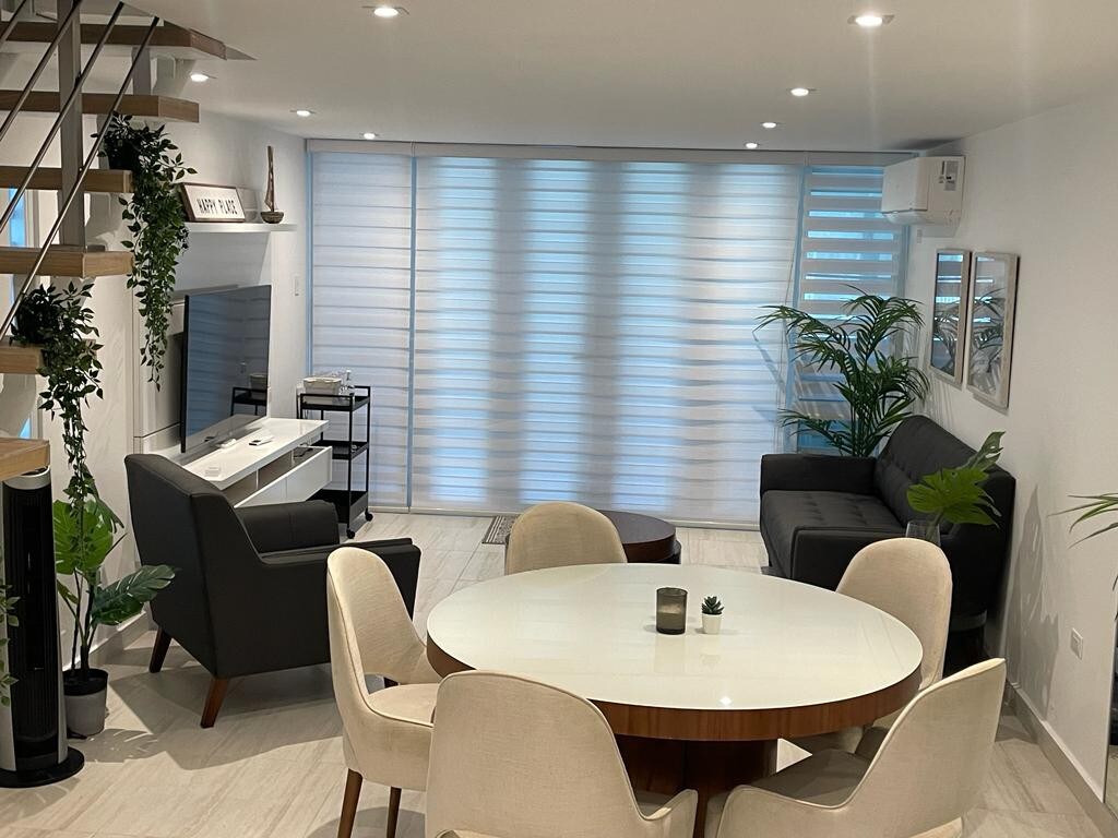Welcome to your perfect getaway in Dorado Del Mar! This spacious 3-bedroom, 2-bath Villa is just steps from the beach and the community pool. Vibrant local entertainment at the Embassy Suites is just a 5 minute walk from the front door. Enjoy a full...y equipped kitchen, cozy living spaces, and a private patio to soak in the island breeze. Stay worry-free with backup power and water, ensuring a seamless and comfortable stay. Whether youre here to relax by the ocean, explore Dorado, or unwind in a prime location, this home offers the ideal blend of comfort and convenience. space Sleeps up to 6 guests (plus small child or infant) in 3 bedrooms w/2 bathrooms En-suite top floor; King Bed with tufted-upholstery headboard; 50 flat-screen TV; Cheval Floor-Standing Mirror; Credenza side tables w/bedside lamps; Inverter A-C; Second Bedroom 2nd Floor Queen Bed; 50 flat-screen TV; Closet; Airmax Inverter A-C. General Description Two modern, bathrooms both fitted with showers. Kitchen Open-space design with kitchen and dining area to one side, while on the other, leading out to a furnished patio. The entire area is lit with sunken spotlights for a modern, fashionable touch. Deep-cushion, upholstered couch with matching armchair on either side of a round coffee table. KOROI-style floating shelves adorned with ornaments and enlivened with plant-accents 50 Flat-screen television A-C Dining Area Panoramic view Long, sectional, rattan-based upholstered couches with matching coffee table offering plenty of comfortable, outdoor seating. Laundry Gorgeous community pool with Fountains and kiddy pool. Close to the Embassy Hotel* and Costa Dorada Close to Embassy Beach on one side plus, on the other, private access to a second beach shared with the Dorado del Mar Community. 35 minutes from the entertainment, dining, and shopping centers of San Juan Not far from exciting excursion destinations such as the Rain Forest and Camuy Cave Park Many local, world-class restaurants offering a wide range of cuisine Close to world-class golf courses. * Although located in the Embassy Suites Community, Villa guests only share access to the Embassy Beach but not to any of the Resorts Facilities and Pools which are available to Hotel Guests only. Paradise Villas and Vacation offerings include The exclusive Paradise Villas and Vacations Meet and Greet service The exclusive Paradise Villas and Vacations Day-Trippers Sheets The exclusive Paradise Villas and Vacations Paradise Gold Special Offer Discounts to many local vendors and restaurants. 24/7 Guest Services Management. (at additional cost) Just what you deserve right here in Paradise! interactionWithGuests Guest and Owner will sign an occupancy agreement detailing the terms of the stay. Guest may request a copy of this agreement at any time as it is specific to each Villa rental. No pets allowed. This villa has a specific allowance for electricity usage which covers normal use per day. If guests run all zones of AC 24/7, it has happened that guests may exceed the allowance and there is a surcharge for over usage based on actual bills or meter readings upon entry and exit. Excess electricity usage may be deducted from the Security deposit that is on hold with Airbnb. To avoid that please be mindful and turn off the AC units when you are not in the room. Guests are responsible for ALL utilities for stays of a month or more.
